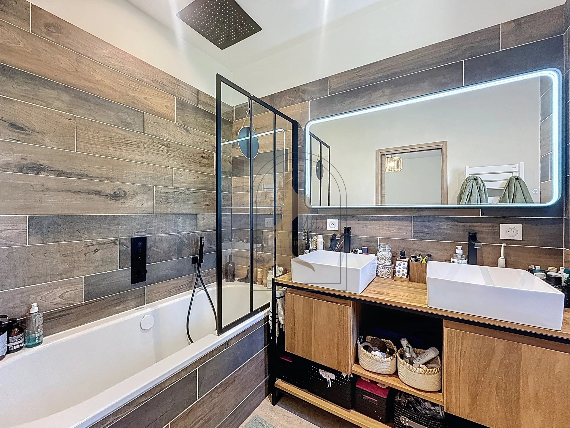 À seulement quelques minutes du centre-ville et du port de Porto-Vecchio, découvrez ce charmant appartement en duplex situé au 2ᵉ et dernier étage d’une résidence sécurisée avec portail électrique. D’une surface d’environ 100 m², ce bien offre de beaux volumes et une distribution fonctionnelle. Le niveau principal se compose d’une spacieuse chambre avec salle de bain attenante, d’un dressing pouvant aisément être aménagé en seconde chambre, ainsi que d’un séjour lumineux ouvrant sur un balcon. Un WC indépendant complète cet espace. À l’étage, une mezzanine aménagée propose un espace supplémentaire pouvant faire office de chambre ou de bureau, accompagnée d’une salle d’eau et d’un grenier offrant un bel espace de rangement. Ce bien est complété par une cave et une place de stationnement privative. Fonctionnel et idéalement situé, cet appartement représente une belle opportunité, que ce soit pour une résidence principale, un pied-à-terre ou un investissement en Corse du Sud. Situé dans une copropriété intimiste de 16 lots, avec des charges annuelles d’environ 780 €, ce bien ne fait l’objet d’aucune procédure en cours.