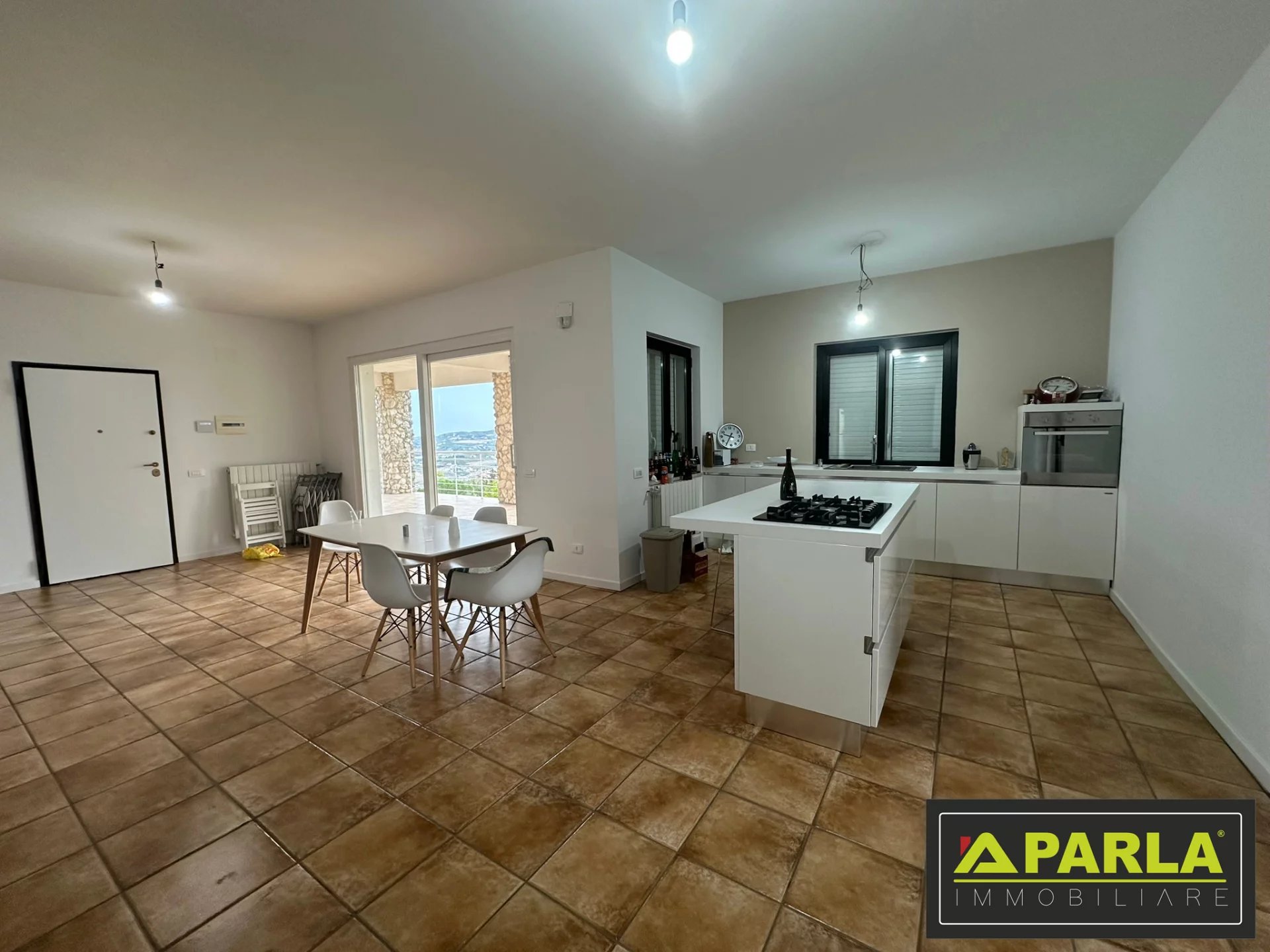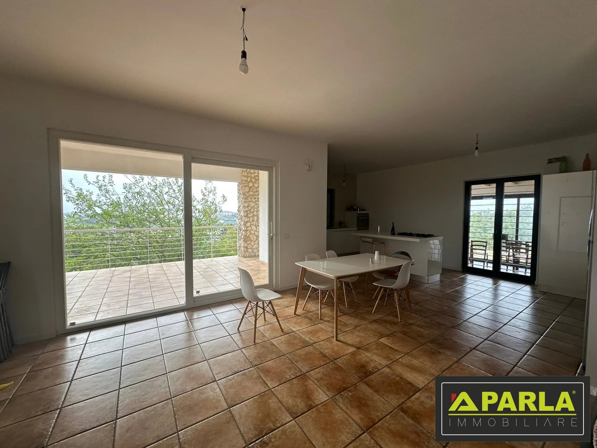 Immagina di svegliarti ogni giorno circondato dalla quiete, con lo sguardo che si perde tra le colline e una luce naturale che avvolge ogni ambiente. Questa villa, immersa nella suggestiva contrada Montagna, offre uno stile di vita autentico e raffinato, dove comfort, privacy e panorama si fondono in perfetta armonia. La proprietà, di circa 240 mq distribuiti su due livelli, è progettata per garantire funzionalità e qualità abitativa. La zona giorno accoglie con ambienti ampi e luminosi, impreziositi da grandi vetrate panoramiche che si aprono su terrazze coperte, ideali per vivere momenti di relax o convivialità con una vista impareggiabile sulla vallata. Il camino nella zona living crea un’atmosfera calda e accogliente, mentre la cucina moderna con isola diventa il cuore della casa, perfetta per chi ama cucinare e condividere. Completa il piano un bagno spazioso e una comoda dispensa. La zona notte, raggiungibile tramite una scenografica scala a vista, offre ambienti versatili e ben distribuiti. Un ampio salotto può facilmente trasformarsi in una terza camera, mentre le due camere da letto garantiscono comfort e privacy, con la suite padronale dotata di cabina armadio. Il bagno, grande e moderno, risponde alle esigenze di tutta la famiglia. Il terrazzo privato, collegato alle camere, regala scorci unici e momenti di totale relax. All’esterno, il terreno di circa 4.500 mq rappresenta un valore aggiunto straordinario, con disponibilità di acqua corrente continua e spazi ideali per vivere all’aperto. La veranda chiusa a vetri con area barbecue e la cantina completano una proprietà pensata per chi desidera vivere ogni stagione con il massimo comfort. Punti di forza • Vista panoramica aperta e dominante sulla vallata • Ampie vetrate e luminosità naturale in tutti gli ambienti • Spazi interni generosi e ben distribuiti • Terreno privato di 4.500 mq • Zona residenziale abitata tutto l’anno • Veranda attrezzata con area barbecue • Camino e cucina con isola per un’elevata qualità della vita Dettagli tecnici • Superficie: circa 240 mq • Locali: 5+ (zona giorno, salotto, 2/3 camere, cucina, servizi) • Piano: su due livelli • Stato immobile: ottimo, in regola urbanisticamente • Extra: terrazze, veranda chiusa, camino, cabina armadio, cantina, terreno, acqua h24 Contattaci per scoprire il potenziale di questa proprietà Questa villa rappresenta una soluzione ideale per chi cerca una residenza esclusiva, spaziosa e immersa nella natura senza rinunciare alla comodità. Contatta subito la nostra agenzia per ricevere maggiori informazioni o prenotare una visita: sarà il primo passo verso la casa che hai sempre desiderato.