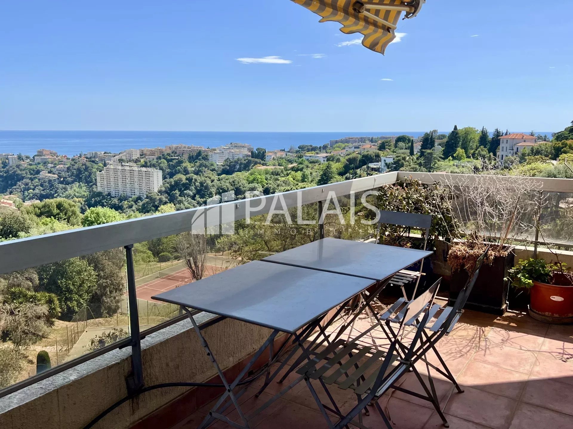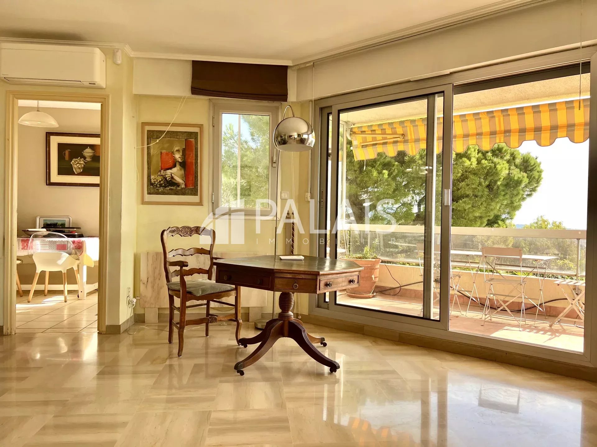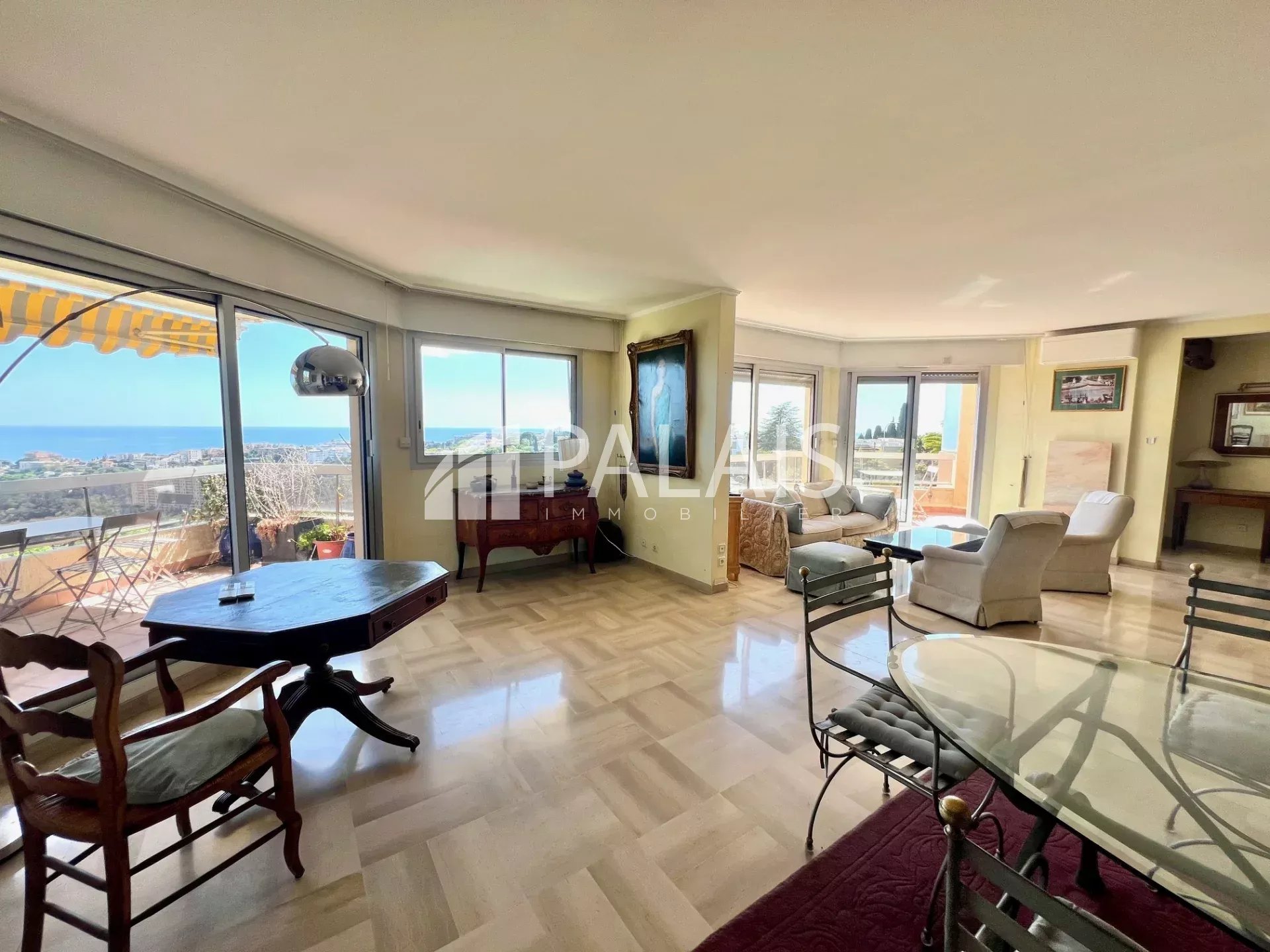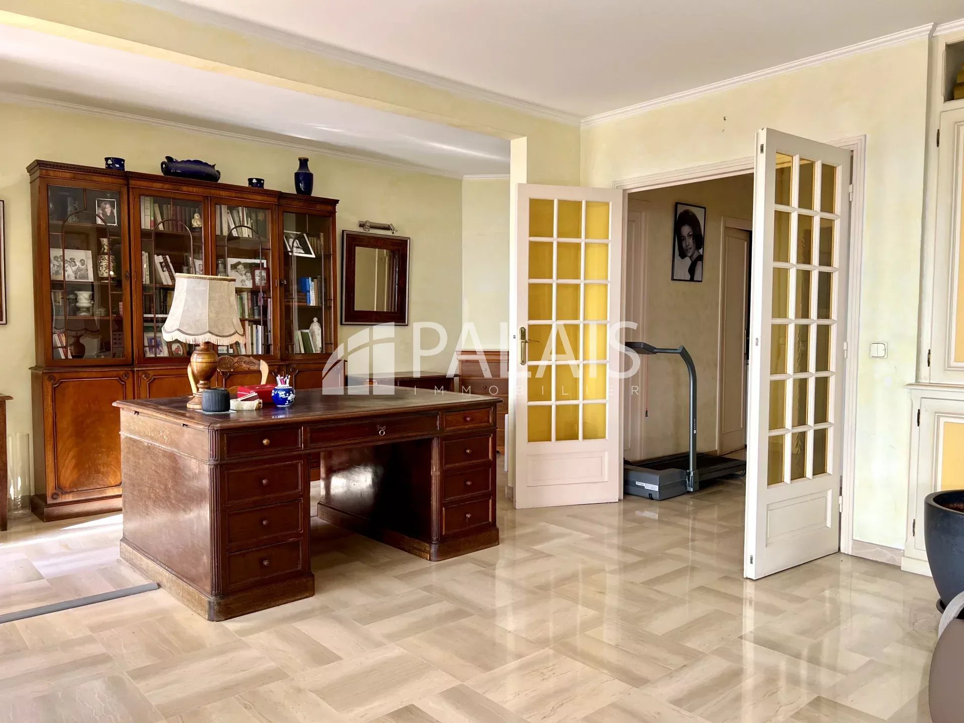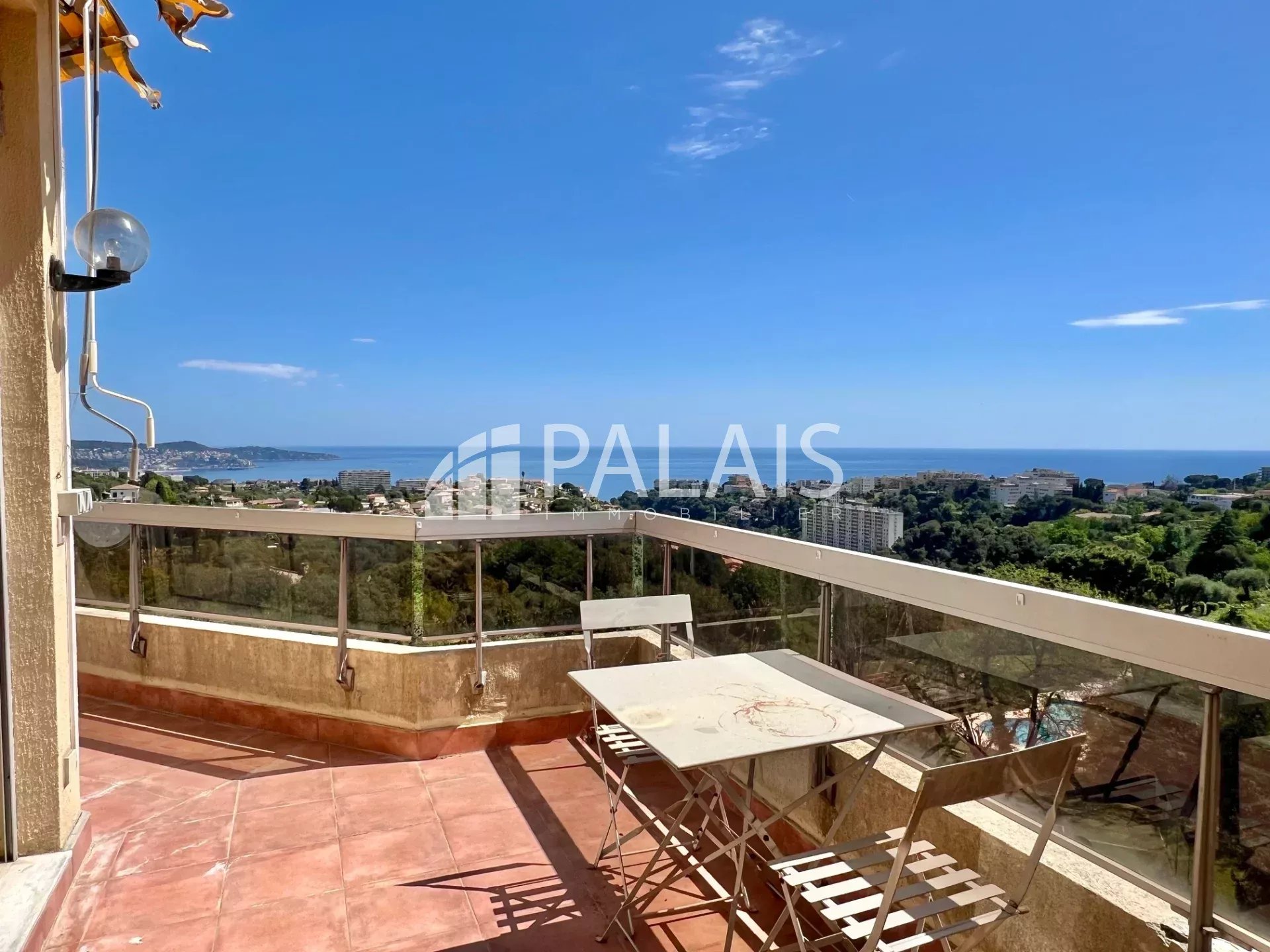 Situé au sein d’une élégante copropriété de standing, au calme absolu, dans un environnement verdoyant avec piscine et tennis, ce magnifique appartement au dernier étage offre un cadre de vie privilégié. Traversant, climatisé et très lumineux, il se compose d’une cuisine, de quatre chambres, d’une salle de bains, de deux salles d’eau et de deux toilettes indépendantes. Vous serez séduit par son vaste séjour double de 61 m² qui s’ouvre sur deux agréables terrasses, offrant une vue panoramique imprenable sur la Méditerranée. Ce bien rare est complété par deux caves, un garage fermé. Des travaux de rafraîchissement sont à prévoir, laissant entrevoir un beau potentiel de valorisation.