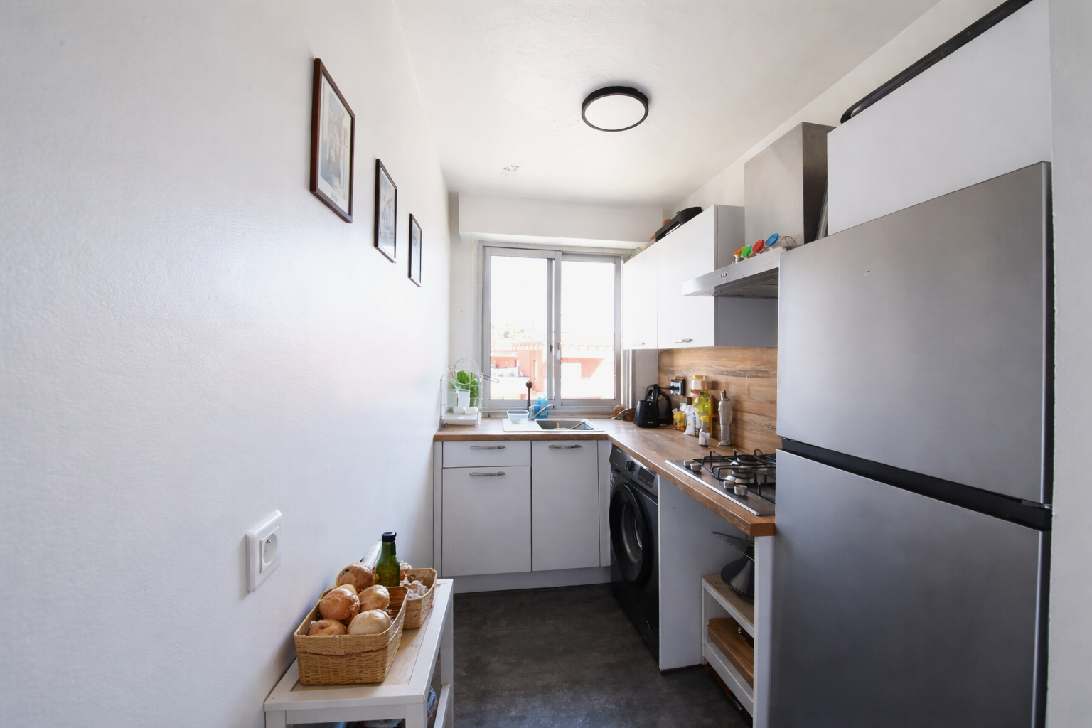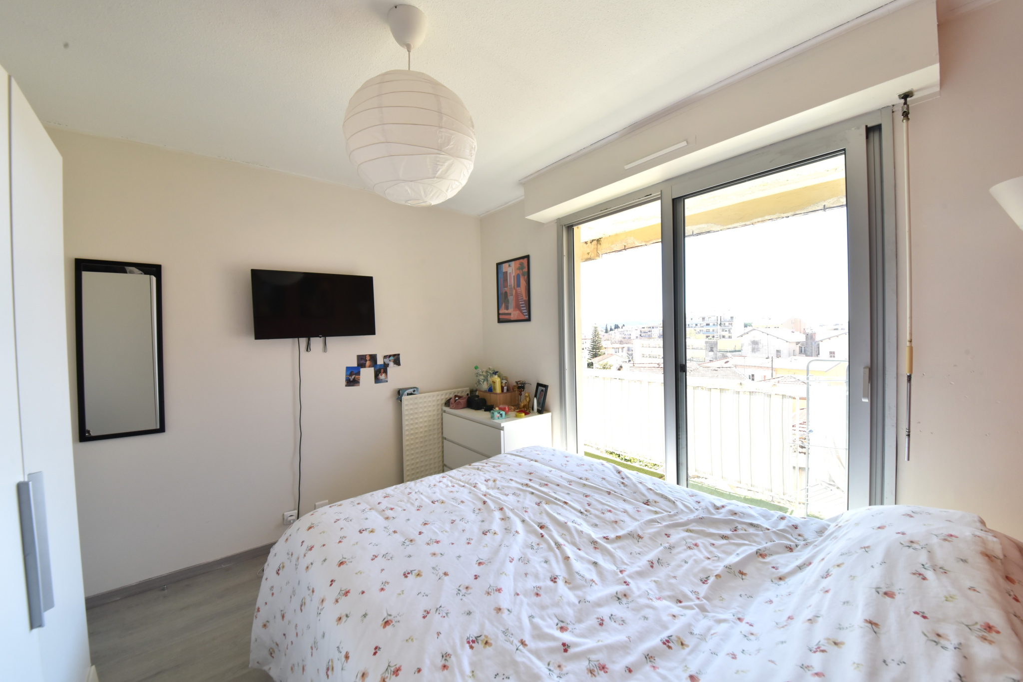 Beau 2 pièces lumineux de 42m2 avec terrasse plein sud de 9m2 situé au 4eme étage avec ascenseur d'un immeuble des années 80. Situé à 300m de la place Goiran dans une rue calme, venez decouvrir ce bel appartement d'angle en bon état général (prévoir un petit rafraîchissement) offrant une vue belle vue dégagée. Il se compose d'une entrée avec placard qui dessert une cuisine séparée, un grand sejour donnant sur la terrasse, une salle de bain, un wc séparé, et une belle chambre permettant elle aussi d'accéder à la terrasse. La résidence beneficie de stationnements collectifs.