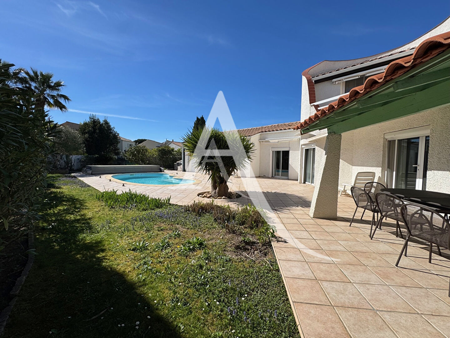 34280 - LA GRANDE MOTTE - Quartier HAUTE PLAGE - Belle luminosité avec triple orientation pour cette villa en R+1 construite en 1990 sur vide-sanitaire. Superficie de 170 m² sur un terrain au calme et sans vis-à-vis de 548 m², avec forage. Au rez-de-chaussée : une entrée avec grand placard et salle d'eau/wc, un confortable salon avec cheminée et donnant accès à la salle à manger, à la cuisine et à l'espace extérieur, 1 grand bureau et 2 chambres dont 1 avec dressing. A l'étage : 2 chambres donnant sur terrasse avec vue sur la piscine et le jardin, salle de bains. Vous apprécierez l'espace extérieur avec sa grande terrasse et ses grands stores, son jardin arboré et sa piscine chauffée 4 saisons 8x4. Grand garage de 22.50 m² avec portail électrique. Cette villa dans un état impeccable vous permettra, dès votre installation, de profiter des beaux jours qui s'annoncent ! Patricia LARUE (EI) Agent Commercial - Numéro RSAC : - .