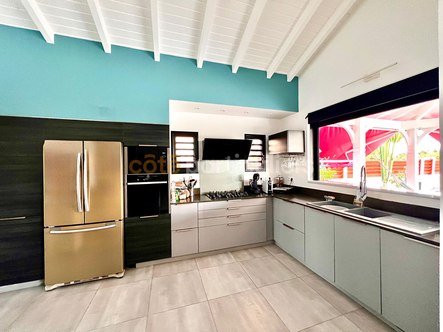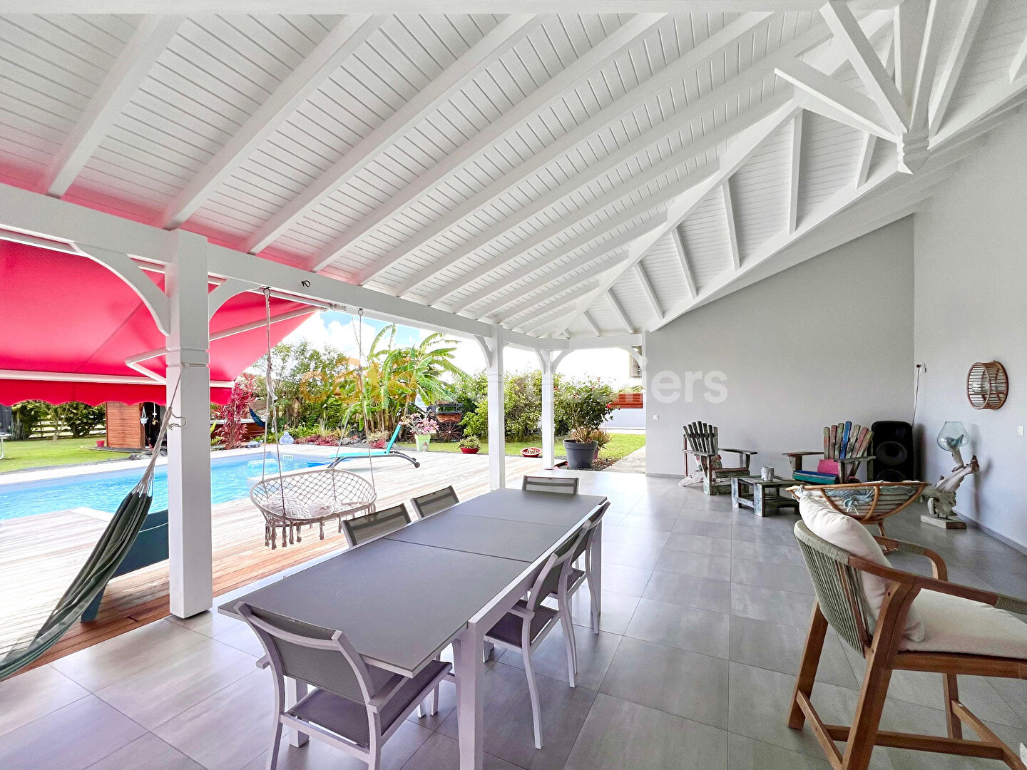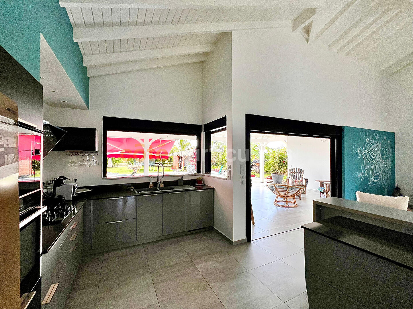 Découvrez cette superbe villa meublée de 130m², offrant des prestations exceptionnelles, nichée dans un cadre idyllique à Saint-François. Parfaite pour les amateurs de confort et d'élégance, cette propriété est un véritable havre de paix. Un intérieur qui inspire : Une suite parentale lumineuse avec dressing et salle d'eau privative, offrant une vue directe sur la piscine de 34 m². Deux chambres élégantes avec grand dressing et une salle d'eau commune, avec vue sur la piscine Une cuisine moderne, entièrement équipée, agrémentée d'un cellier et d'une salle de rangement pour plus de praticité. Un salon spacieux et chaleureux pour des moments conviviaux. Une salle de jeux/TV intime de 10 m², parfaite pour les soirées détente ou chambre supplémentaire avec salle d'eau Extérieurs de rêve : Une terrasse de 49 m² où savourer le climat tropical. Une piscine au sel de 34 m² pour se rafraîchir ou se prélasser au soleil. Un carbet avec spa et jacuzzi pour un confort absolu. Box à chevaux, niché dans un espace verdoyant, idéal pour les passionnés d'équitation, bénéficiant d'un espace dédié de 4000m² Prestations supplémentaires : Portail électrique pour la sécurité et la tranquillité. Deux abris pour voitures. Cuve tampon et système de récupération d'eau de pluie pour une démarche écoresponsable. le plus eau agricole A deux pas des plages de rêve, du golf et des commodités locales, cette villa est bien plus qu'une maison. C'est un style de vie, une invitation à profiter pleinement de chaque instant. Ne laissez pas passer cette rare opportunité. Contactez-nous dès aujourd'hui et laissez-vous charmer par cette perle des Caraïbes !