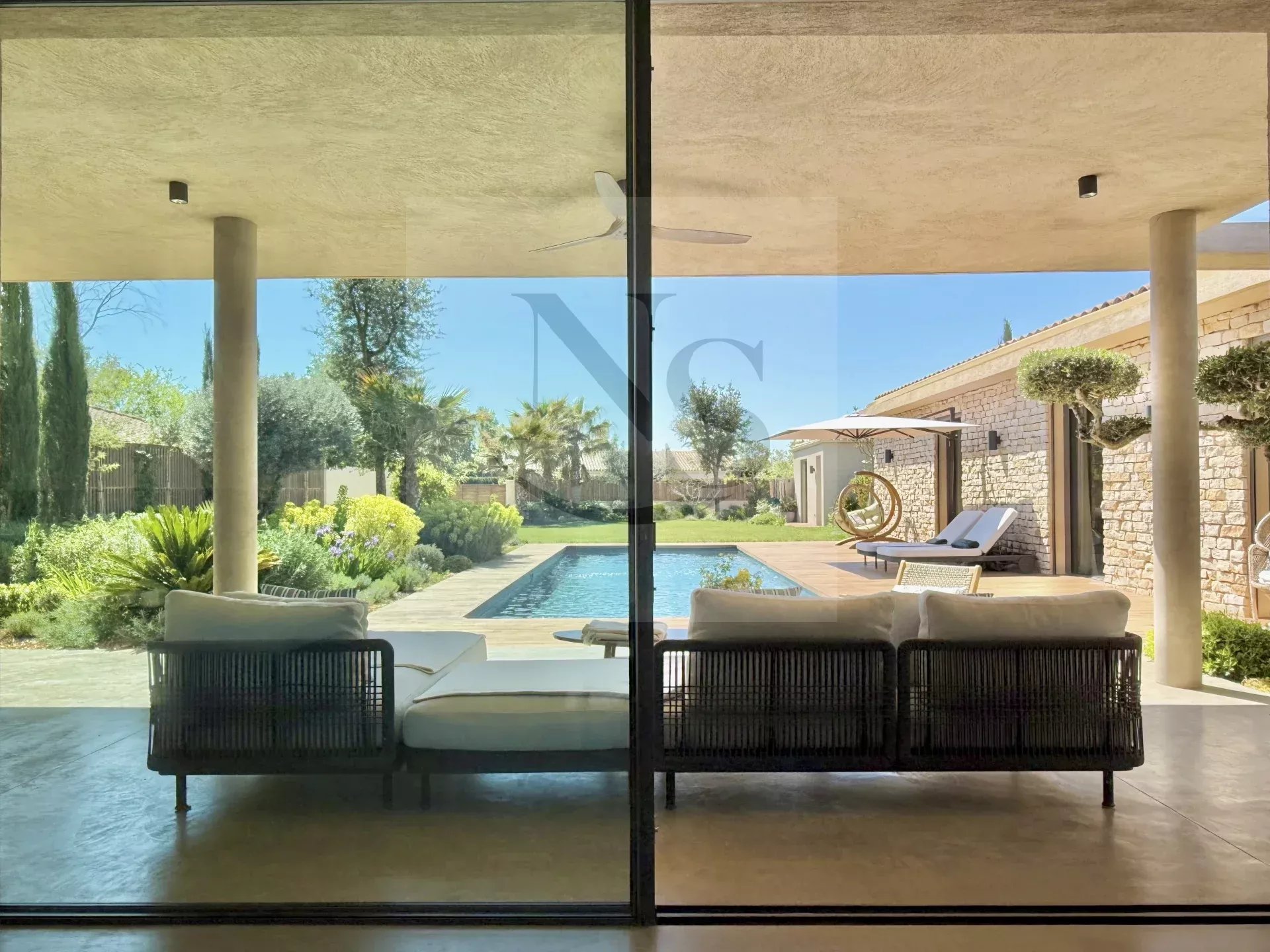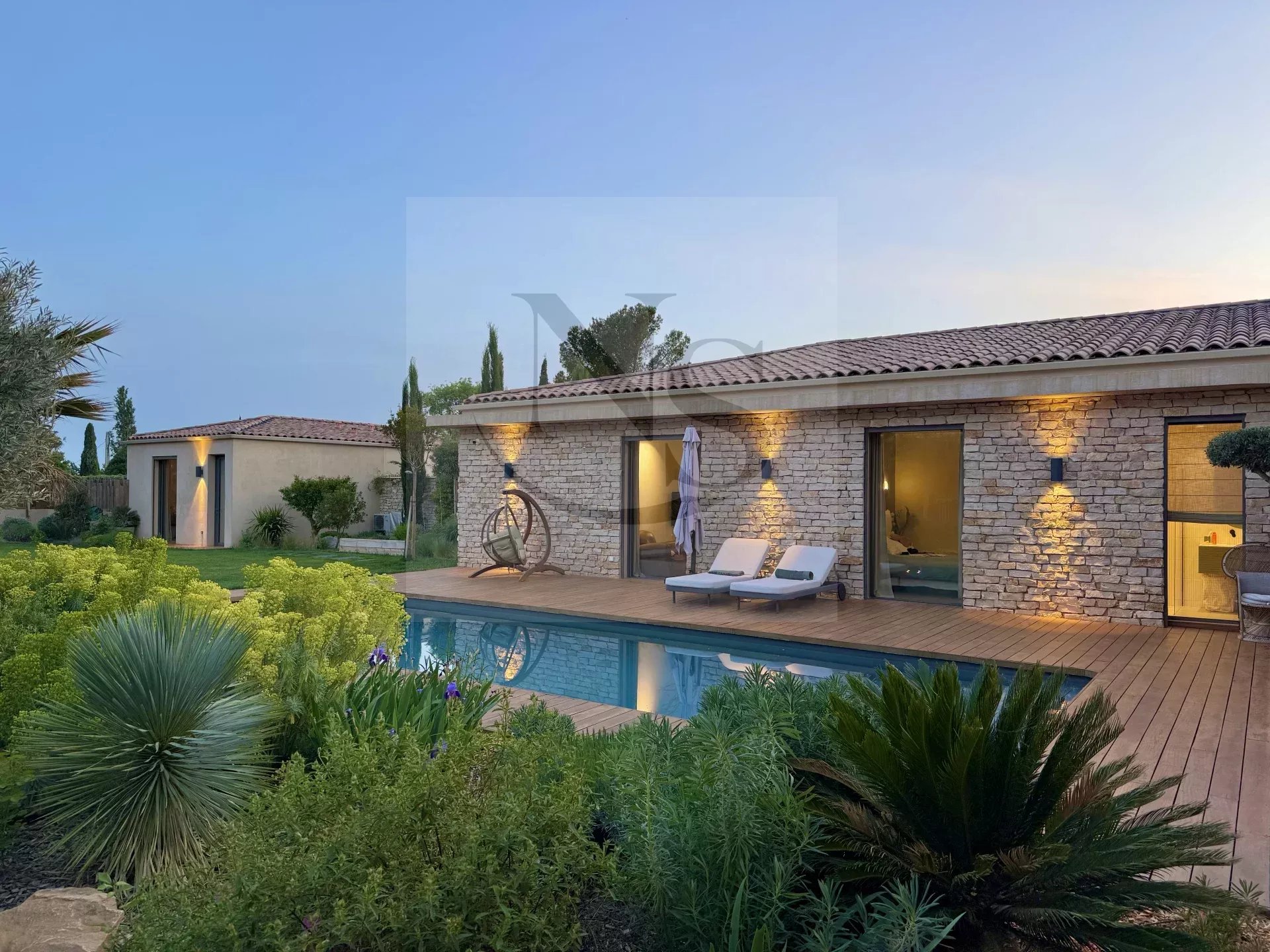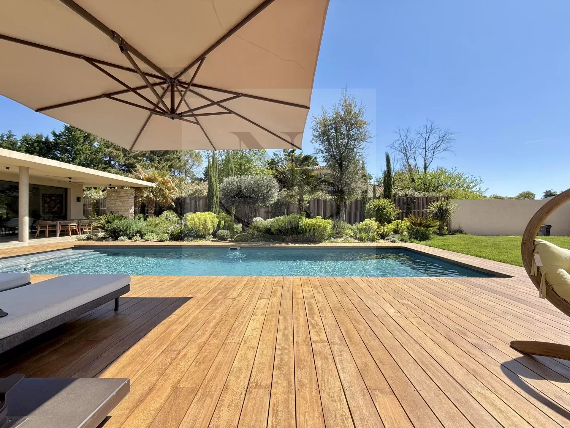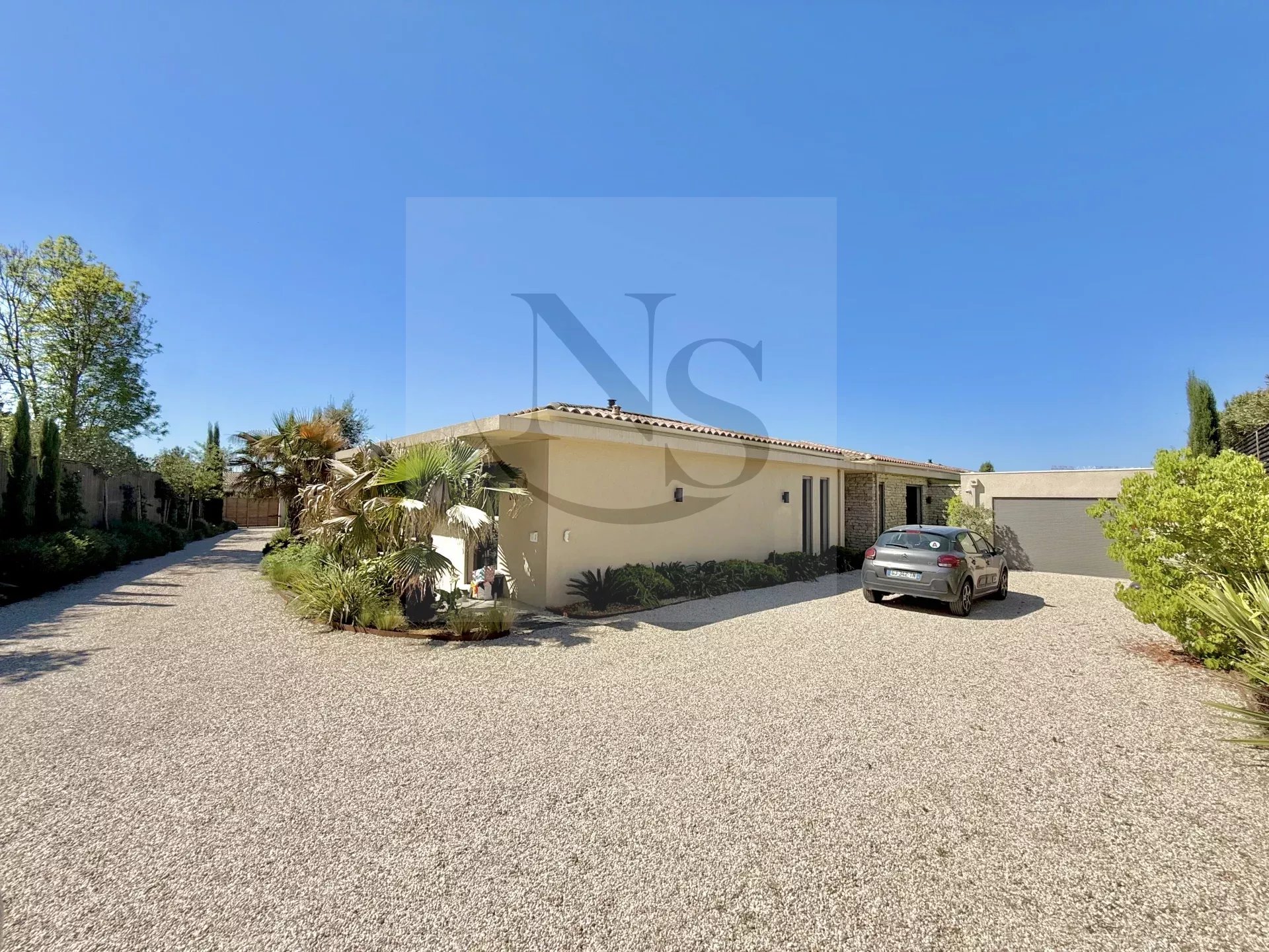 Le groupe NICOLAS STAES vous présente à la vente à 5 minutes d’Aix-en-Provence proche du village d’Éguilles, nichée dans un environnement privilégié, cette villa contemporaine de plain-pied développe 225 m² habitables au cœur d’un écrin paysager de 1 500 m², sublimé par une élégante inspiration méditerranéenne aux accents exotiques. Pensée comme un véritable lieu de vie ouvert sur l’extérieur, la propriété séduit par ses volumes généreux et sa luminosité remarquable. Le vaste espace de réception, baigné de lumière naturelle, s’articule autour d’un large salon et d’une cuisine américaine ultra équipée, prolongés par de spacieuses terrasses invitant à une vie dedans-dehors en toute fluidité. L’espace nuit se compose de quatre suites raffinées, chacune offrant confort et intimité, tandis qu’un pavillon d’invités indépendant vient compléter cet ensemble rare, idéal pour recevoir en toute discrétion. Facile à vivre au quotidien, la villa bénéficie des dernières normes de construction, alliant performance énergétique, confort moderne et prestations de haute qualité. Un garage ainsi que plusieurs places de parking viennent compléter ce bien. Proche de toutes commodités ainsi que des bus de ville et de l’école d’IBS. Une propriété où design contemporain et douceur de vivre s’unissent parfaitement.