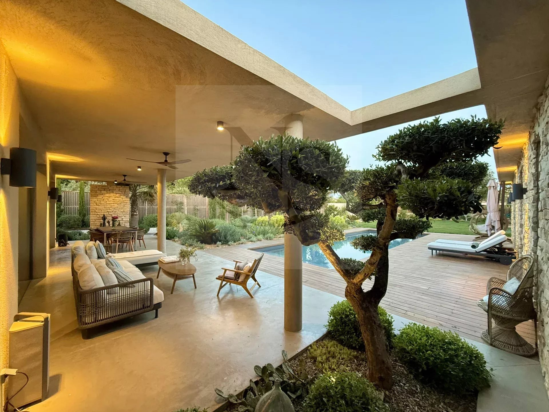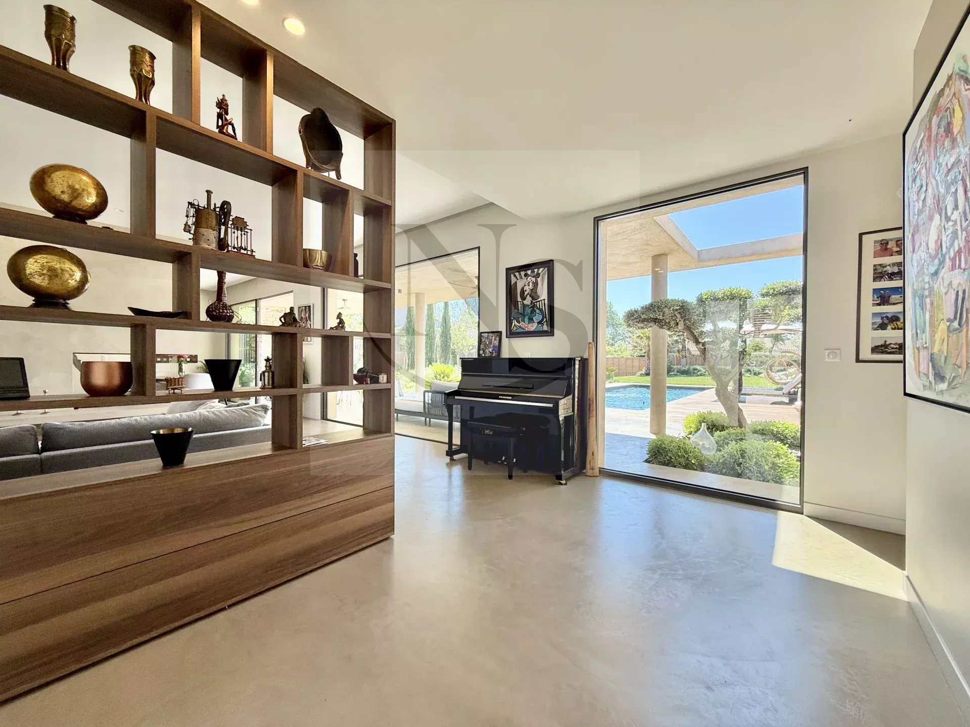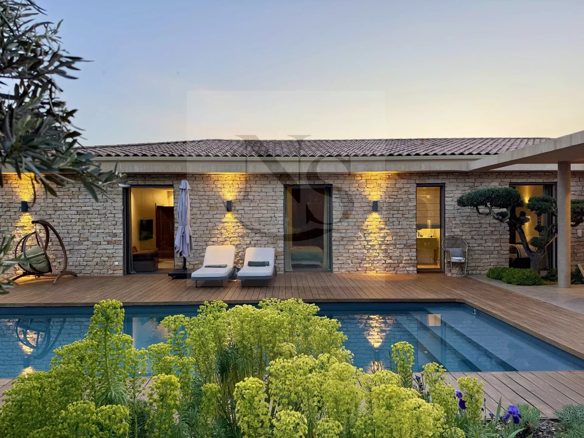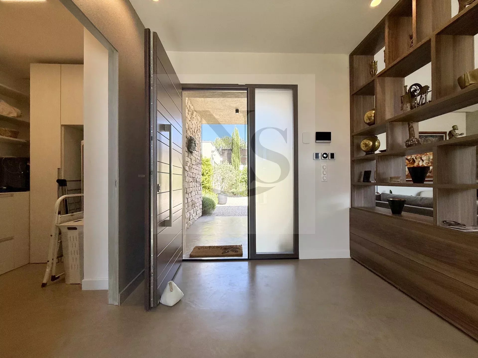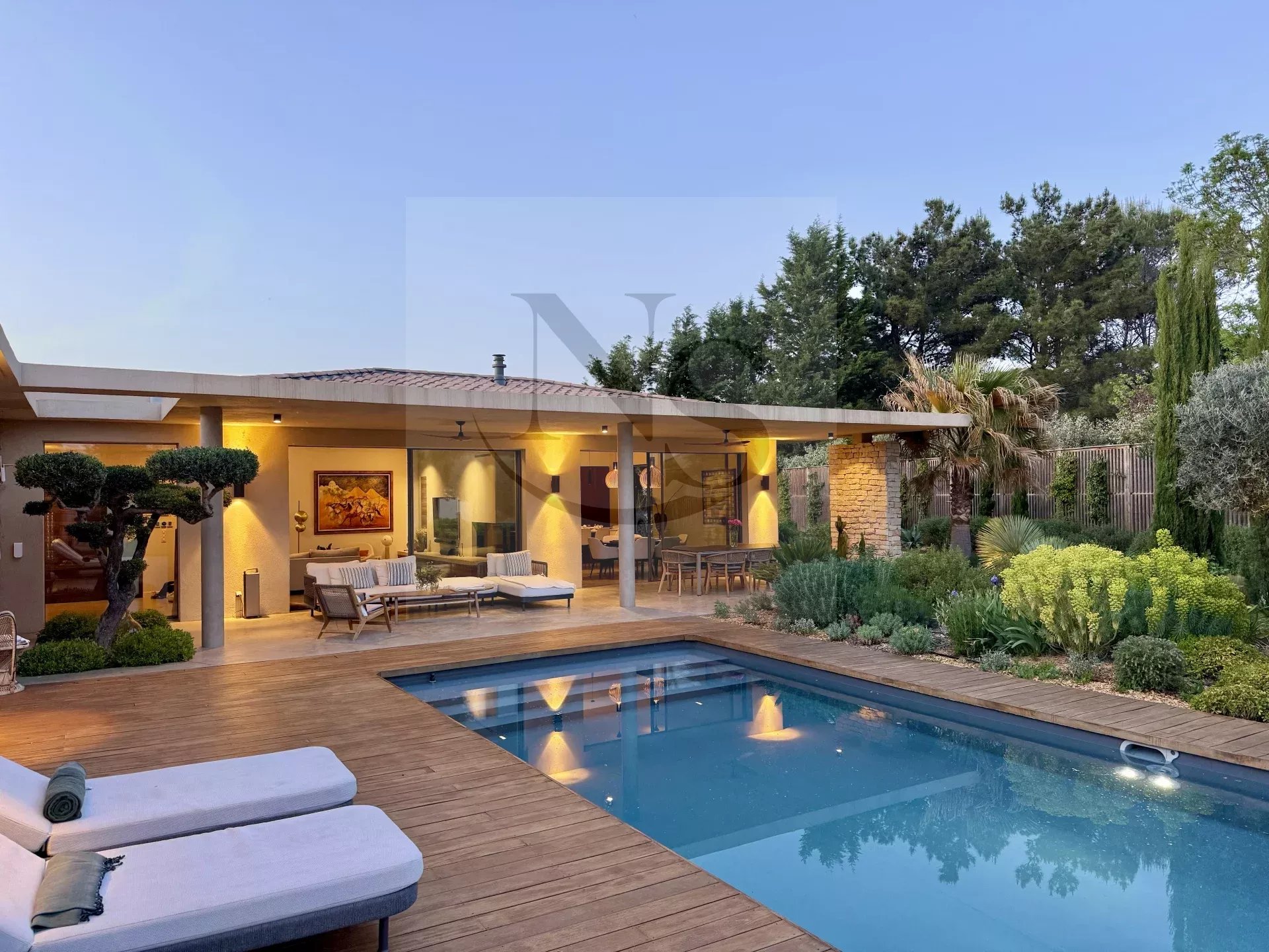 Le groupe NICOLAS STAES vous présente à la vente à 5 minutes d’Aix-en-Provence proche du village d’Éguilles, nichée dans un environnement privilégié, cette villa contemporaine de plain-pied développe 225 m² habitables au cœur d’un écrin paysager de 1 500 m², sublimé par une élégante inspiration méditerranéenne aux accents exotiques. Pensée comme un véritable lieu de vie ouvert sur l’extérieur, la propriété séduit par ses volumes généreux et sa luminosité remarquable. Le vaste espace de réception, baigné de lumière naturelle, s’articule autour d’un large salon et d’une cuisine américaine ultra équipée, prolongés par de spacieuses terrasses invitant à une vie dedans-dehors en toute fluidité. L’espace nuit se compose de quatre suites raffinées, chacune offrant confort et intimité, tandis qu’un pavillon d’invités indépendant vient compléter cet ensemble rare, idéal pour recevoir en toute discrétion. Facile à vivre au quotidien, la villa bénéficie des dernières normes de construction, alliant performance énergétique, confort moderne et prestations de haute qualité. Un garage ainsi que plusieurs places de parking viennent compléter ce bien. Proche de toutes commodités ainsi que des bus de ville et de l’école d’IBS. Une propriété où design contemporain et douceur de vivre s’unissent parfaitement.