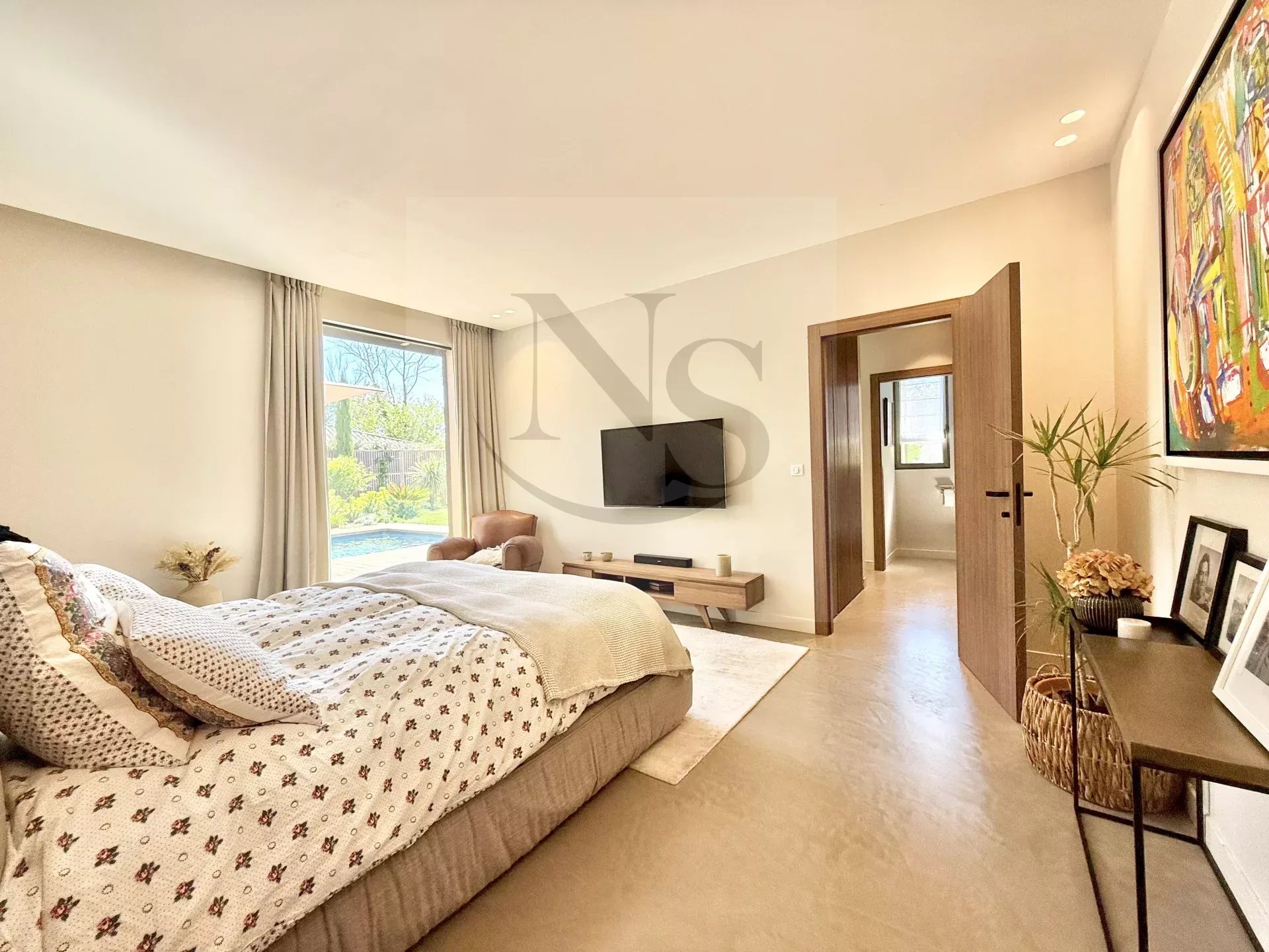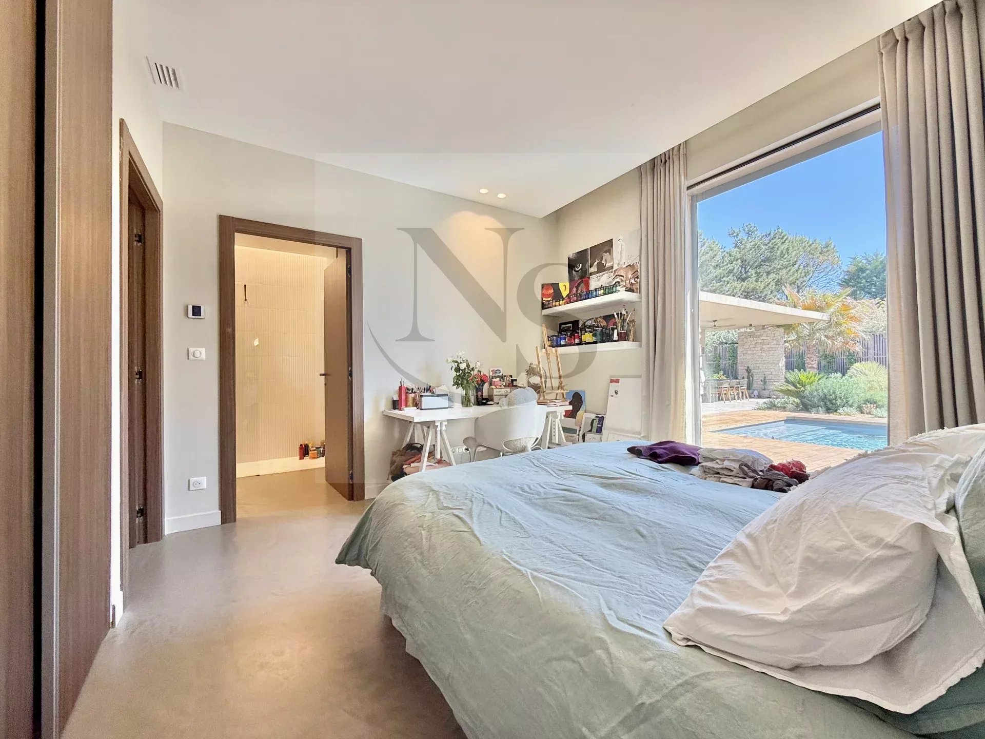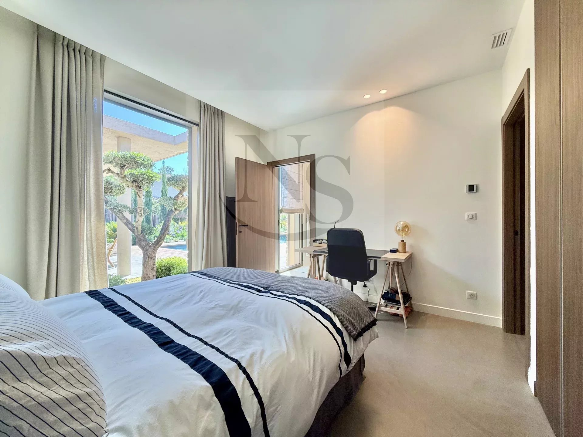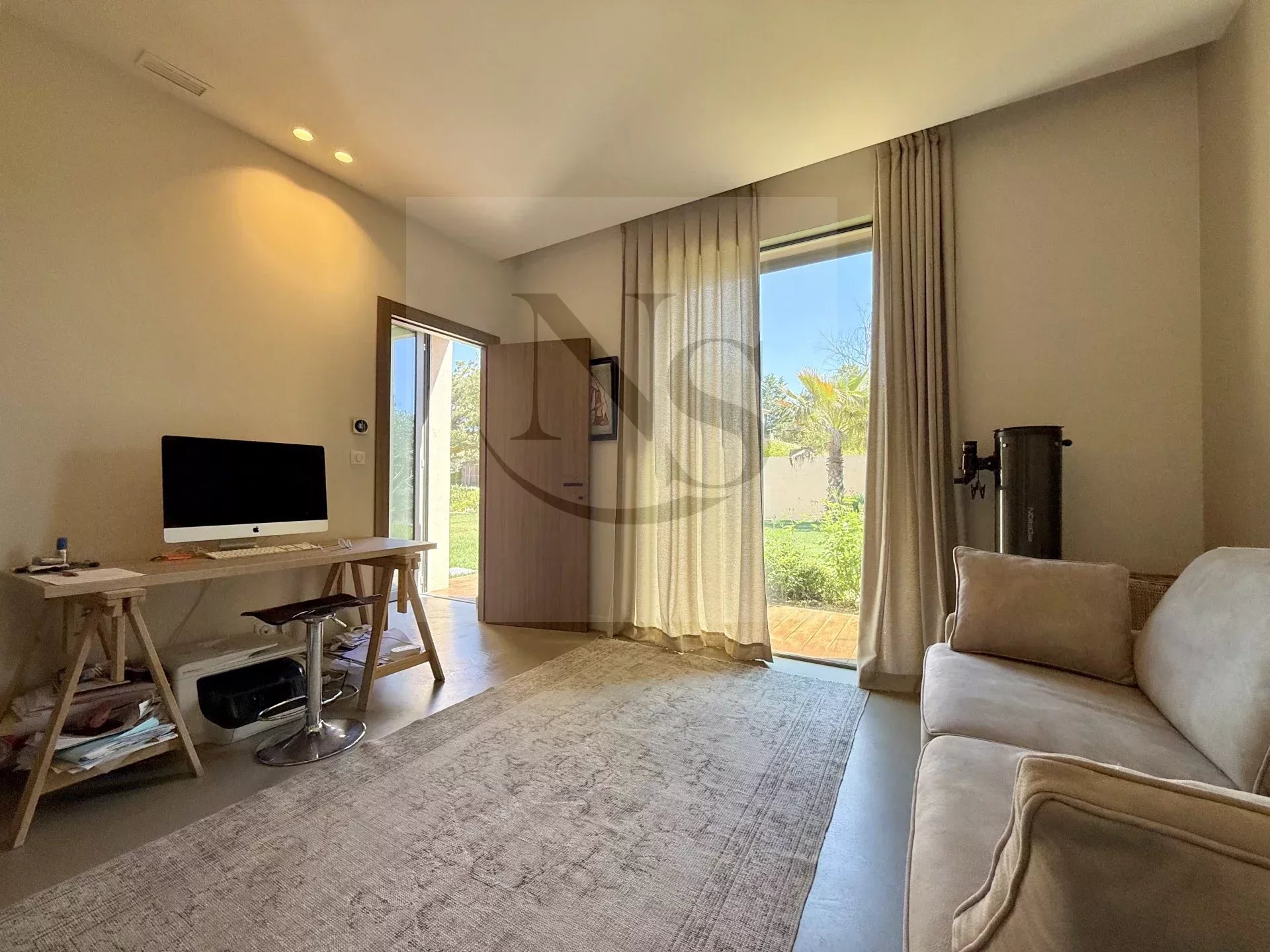 Le groupe NICOLAS STAES vous présente à la vente à 5 minutes d’Aix-en-Provence proche du village d’Éguilles, nichée dans un environnement privilégié, cette villa contemporaine de plain-pied développe 225 m² habitables au cœur d’un écrin paysager de 1 500 m², sublimé par une élégante inspiration méditerranéenne aux accents exotiques. Pensée comme un véritable lieu de vie ouvert sur l’extérieur, la propriété séduit par ses volumes généreux et sa luminosité remarquable. Le vaste espace de réception, baigné de lumière naturelle, s’articule autour d’un large salon et d’une cuisine américaine ultra équipée, prolongés par de spacieuses terrasses invitant à une vie dedans-dehors en toute fluidité. L’espace nuit se compose de quatre suites raffinées, chacune offrant confort et intimité, tandis qu’un pavillon d’invités indépendant vient compléter cet ensemble rare, idéal pour recevoir en toute discrétion. Facile à vivre au quotidien, la villa bénéficie des dernières normes de construction, alliant performance énergétique, confort moderne et prestations de haute qualité. Un garage ainsi que plusieurs places de parking viennent compléter ce bien. Proche de toutes commodités ainsi que des bus de ville et de l’école d’IBS. Une propriété où design contemporain et douceur de vivre s’unissent parfaitement.
