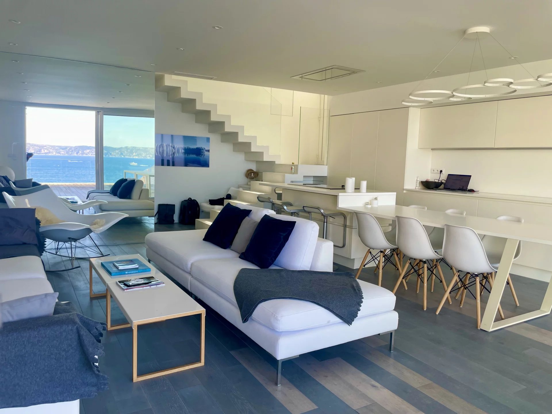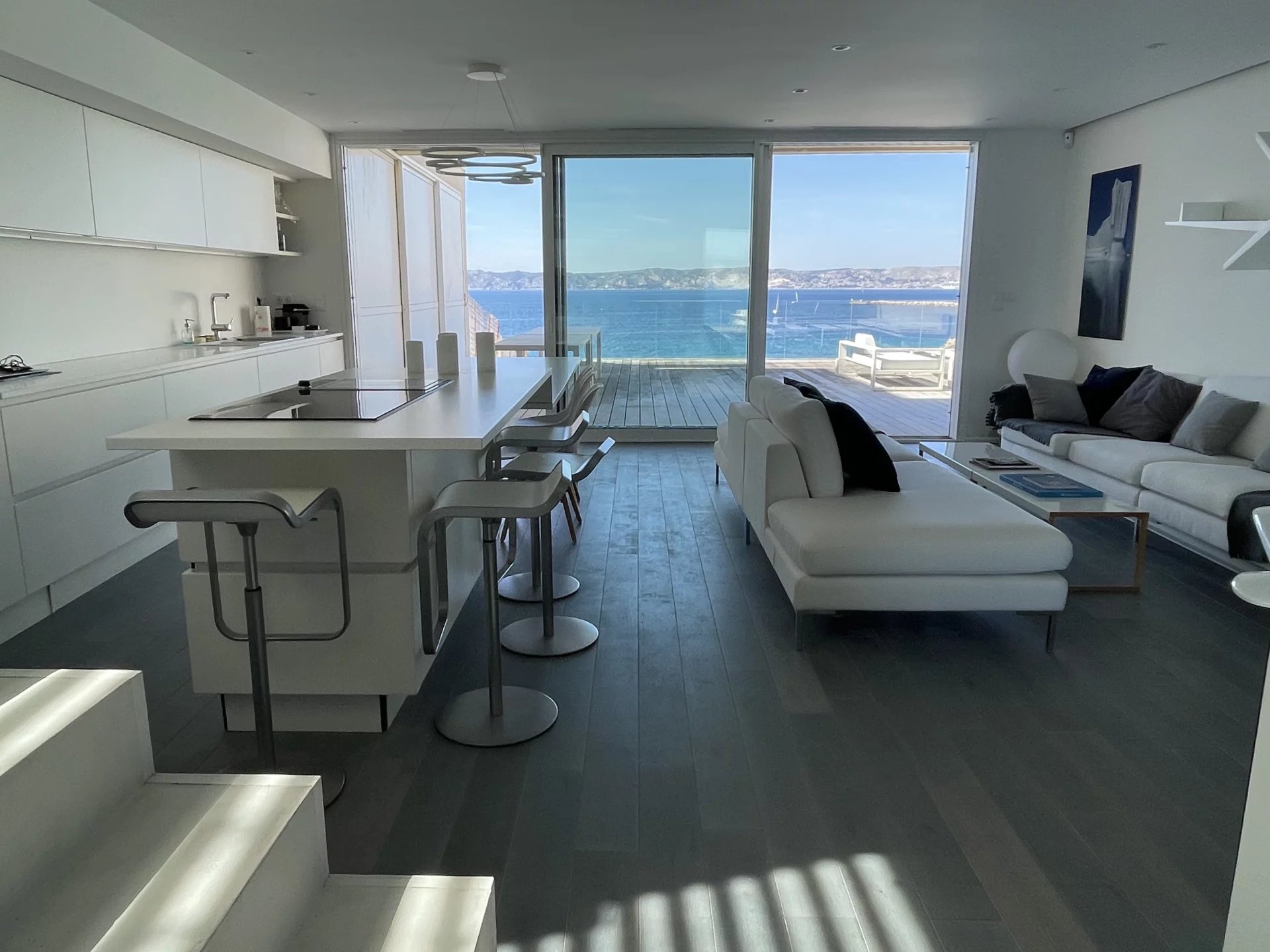 Au cœur du très recherché quartier de Malmousque, découvrez une propriété rare, véritable invitation à vivre au rythme de la mer. Ce bien est au sein d'une petite copropriété car deux appartements se situent en contre-bas de la colline. pas de partie commune, la maison a son entrée indépendante, seule au bout d'une impasse dominante. Idéalement située en deuxième ligne des rochers de malmousque, cette maison d’environ 120 m² offre une expérience de vie unique, où chaque pièce s’ouvre sur l’horizon. Ici, la Méditerranée devient votre décor quotidien. Dès l’entrée, vous serez séduit par un vaste séjour baigné de lumière de 45 m², prolongé d 'une terrasse de 70m2 donnant une sensation d’espace et de liberté grâce à une vue mer omniprésente. La maison propose 3 chambres donnant sur des terrasses, toutes tournées vers le bleu, avec chacune leur salle de douche et sanitaire. Offrant confort et sérénité à chaque instant. un espace bureau complet le 1er niveau. À l’extérieur au niveau du séjour, une exceptionnelle terrasse de 70 m² au calme surplombe la mer, idéal pour prendre un bain de soleil et profiter de vos soirées d’été. Entièrement rénovée par une architecte en 2015 avec des matériaux de qualité, des espaces bien pensés, la maison allie le charme de l’authentique au confort contemporain. tout l'électroménager est pratiquement et n'a pas beaucoup servi car c'était une maison de vacances. Aucuns travaux à prévoir : il ne reste plus qu’à poser vos valises et savourer. Un bien rare, presque confidentiel, pour les amoureux de la mer et des lieux d’exception. Un véritable coup de cœur. possibilité d'acquerir un garage en sus au bout à proximité. prix 60000€ Honoraires forfaitaire inclus à la charge de l'acquereur 35000€