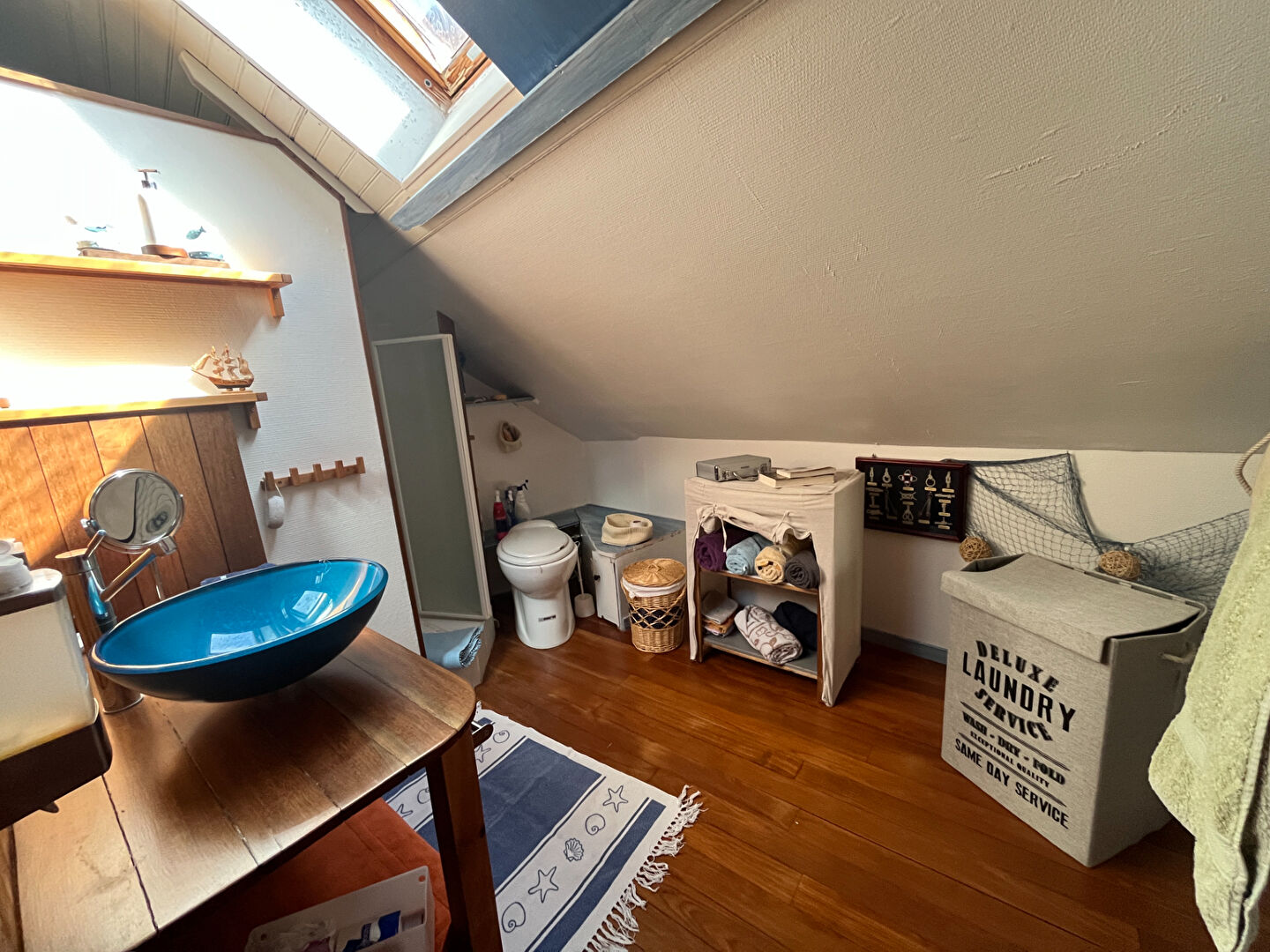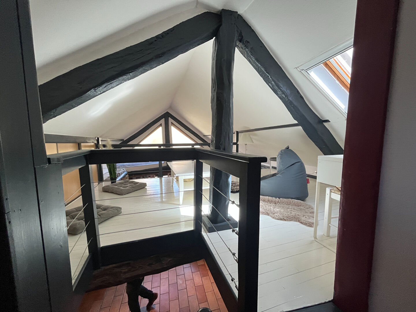 À l'étage, l'espace nuit propose deux chambres supplémentaires, un bureau, une mezzanine pleine de charme, ainsi qu'une seconde salle d'eau avec WC.