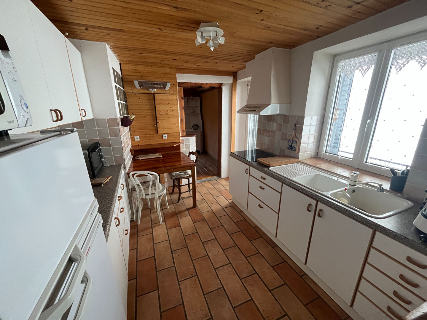 Au rez-de-chaussée, vous découvrirez un beau séjour lumineux agrémenté d'un poêle à bois, idéal pour des moments conviviaux. La cuisine, fonctionnelle, s'ouvre sur un balcon offrant une belle vue dégagée. Une salle à manger, une chambre, une salle d'eau, un dégagement ainsi qu'un WC complètent ce niveau.