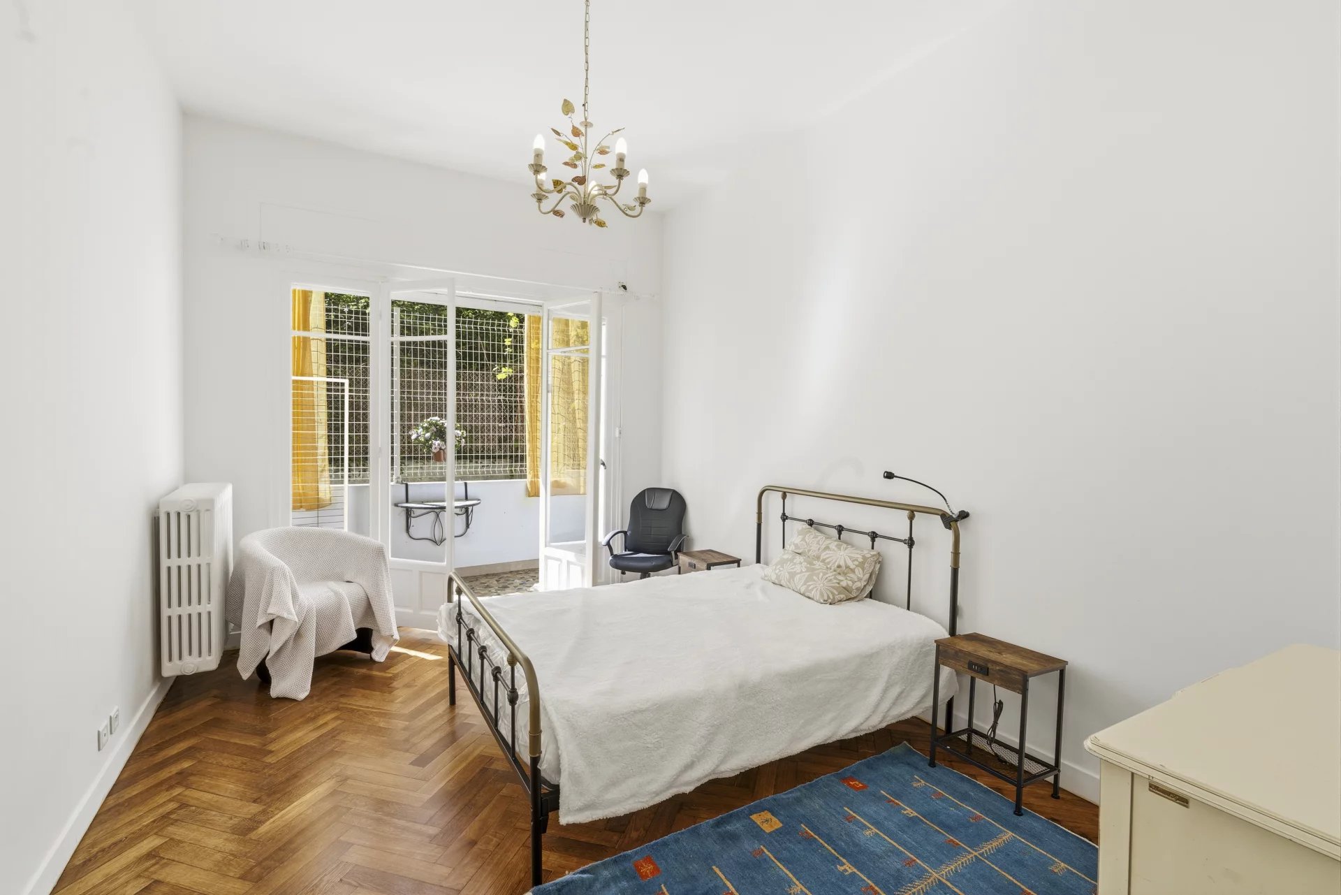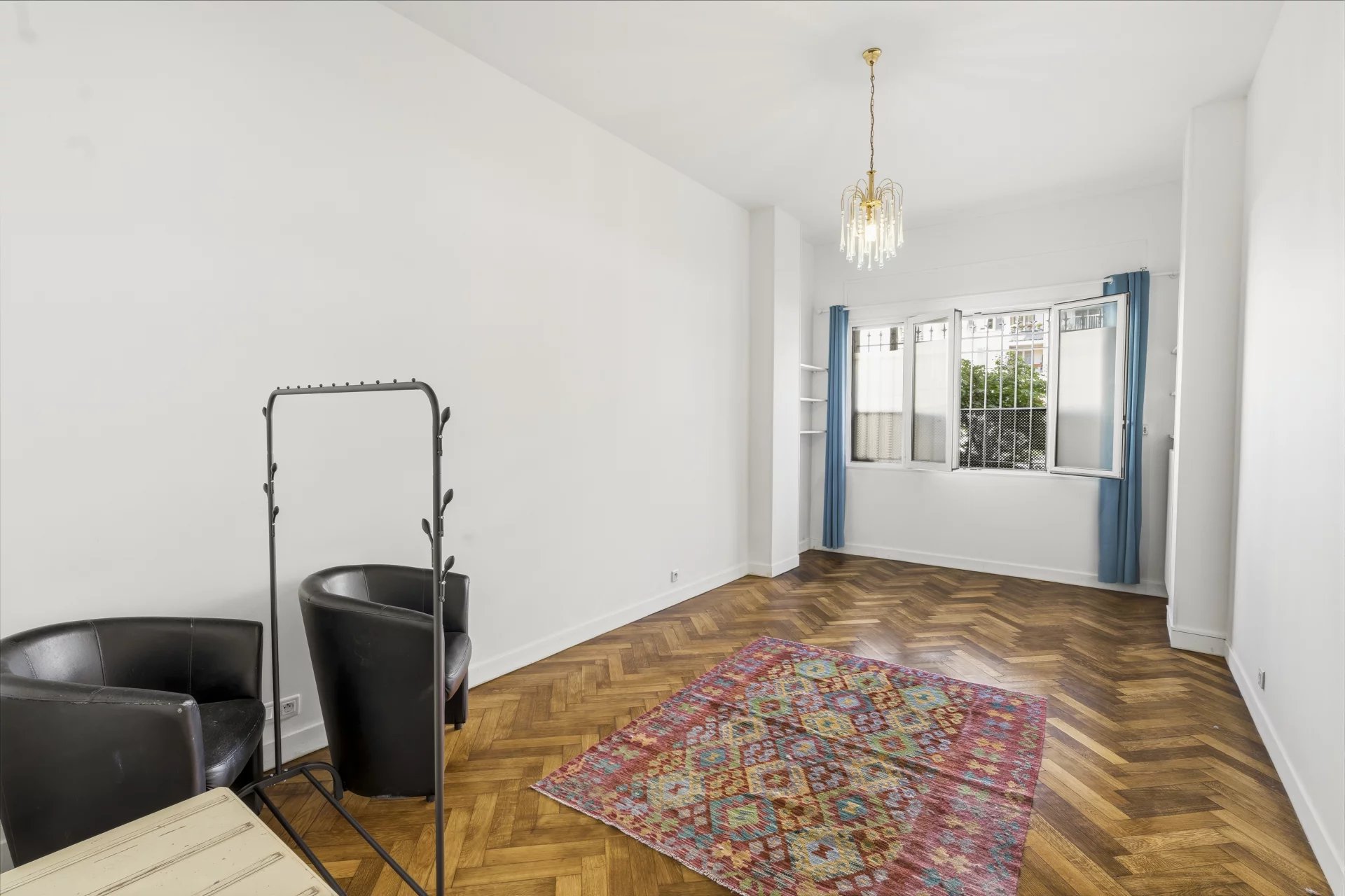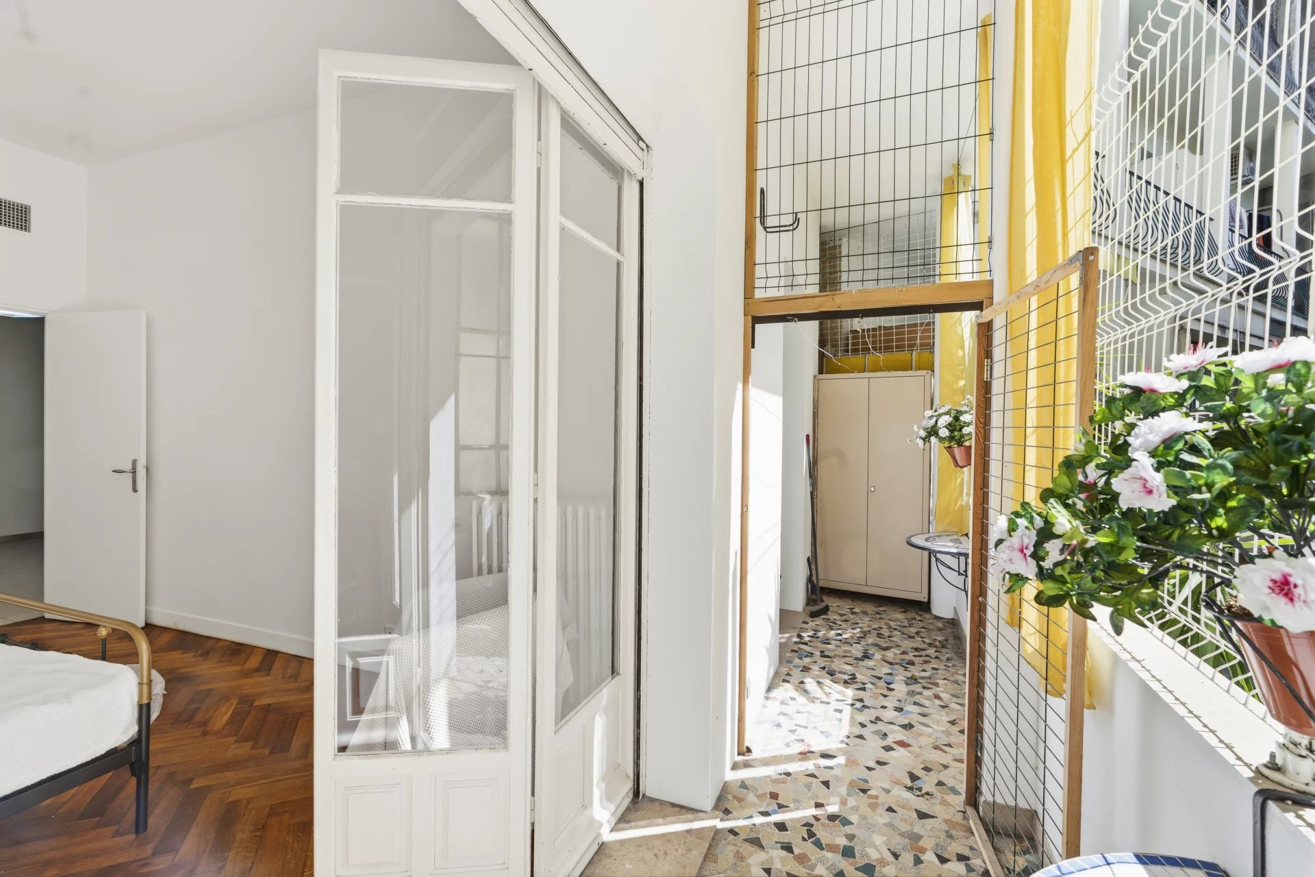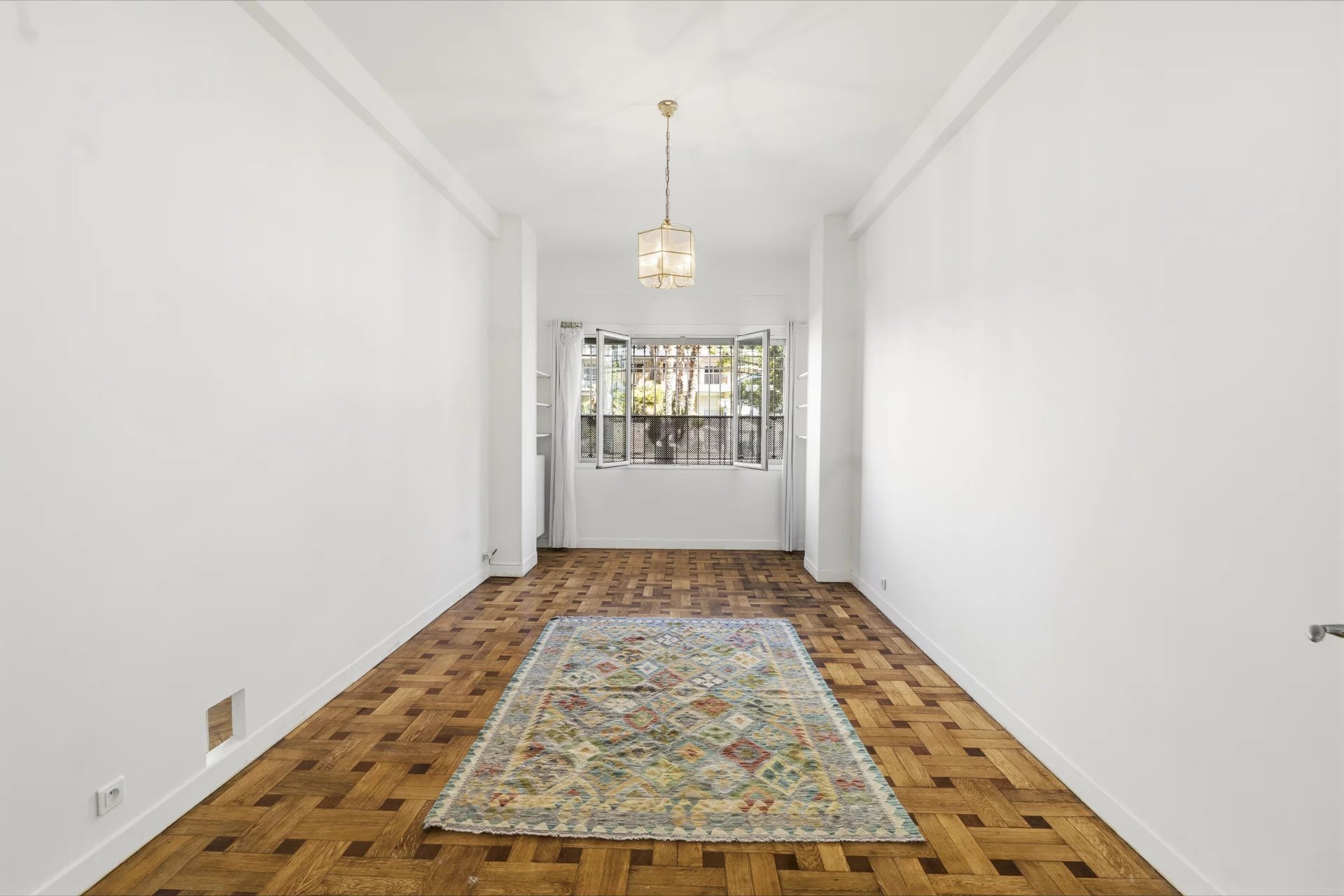 Rue de France, à deux minutes à pied de la Promenade des Anglais, dans un immeuble gardienné et sécurisé situé au cœur du quartier des Baumettes, classé espace protégé UNESCO. Ce 3 pièces de 88 m² traversant séduit d'emblée par ses volumes et sa hauteur sous plafond de 3,20 m ,un gabarit qu'on ne trouve plus dans les constructions récentes. Le parquet massif d'époque ajoute ce cachet particulier qui fait toute la différence entre un appartement et un appartement qu'on n'oublie pas. L'entrée avec sas distribue un séjour lumineux d'environ 20 m², agréable à vivre au quotidien, et une cuisine indépendante fonctionnelle. La partie nuit se compose de deux belles chambres : 20 m² pour la principale, 15 m² pour la seconde ,cette dernière donnant directement sur la terrasse. Dressings, placards et rangements sont nombreux, ce qui change vraiment la vie au quotidien. La terrasse de 9 m², arborée et calme, est orientée côté cour. Pas de bruit , un vrai espace extérieur pour profiter du climat niçois sans compromis. Cave de 4 m² incluse. Stationnement possible à proximité en location. Charges annuelles de 1 600 €, aucune procédure en cours. La mer, le tramway, les commerces et les écoles sont accessibles à pied. C'est précisément ce qu'on cherche quand on choisit Nice.