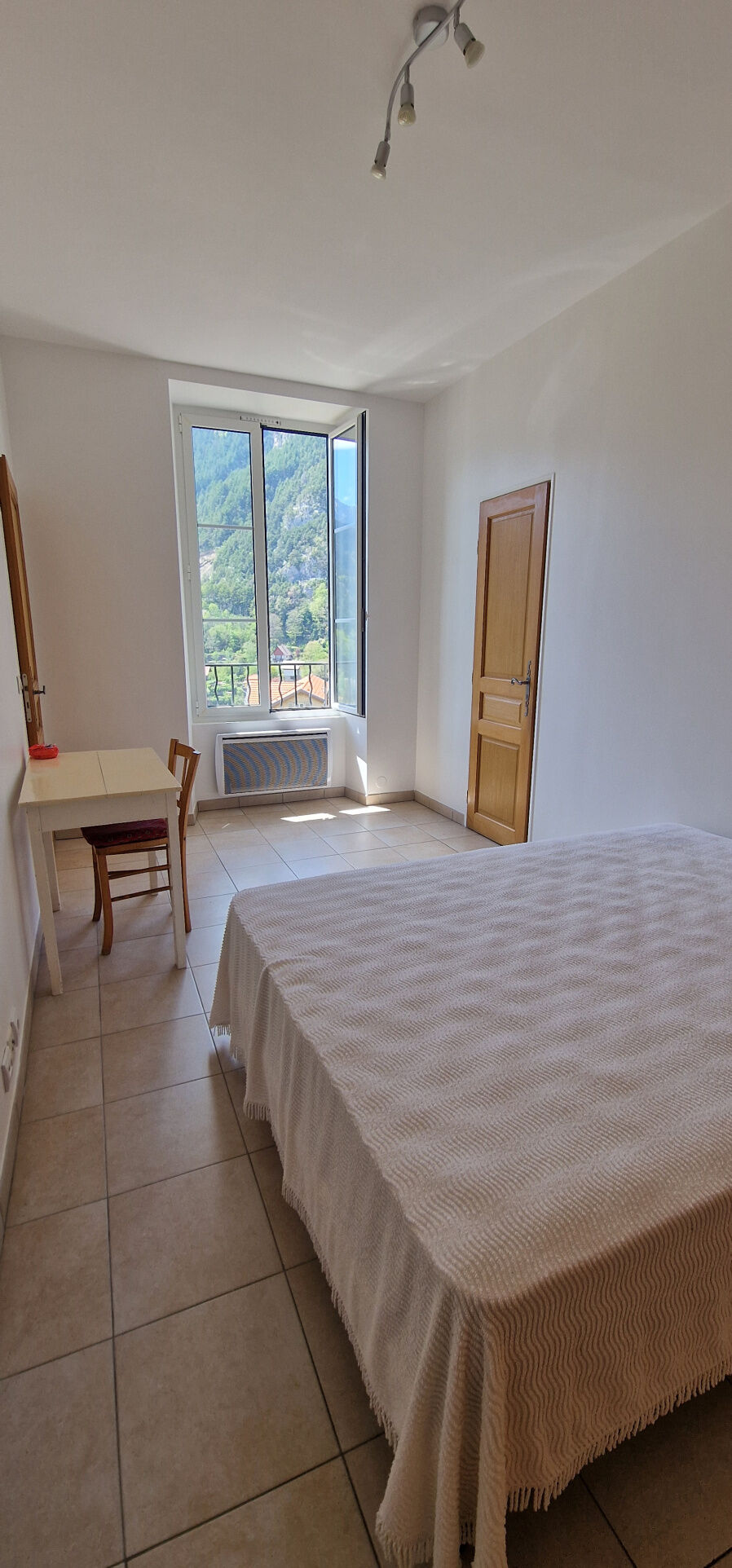 L'appartement est lumineux, avec une jolie vue sur le bas du village, sur les montagnes et Venanson.
