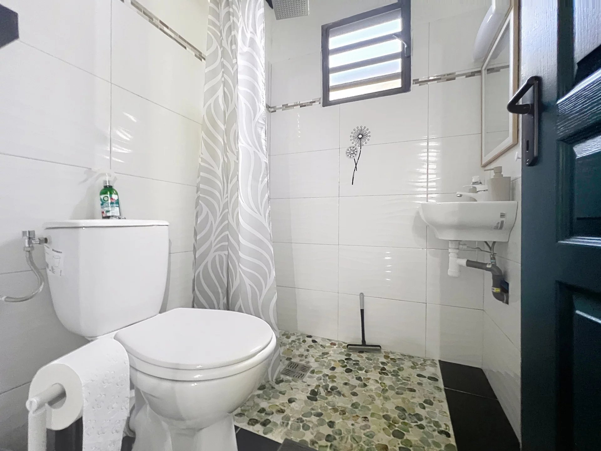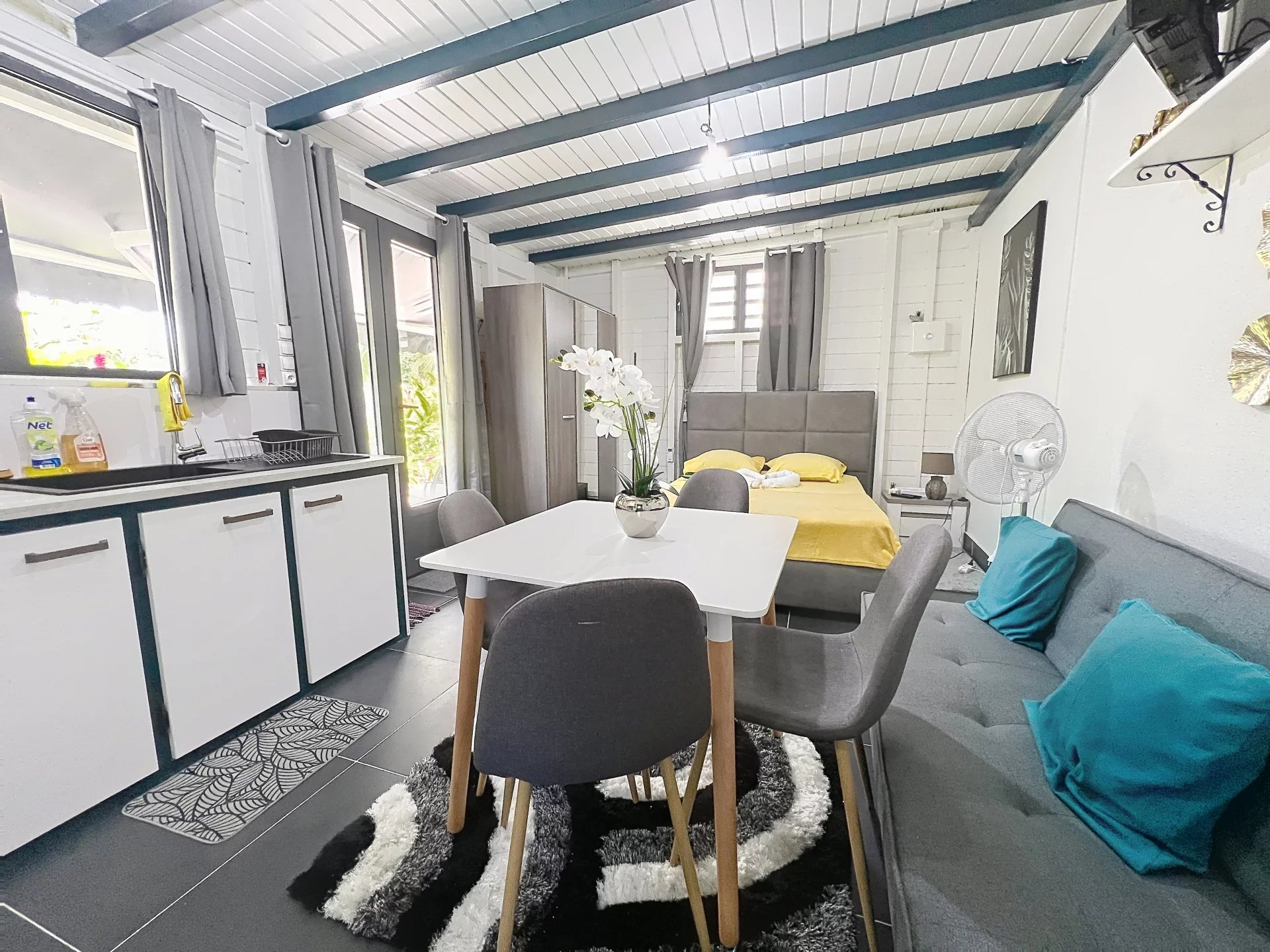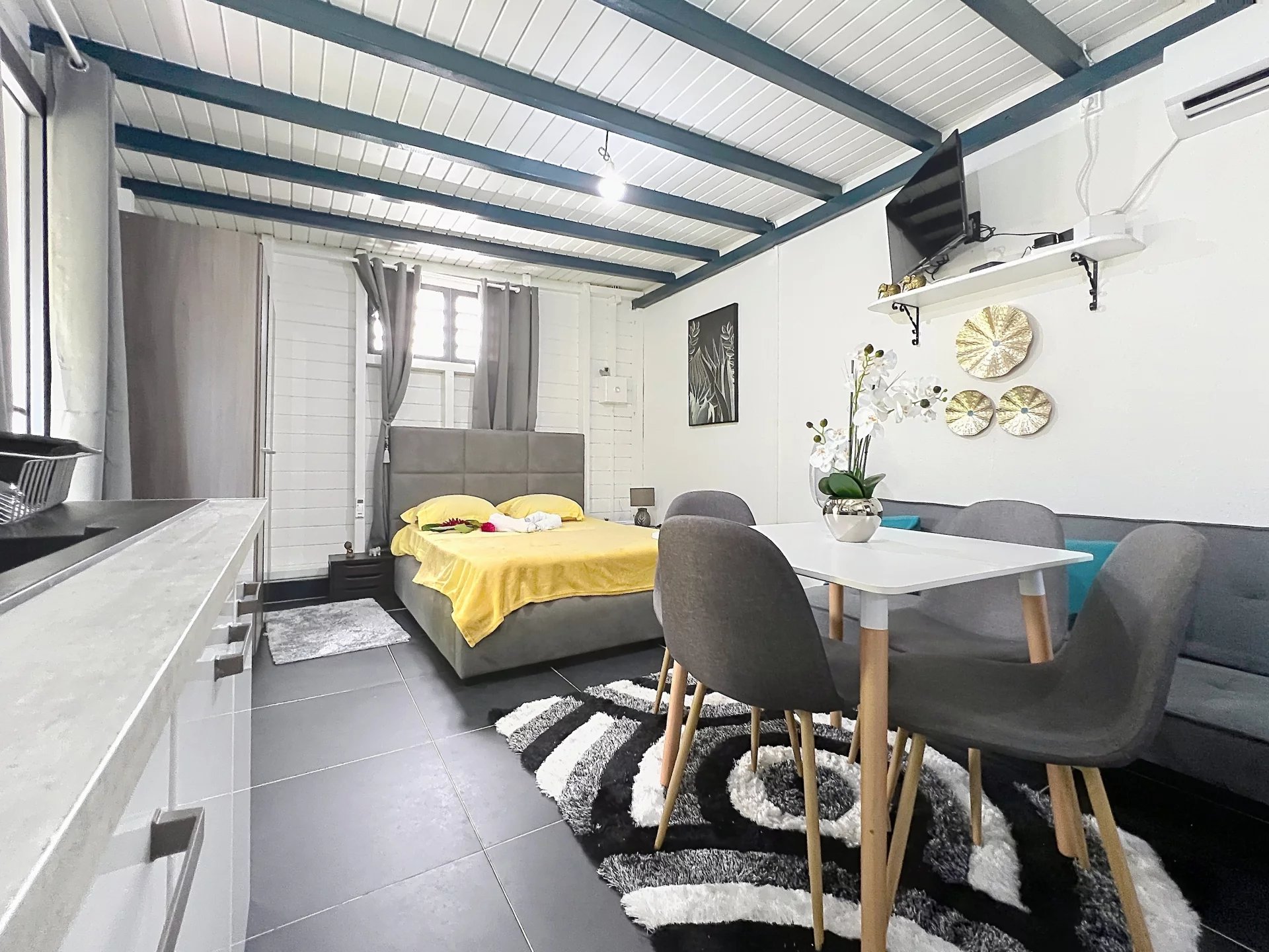 Situé dans un environnement calme au Lamentin, ce bungalow est idéal pour un séjour en solo ou en couple. Fonctionnel et bien agencé, il offre tout le confort nécessaire pour profiter pleinement de votre séjour en Guadeloupe. Description du bien : Espace nuit agréable Climatisation Cuisine équipée (plaques de cuisson, réfrigérateur, micro-ondes, cafetière) Salle d’eau Connexion WiFi Télévision, fer à repasser, sèche-cheveux Linge de maison et vaisselle fournis Extérieurs et environnement : Piscine commune accessible aux occupants Propriété clôturée et sécurisée avec portail électrique Stationnement sur place 👉 Deux autres bungalows de même capacité sont également présents sur la propriété, permettant d’accueillir plusieurs personnes tout en conservant l’indépendance de chacun. Capacité : 2 personnes maximum Tarifs : 114 € / nuit 1 320 € / mois Forfait ménage de fin de séjour : 45 € Conditions : Hébergement non-fumeur à l’intérieur Animaux non autorisés Localisation : Situé au Lamentin, ce bien bénéficie d’un emplacement stratégique pour accéder facilement aux différents axes de l’île, aux commodités ainsi qu’aux sites naturels et plages de la Guadeloupe.