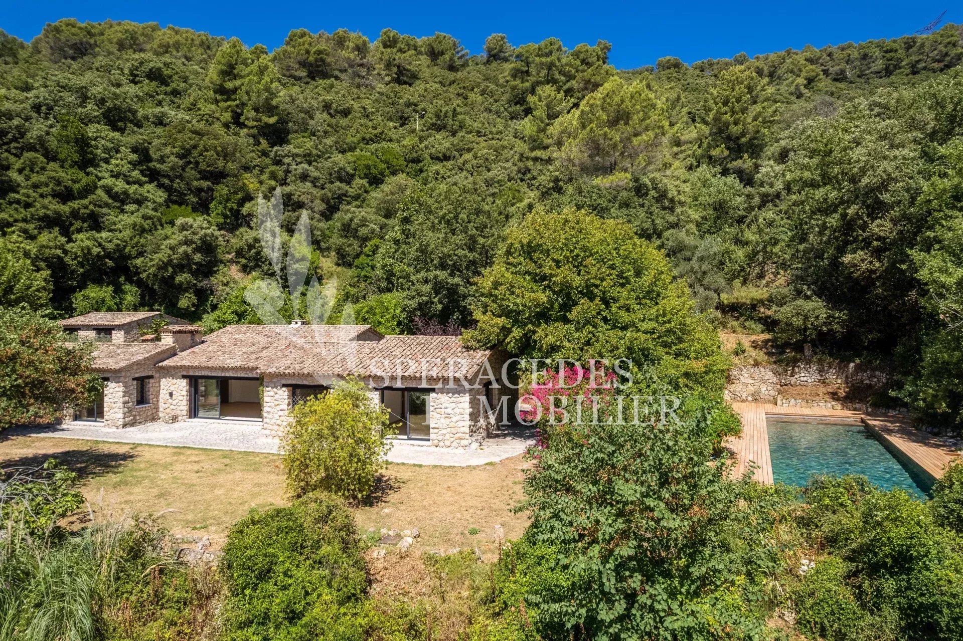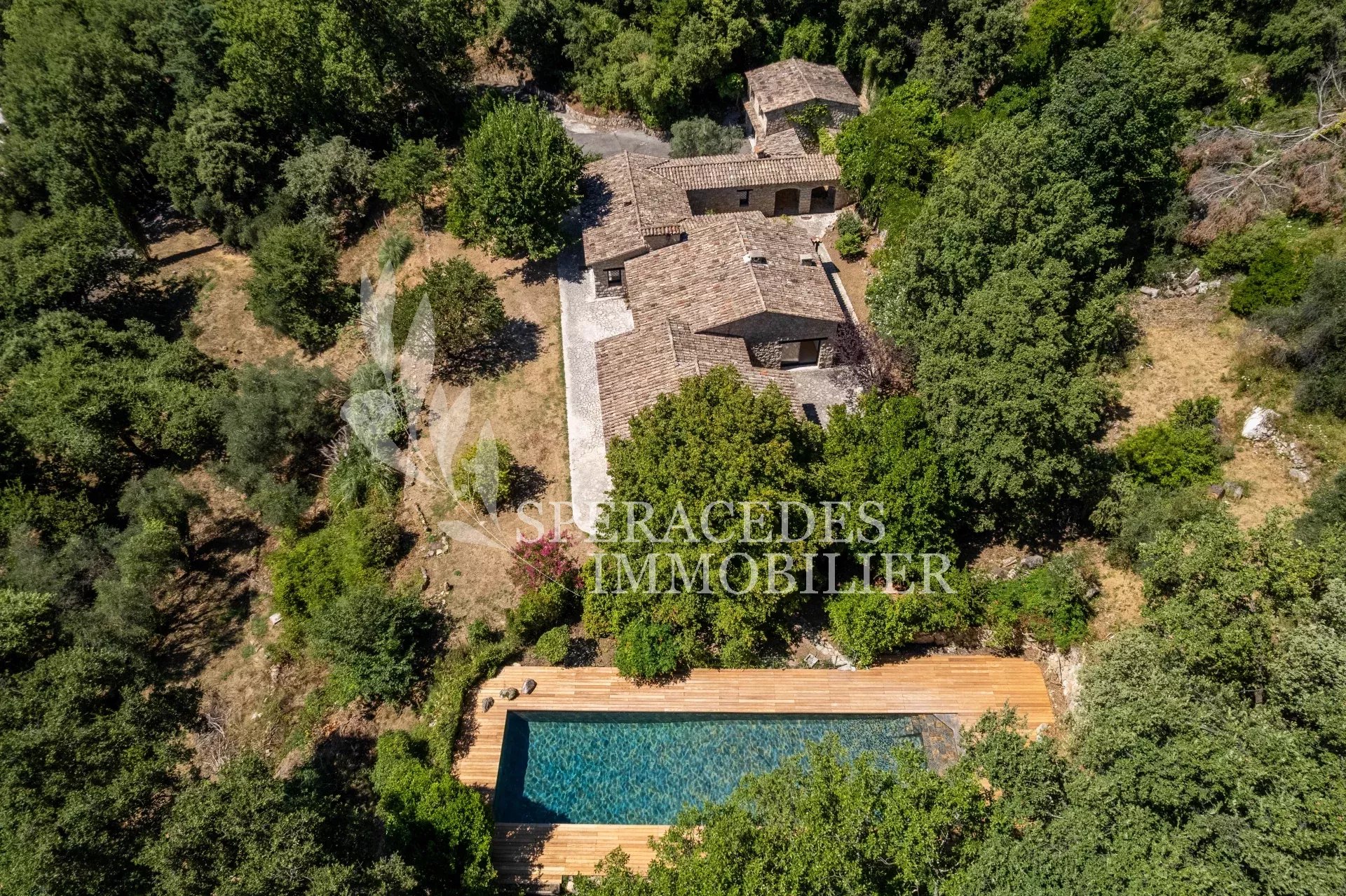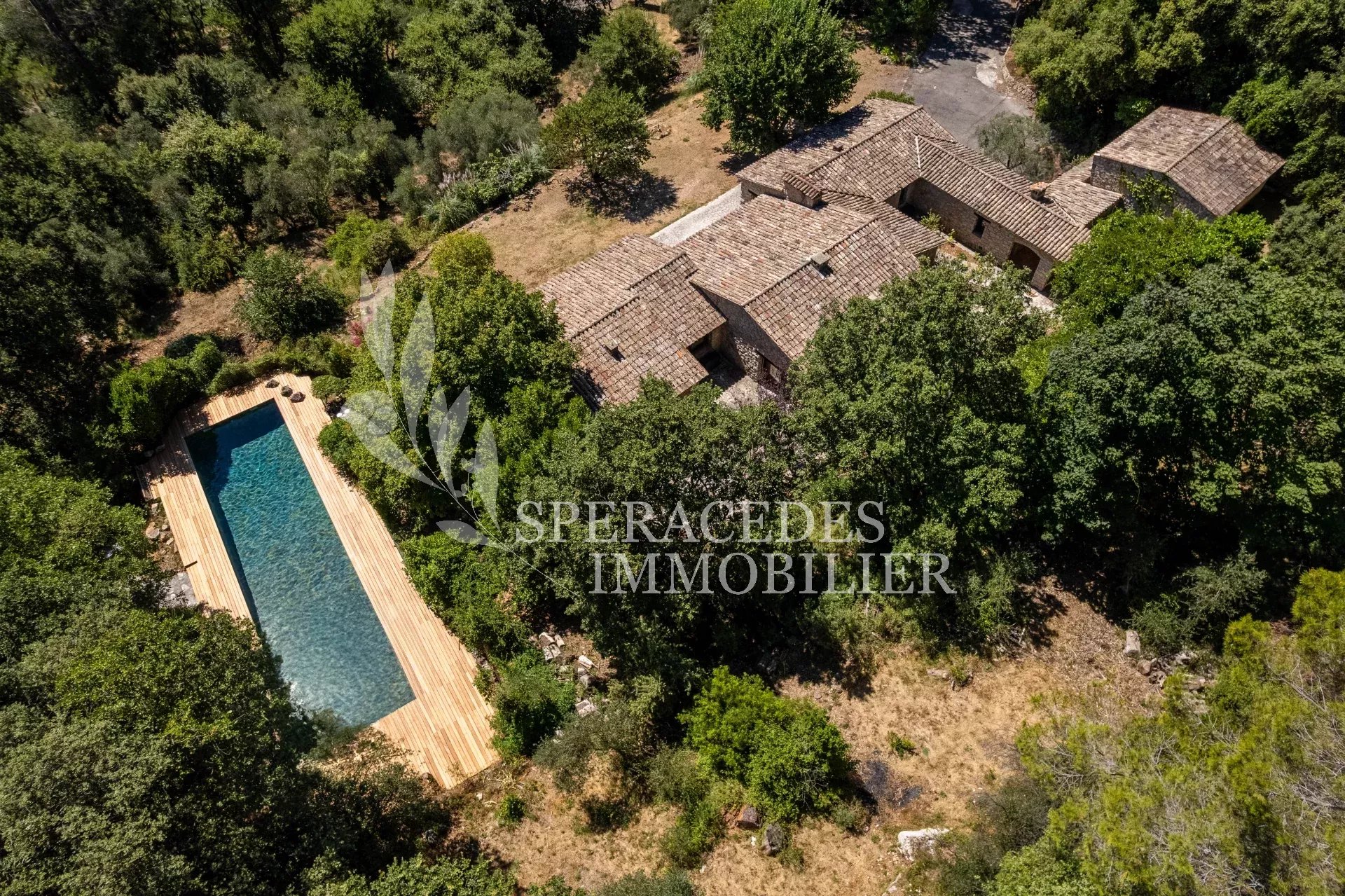 Découvrez cette superbe propriété en pierre, nichée dans un environnement prisé, au calme total, bénéficiant d'une belle vue dégagée et rénovée avec des prestations de qualité. D'une surface d’environ 300 m², entièrement de plain pied, elle se compose d’un double séjour lumineux bénéficiant d'une belle hauteur sous plafond, cheminée en pierre, vaste cuisine avec salle à manger, 4 chambres, 3 salles de douches. Une maison de gardien vient compléter la propriété. Implantée sur un terrain d'environ 1,7 hectare, facile d’entretien, elle offre un cadre de vie exceptionnel, avec une splendide piscine couloir de nage de 25 mètres, en pierre de Bali. Une grande allée privée mène à la maison, avec un espace de stationnement et un double garage. Aucun travaux à prévoir dans la maison principale.