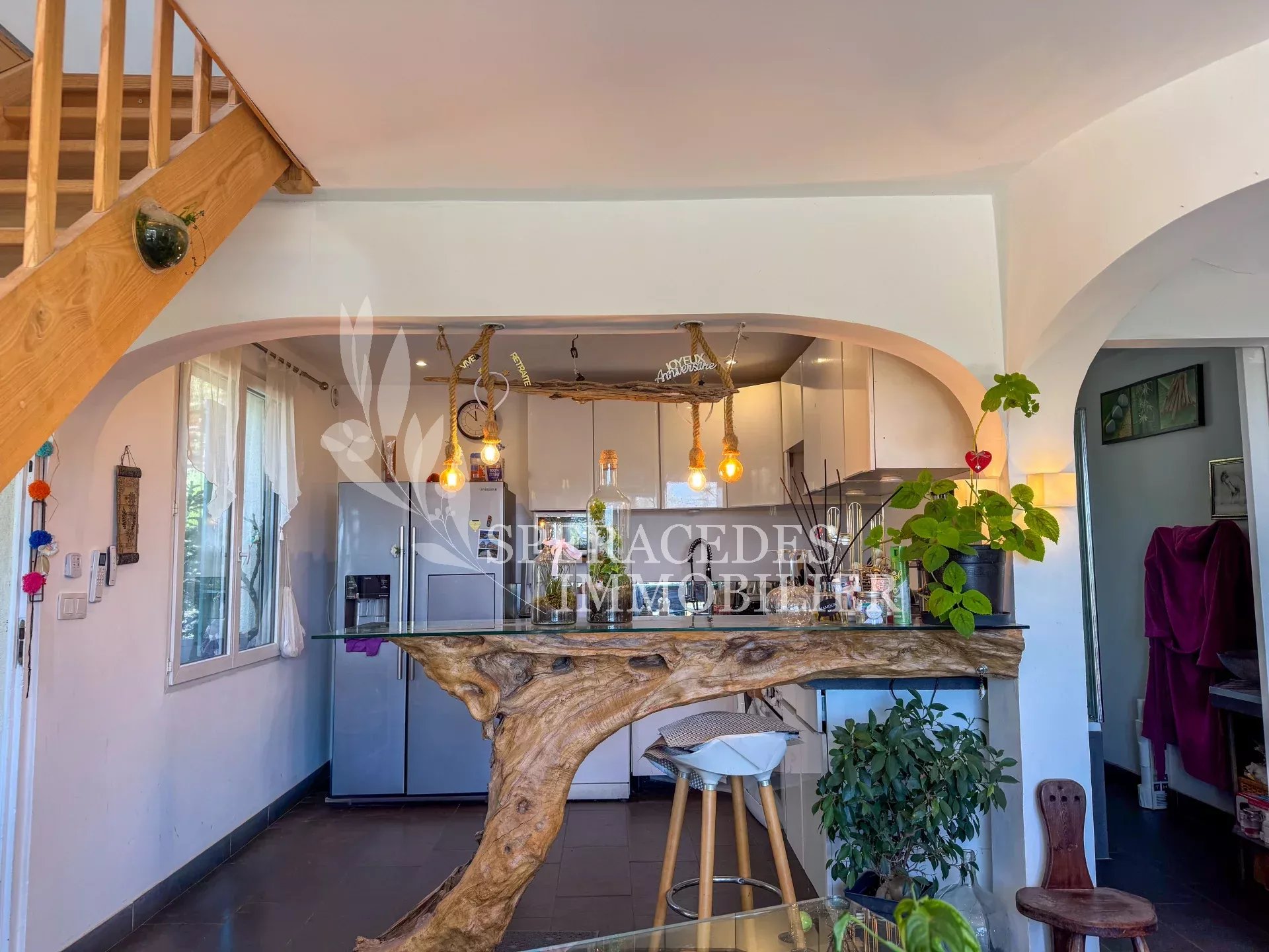 Saint-Cézaire-sur-Siagne, maison de 120 m² implantée sur un terrain d’environ 1 900 m². Elle se compose, au rez-de-chaussée, d’une entrée desservant une cuisine, un salon, une chambre ainsi qu’une salle de bains. À l’étage, un second espace de vie constitué d’un salon, ainsi que deux chambres supplémentaires et une salle de bains. L’extérieur quant à lui offre un charmant jardin arboré et une belle terrasse dans un environnement champêtre. Elle dispose aussi d’une cuisine d’été, d'un barbecue, d’une piscine, d’un cabanon et d’un bassin. Exposée Sud-Est, la maison bénéficie d’une belle luminosité dans un environnement préservé, à proximité du village, offrant un cadre idéal pour une famille. Une propriété pleine de charme.