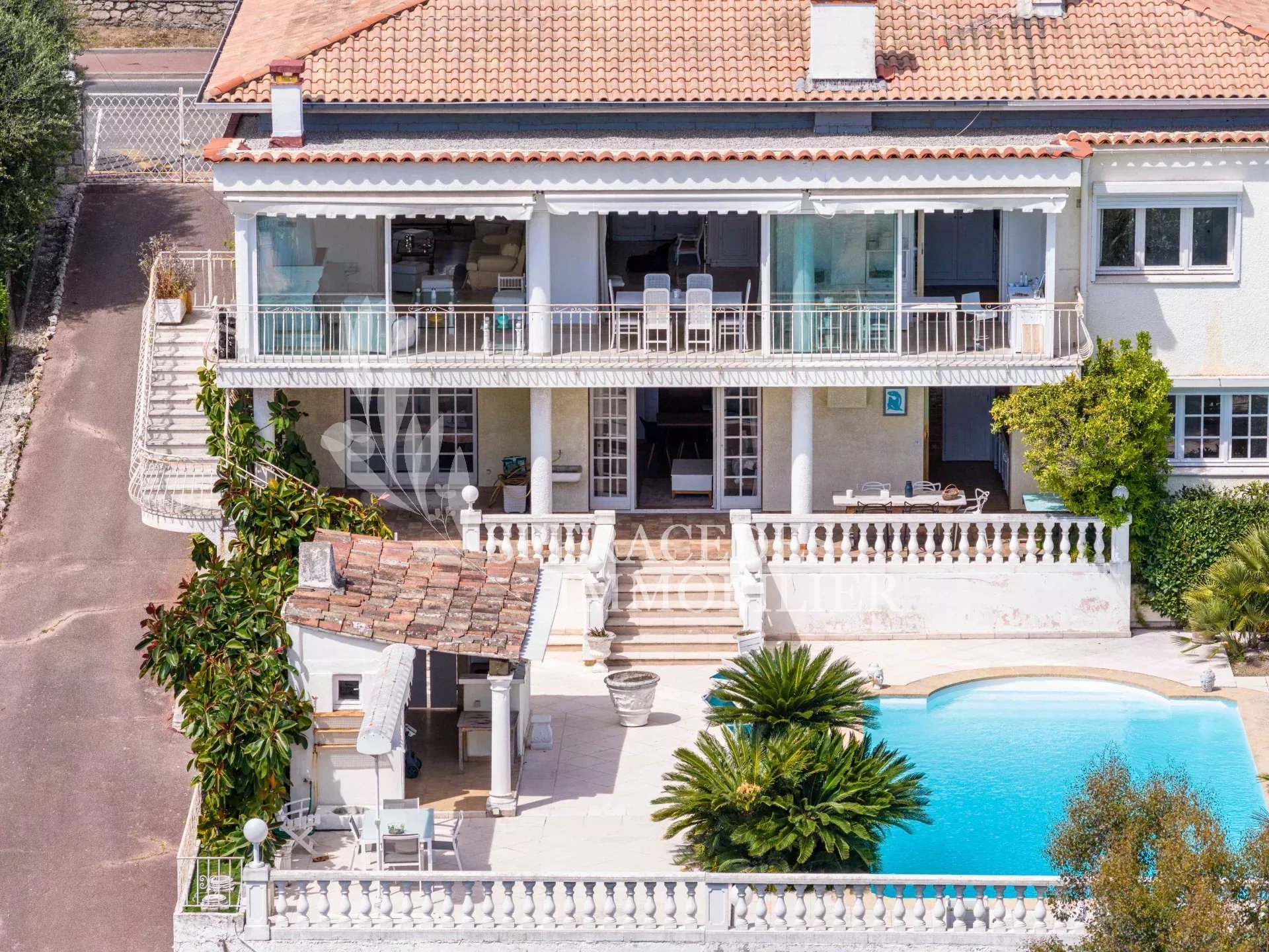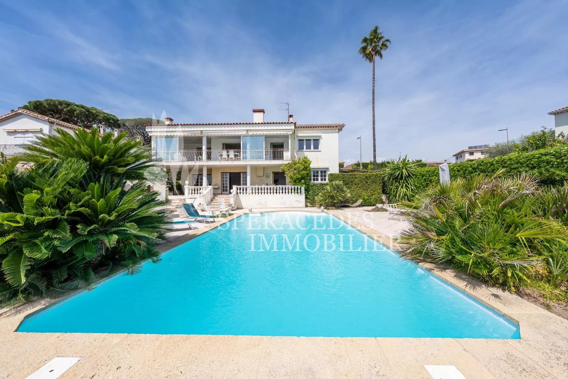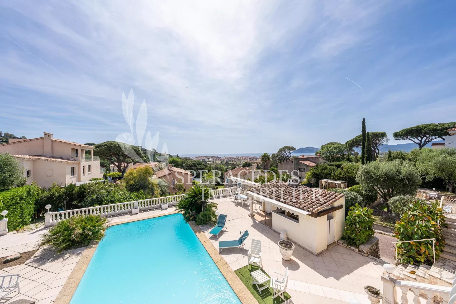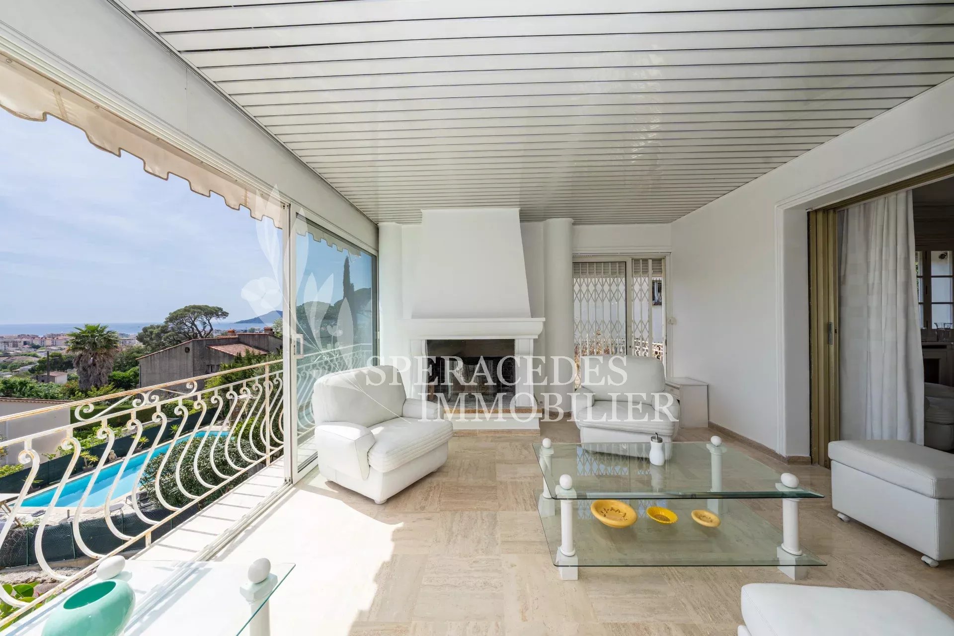 Cannes, dans un environnement calme et résidentiel, cette élégante villa exposée plein sud bénéficie d’une superbe vue sur la mer et l’Estérel. D’une superficie totale d’environ 320 m², incluant une terrasse fermée baignée de soleil d'environ 34 m² avec cheminée, la propriété se compose d’une habitation principale ainsi que de trois appartements indépendants. La partie principale propose, au rez-de-chaussée, un vaste et lumineux séjour de 65 m², une cuisine indépendante, deux chambres, trois salles de bains et une salle de douche. Une troisième chambre peut facilement être aménagée. Au rez-de-jardin, un séjour avec cheminée, une cuisine indépendante, une chambre et une salle de bains, l’ensemble s’ouvrant sur une grande terrasse avec accès direct à l’espace piscine. Trois studios indépendants complètent le bien. À l’extérieur, le terrain de 1 144 m² offre de beaux espaces, une piscine au sel de 12,5 x 5,5 m ainsi qu’un espace pool house. Plusieurs places de stationnement, un abri voiture d’environ 40 m² et un vaste sous-sol d’environ 186 m² viennent parfaire l’ensemble. Le chauffage et l’eau chaude sont assurés par une pompe à chaleur. Cette propriété offre de nombreuses possibilités, idéale en grande villa familiale, elle permet également de générer un rendement locatif grâce aux appartements existants, avec la possibilité d’aménager jusqu’à cinq logements indépendants au total.