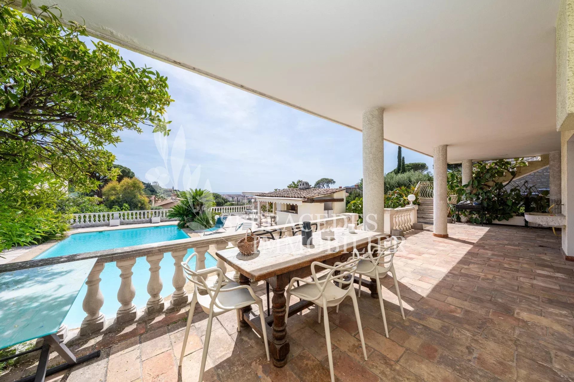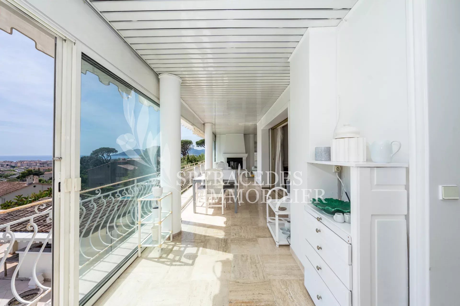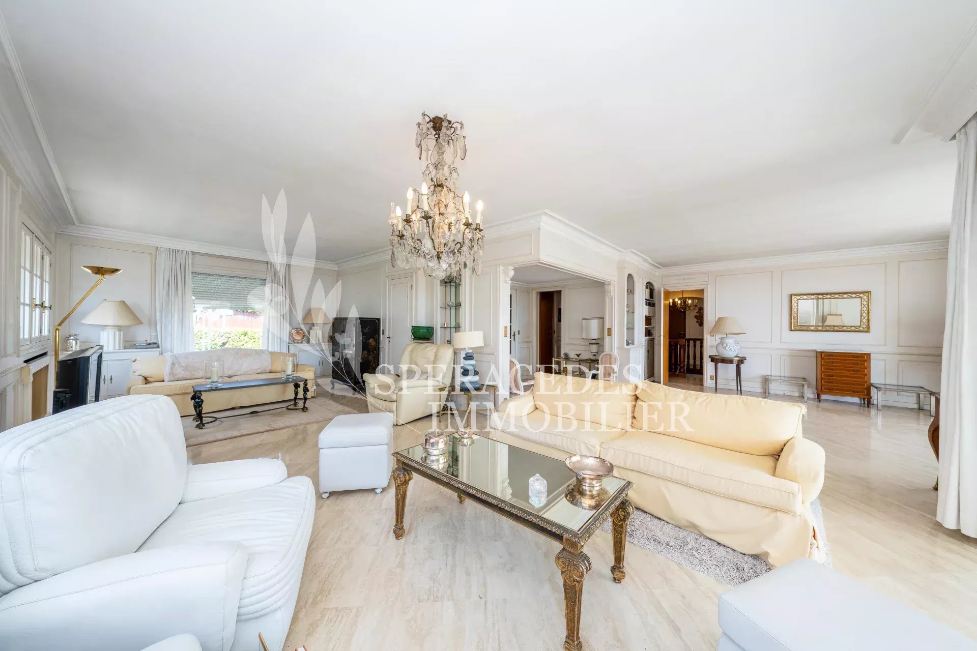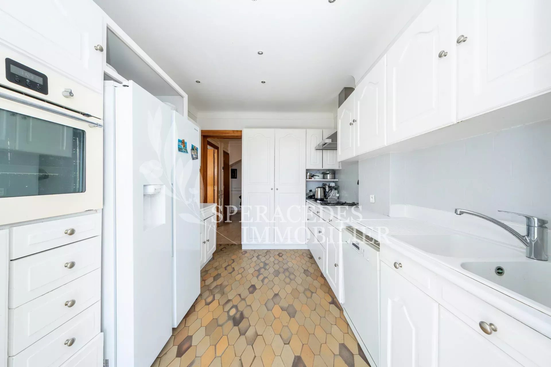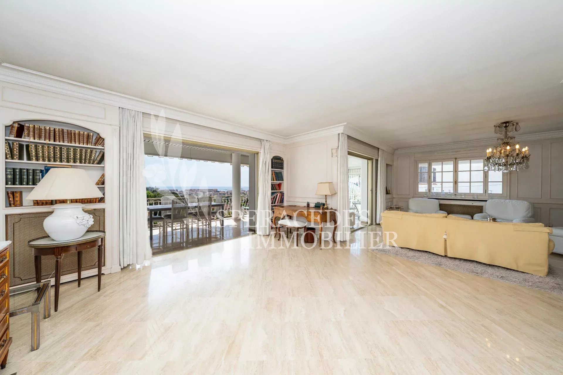 Cannes, dans un environnement calme et résidentiel, cette élégante villa exposée plein sud bénéficie d’une superbe vue sur la mer et l’Estérel. D’une superficie totale d’environ 320 m², incluant une terrasse fermée baignée de soleil d'environ 34 m² avec cheminée, la propriété se compose d’une habitation principale ainsi que de trois appartements indépendants. La partie principale propose, au rez-de-chaussée, un vaste et lumineux séjour de 65 m², une cuisine indépendante, deux chambres, trois salles de bains et une salle de douche. Une troisième chambre peut facilement être aménagée. Au rez-de-jardin, un séjour avec cheminée, une cuisine indépendante, une chambre et une salle de bains, l’ensemble s’ouvrant sur une grande terrasse avec accès direct à l’espace piscine. Trois studios indépendants complètent le bien. À l’extérieur, le terrain de 1 144 m² offre de beaux espaces, une piscine au sel de 12,5 x 5,5 m ainsi qu’un espace pool house. Plusieurs places de stationnement, un abri voiture d’environ 40 m² et un vaste sous-sol d’environ 186 m² viennent parfaire l’ensemble. Le chauffage et l’eau chaude sont assurés par une pompe à chaleur. Cette propriété offre de nombreuses possibilités, idéale en grande villa familiale, elle permet également de générer un rendement locatif grâce aux appartements existants, avec la possibilité d’aménager jusqu’à cinq logements indépendants au total.