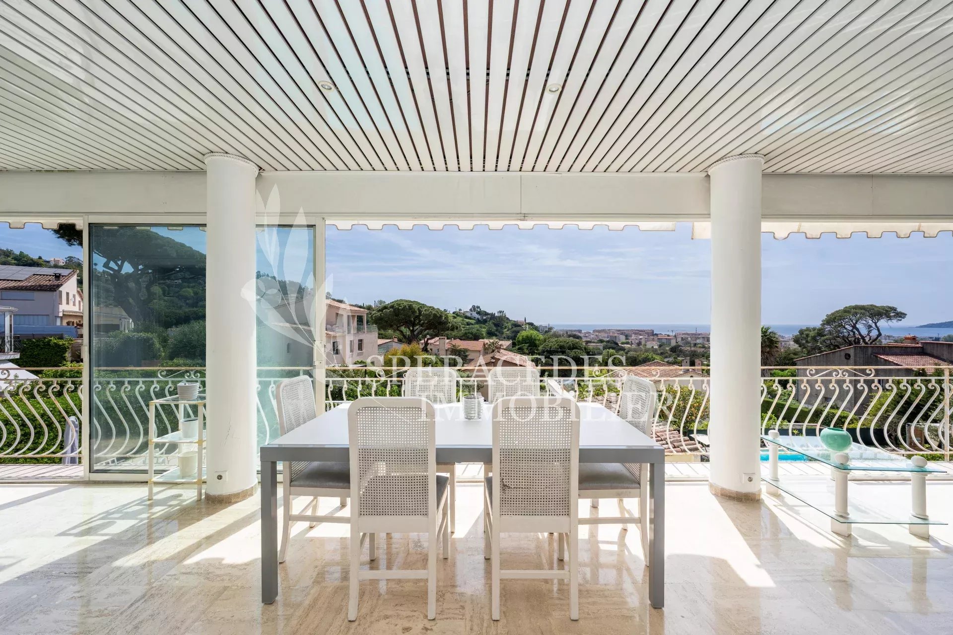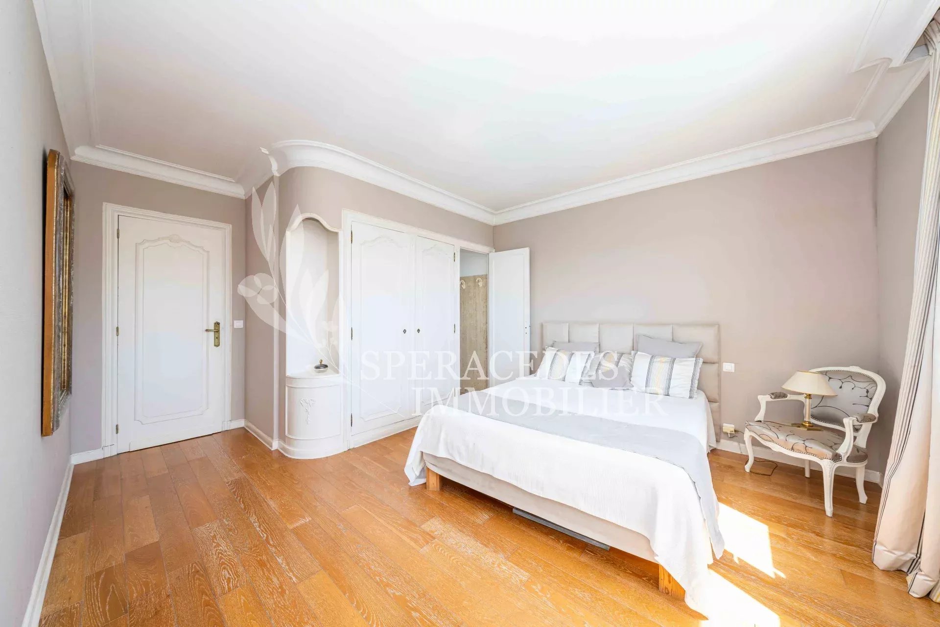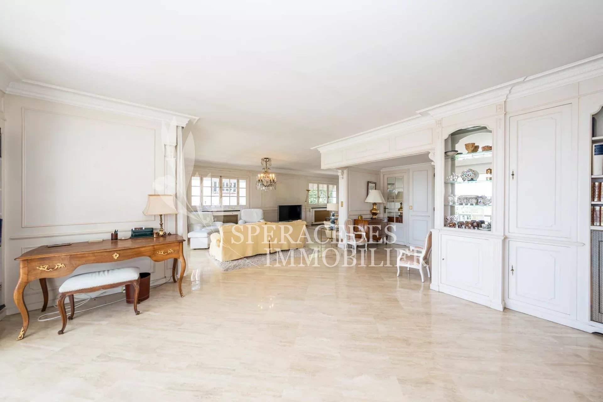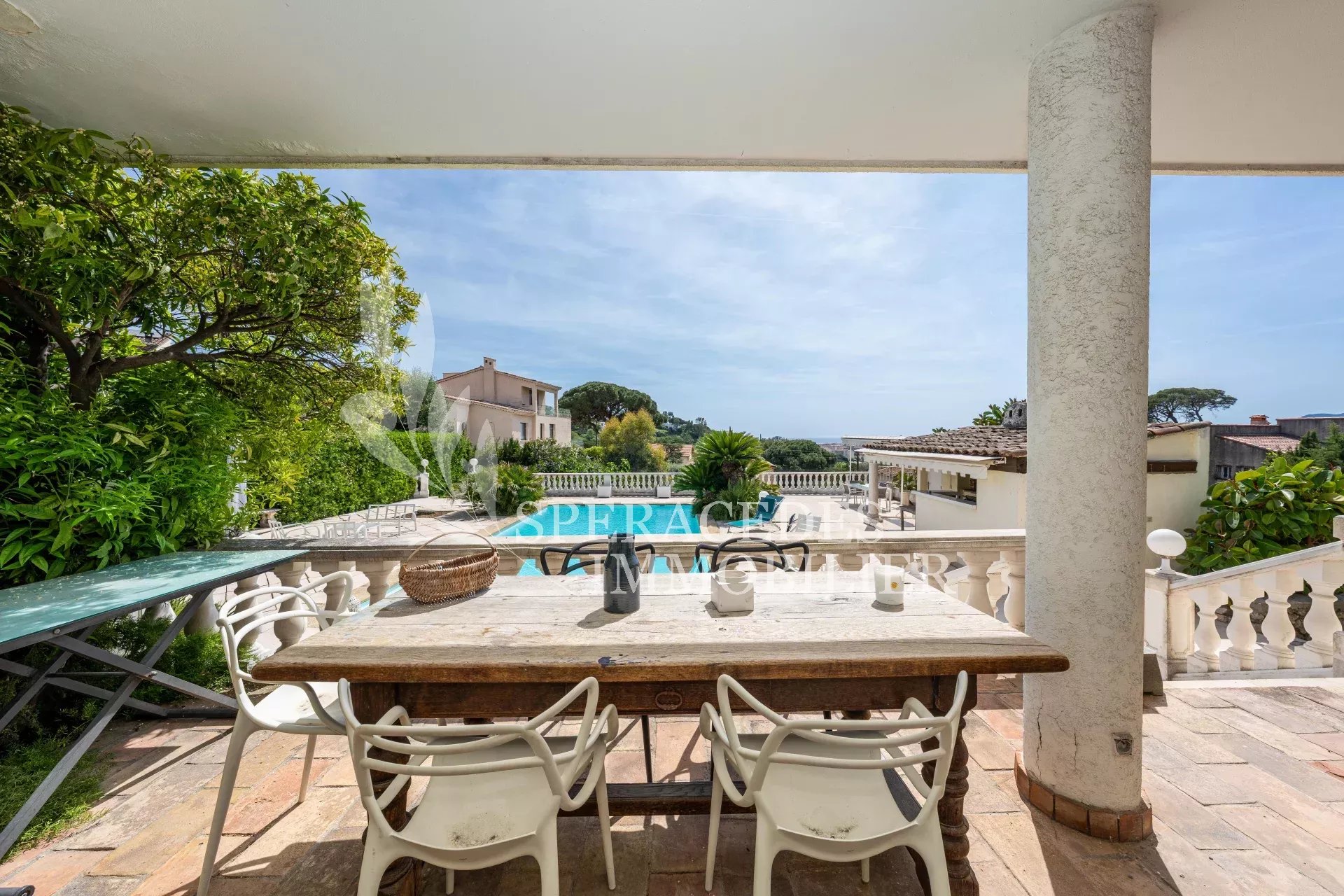Cannes, dans un environnement calme et résidentiel, cette élégante villa exposée plein sud bénéficie d’une superbe vue sur la mer et l’Estérel. D’une superficie totale d’environ 320 m², incluant une terrasse fermée baignée de soleil d'environ 34 m² avec cheminée, la propriété se compose d’une habitation principale ainsi que de trois appartements indépendants. La partie principale propose, au rez-de-chaussée, un vaste et lumineux séjour de 65 m², une cuisine indépendante, deux chambres, trois salles de bains et une salle de douche. Une troisième chambre peut facilement être aménagée. Au rez-de-jardin, un séjour avec cheminée, une cuisine indépendante, une chambre et une salle de bains, l’ensemble s’ouvrant sur une grande terrasse avec accès direct à l’espace piscine. Trois studios indépendants complètent le bien. À l’extérieur, le terrain de 1 144 m² offre de beaux espaces, une piscine au sel de 12,5 x 5,5 m ainsi qu’un espace pool house. Plusieurs places de stationnement, un abri voiture d’environ 40 m² et un vaste sous-sol d’environ 186 m² viennent parfaire l’ensemble. Le chauffage et l’eau chaude sont assurés par une pompe à chaleur. Cette propriété offre de nombreuses possibilités, idéale en grande villa familiale, elle permet également de générer un rendement locatif grâce aux appartements existants, avec la possibilité d’aménager jusqu’à cinq logements indépendants au total.