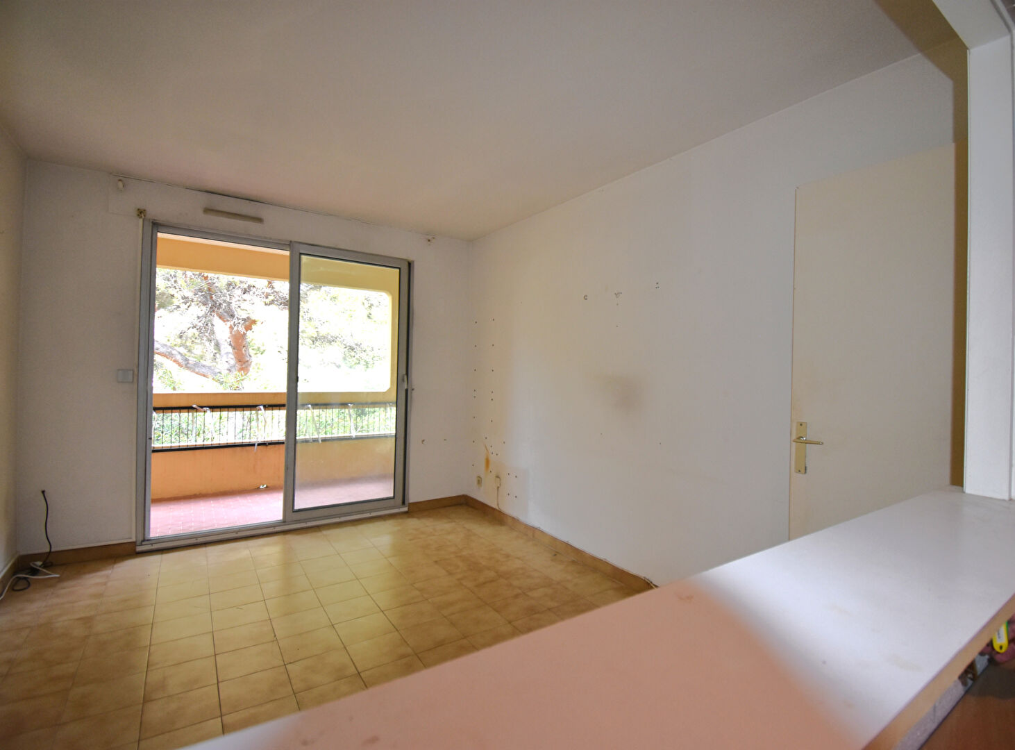 SAINT RAPHAEL BOULOURIS. Situation privilégiée à 100 mètres des plages. Dans la verdure et à proximité immédiate des commerces. Appartement de 2 pièces donnant sur 2 terrasses avec vue sur le parc arboré. Il se compose d'une entrée, d'une cuisine américaine, d'un salon donnant sur terrasse, d'une chambre avec accés terrasse également, d'une salle de bains et d'un wc indépendant. L'appartement est vendu avec un parking privé dans la résidence. A voir rapidement. Prévoir travaux de remise en état...