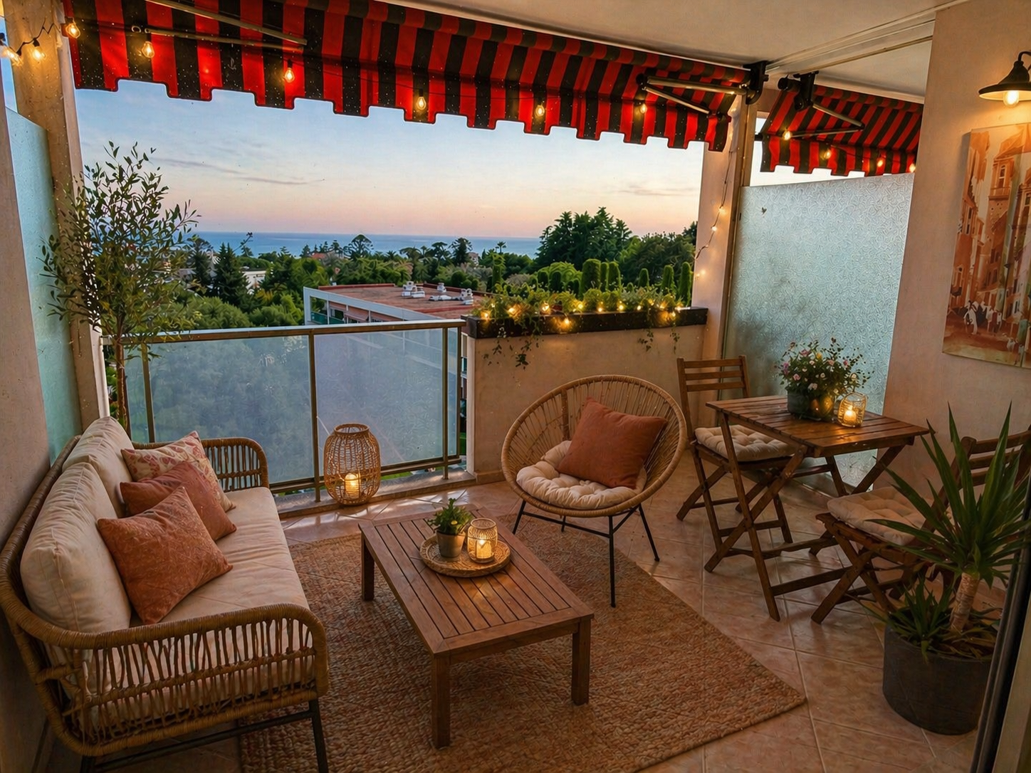 Cet espace s'ouvre sur une magnifique terrasse profonde de 8 m², exposée plein sud, permettant de partager de vrais moments à 4 ou 6 personnes, avec une vue dégagée sur la mer et les jardins de la résidence.