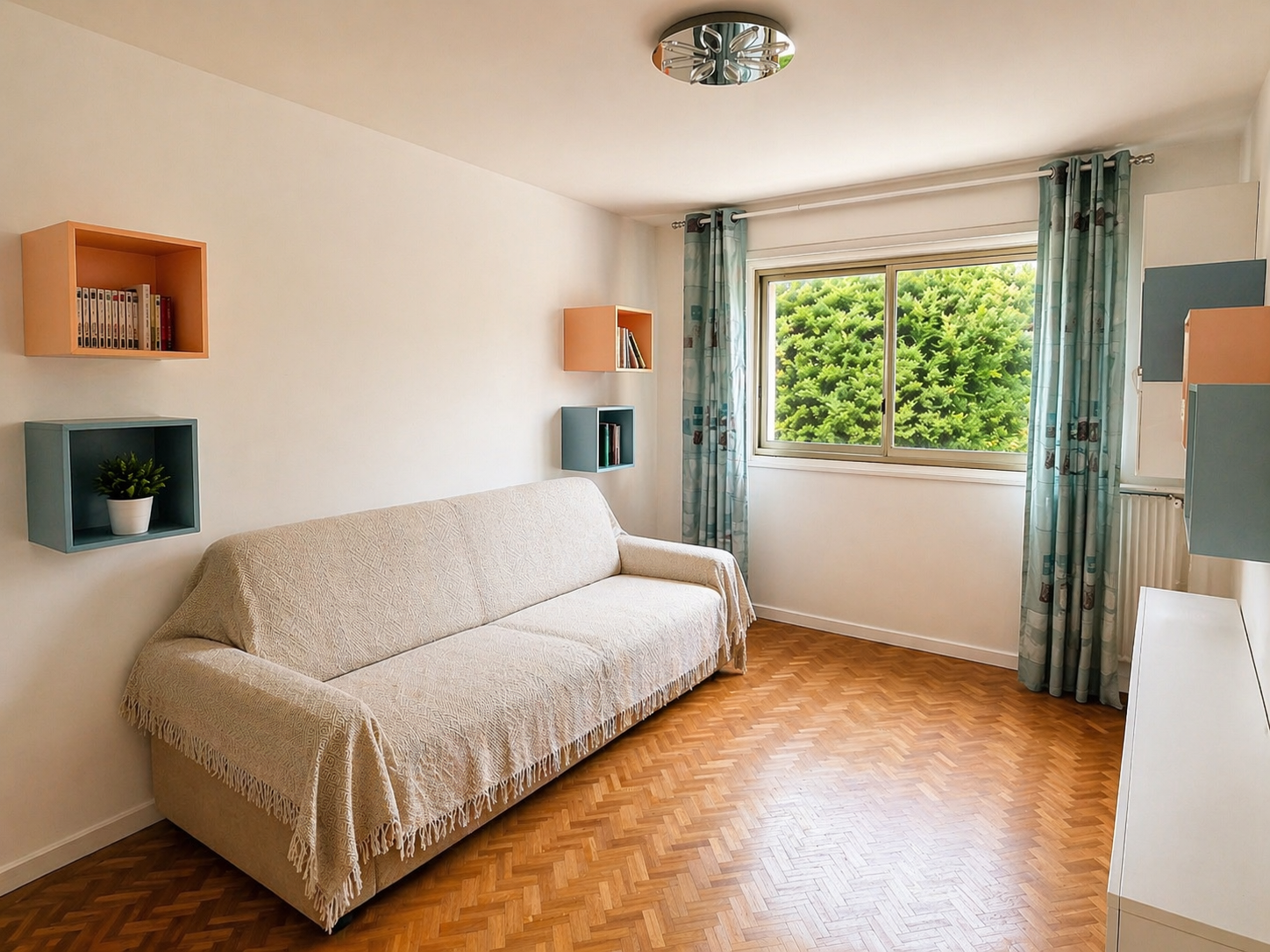 L'appartement bénéficie d'une configuration traversante particulièrement agréable, offrant à l'arrière deux chambres au calme, prolongées par une seconde terrasse de 7,65 m². Une pièce supplémentaire attenante, actuellement aménagée en dressing / buanderie, peut facilement être repensée en troisième chambre ou bureau selon vos besoins.