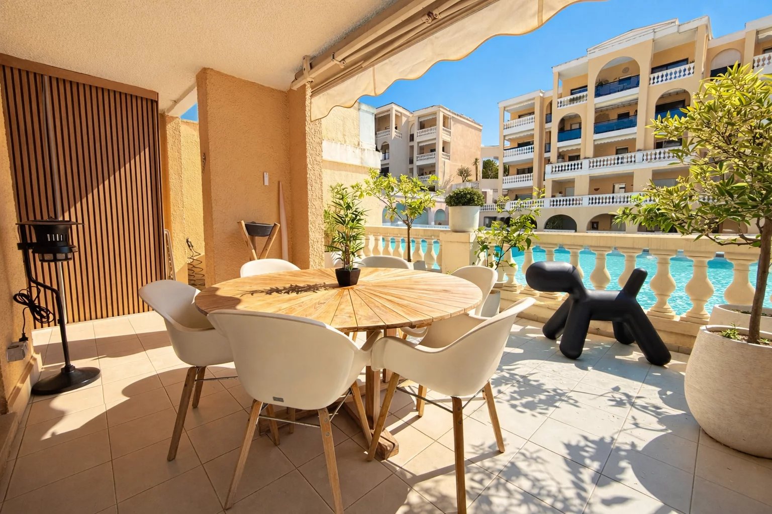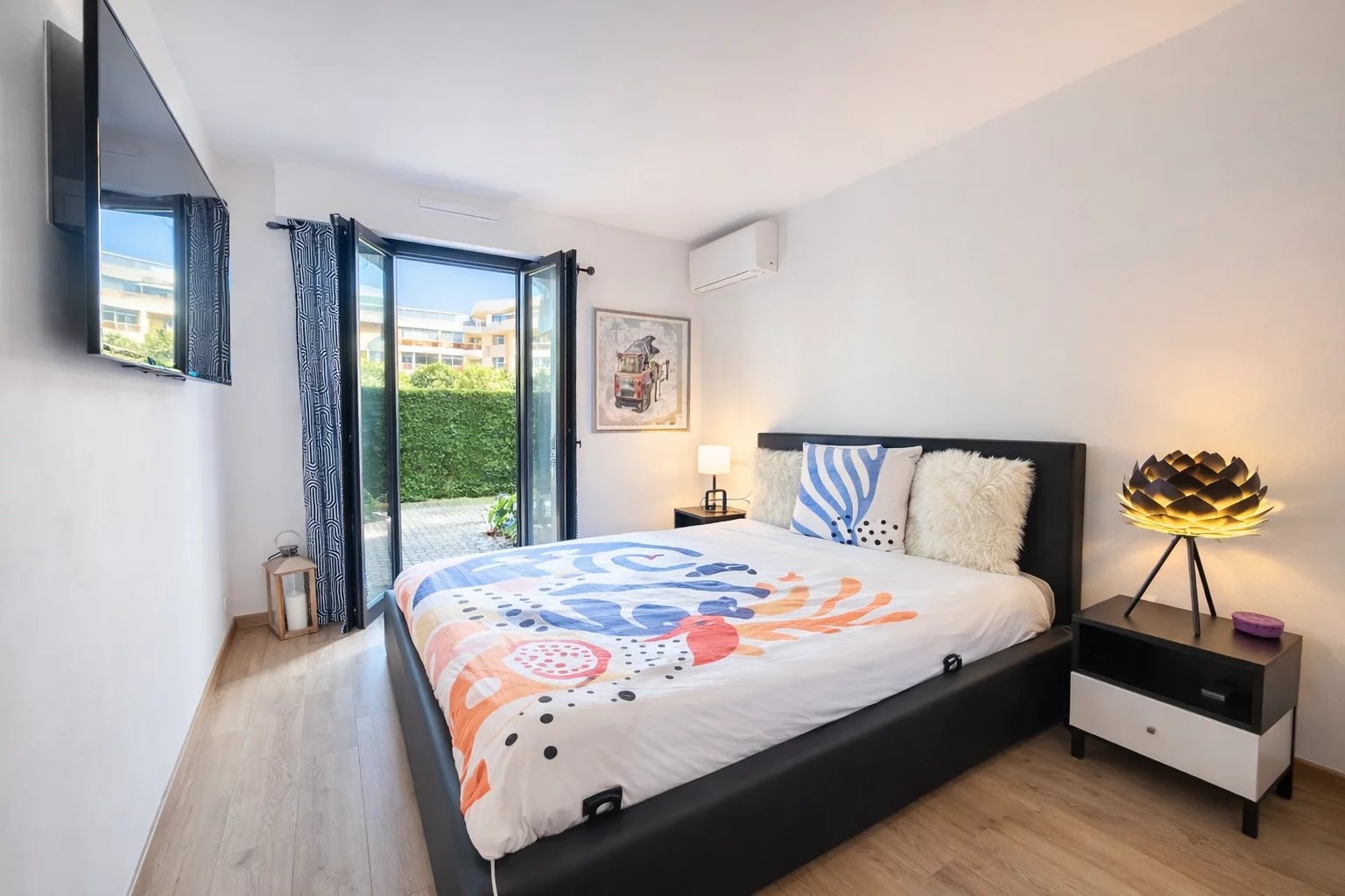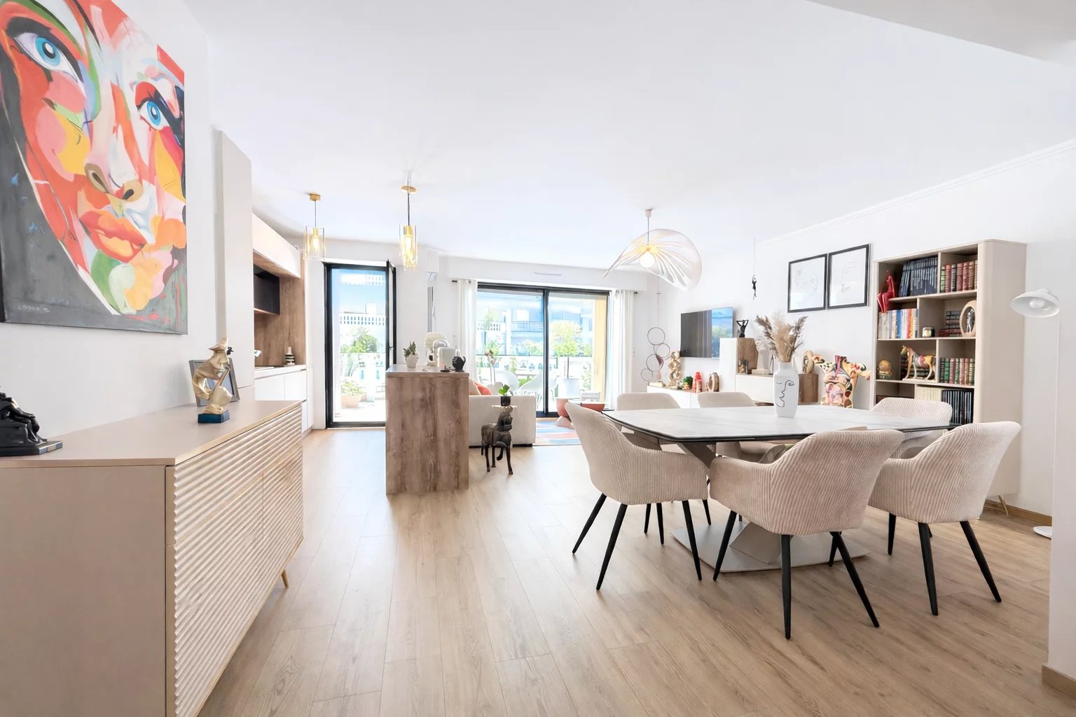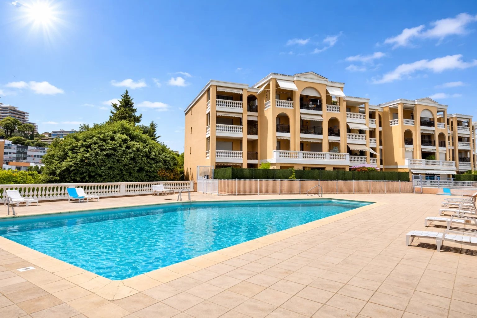 Co exclusivité Au cœur d’une résidence de standing avec piscine, découvrez ce superbe 4 pièces entièrement rénové en rez-de-jardin, offrant un cadre de vie unique. D’une surface de 91,62 m² loi Carrez, complété par une loggia de 4,08 m² aménagée en bureau, cet appartement propose une distribution idéale et des prestations soignées. Il se compose de trois chambres avec placards, dont une chambre maître en suite avec sa salle de douche et son WC, ainsi que d’une seconde salle de douche indépendante et d’un WC indépendant. La cuisine entièrement équipée s’intègre harmonieusement à l’espace de vie. Les chambres ouvrent sur un jardin privatif de 36 m², offrant calme et intimité. Le salon lumineux aux prestations élégantes se prolonge par une terrasse de 17,30 m², véritable pièce de vie extérieure, bénéficiant d’une vue exceptionnelle sur le lagon qui traverse la résidence entre les deux bâtiments, créant une atmosphère rare et apaisante. La résidence propose également une agréable piscine, idéale pour profiter pleinement des beaux jours. Appartement clé en main, idéal pour une famille en résidence principale ou secondaire. Vendu avec un garage et une cave. Un bien coup de cœur au Cannet, à visiter sans tarder.