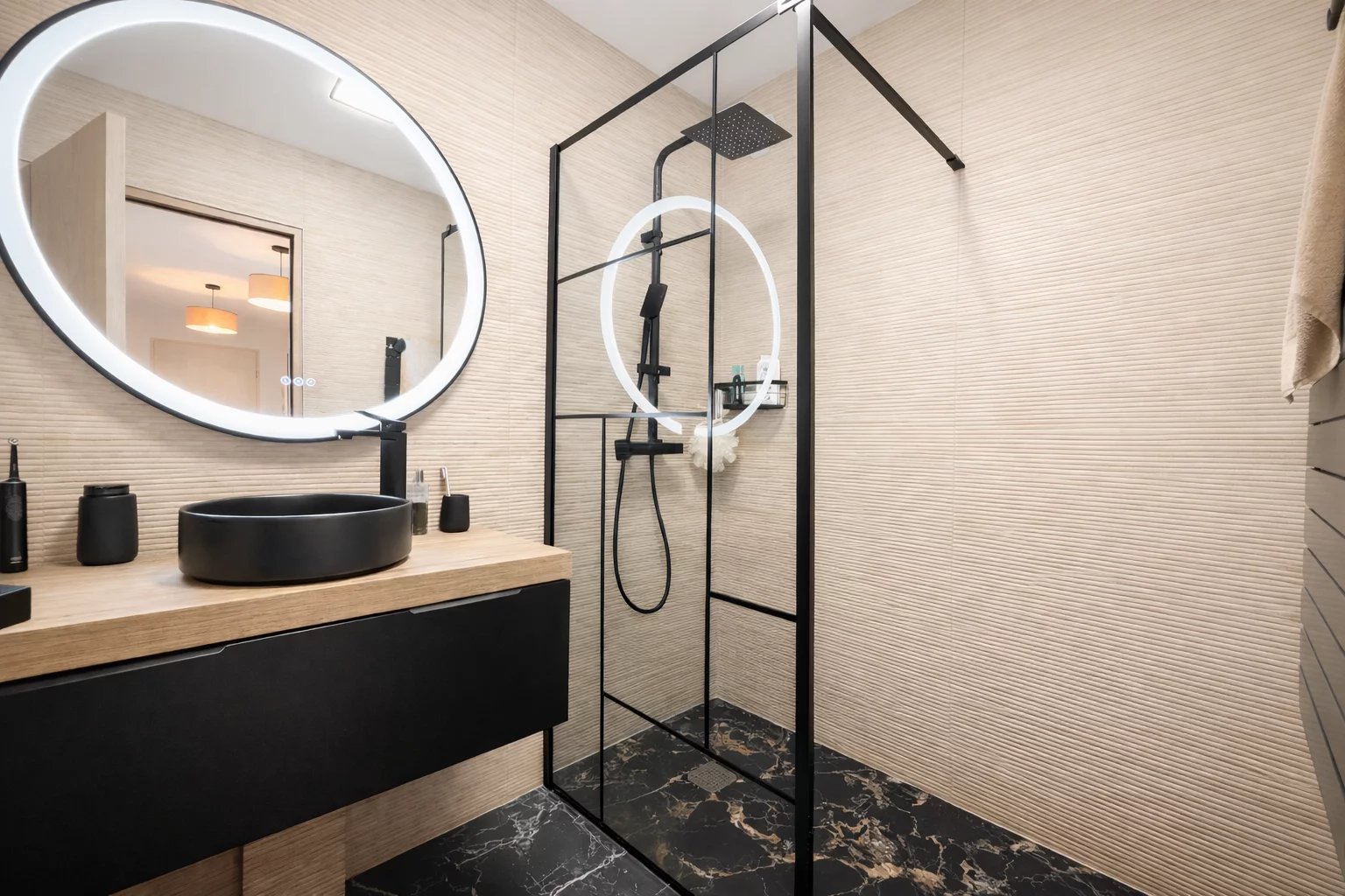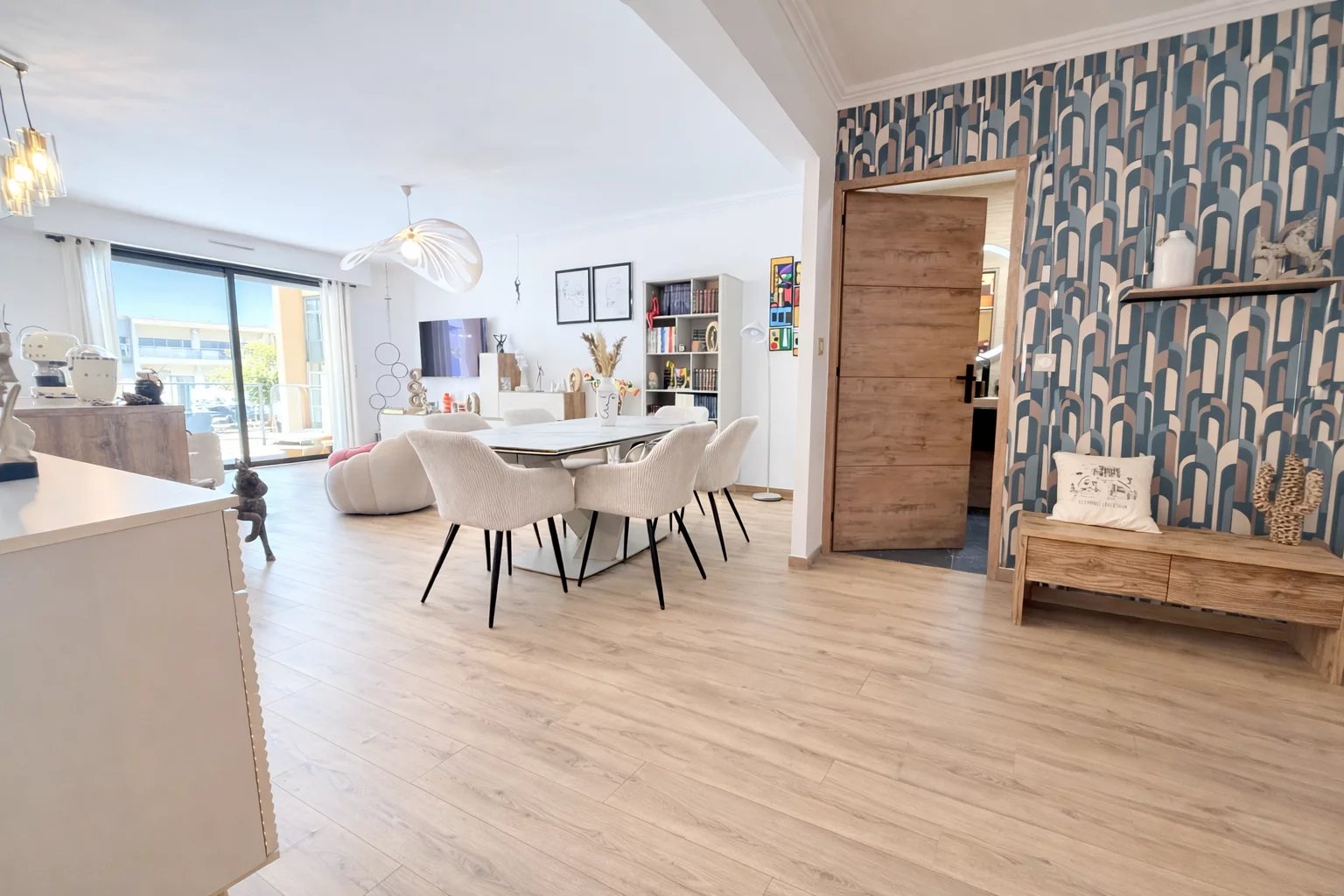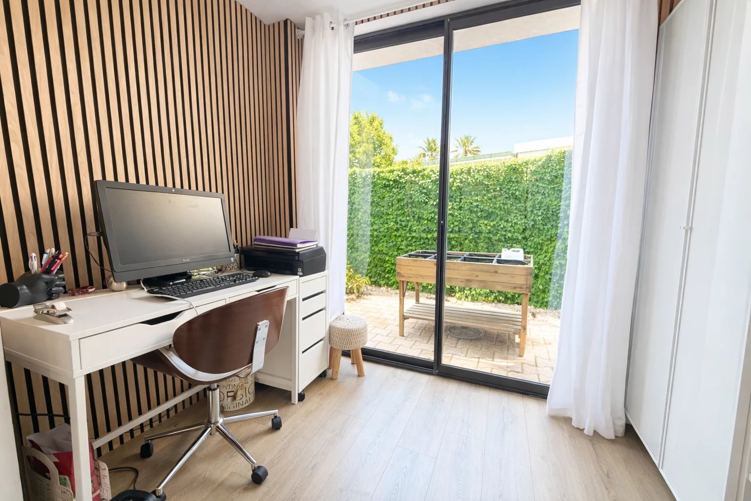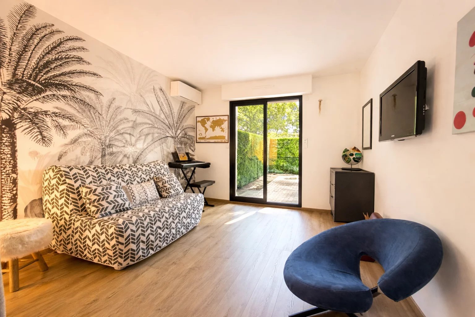 Co exclusivité Au cœur d’une résidence de standing avec piscine, découvrez ce superbe 4 pièces entièrement rénové en rez-de-jardin, offrant un cadre de vie unique. D’une surface de 91,62 m² loi Carrez, complété par une loggia de 4,08 m² aménagée en bureau, cet appartement propose une distribution idéale et des prestations soignées. Il se compose de trois chambres avec placards, dont une chambre maître en suite avec sa salle de douche et son WC, ainsi que d’une seconde salle de douche indépendante et d’un WC indépendant. La cuisine entièrement équipée s’intègre harmonieusement à l’espace de vie. Les chambres ouvrent sur un jardin privatif de 36 m², offrant calme et intimité. Le salon lumineux aux prestations élégantes se prolonge par une terrasse de 17,30 m², véritable pièce de vie extérieure, bénéficiant d’une vue exceptionnelle sur le lagon qui traverse la résidence entre les deux bâtiments, créant une atmosphère rare et apaisante. La résidence propose également une agréable piscine, idéale pour profiter pleinement des beaux jours. Appartement clé en main, idéal pour une famille en résidence principale ou secondaire. Vendu avec un garage et une cave. Un bien coup de cœur au Cannet, à visiter sans tarder.