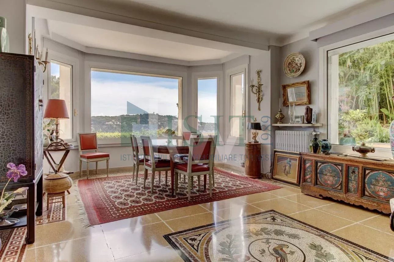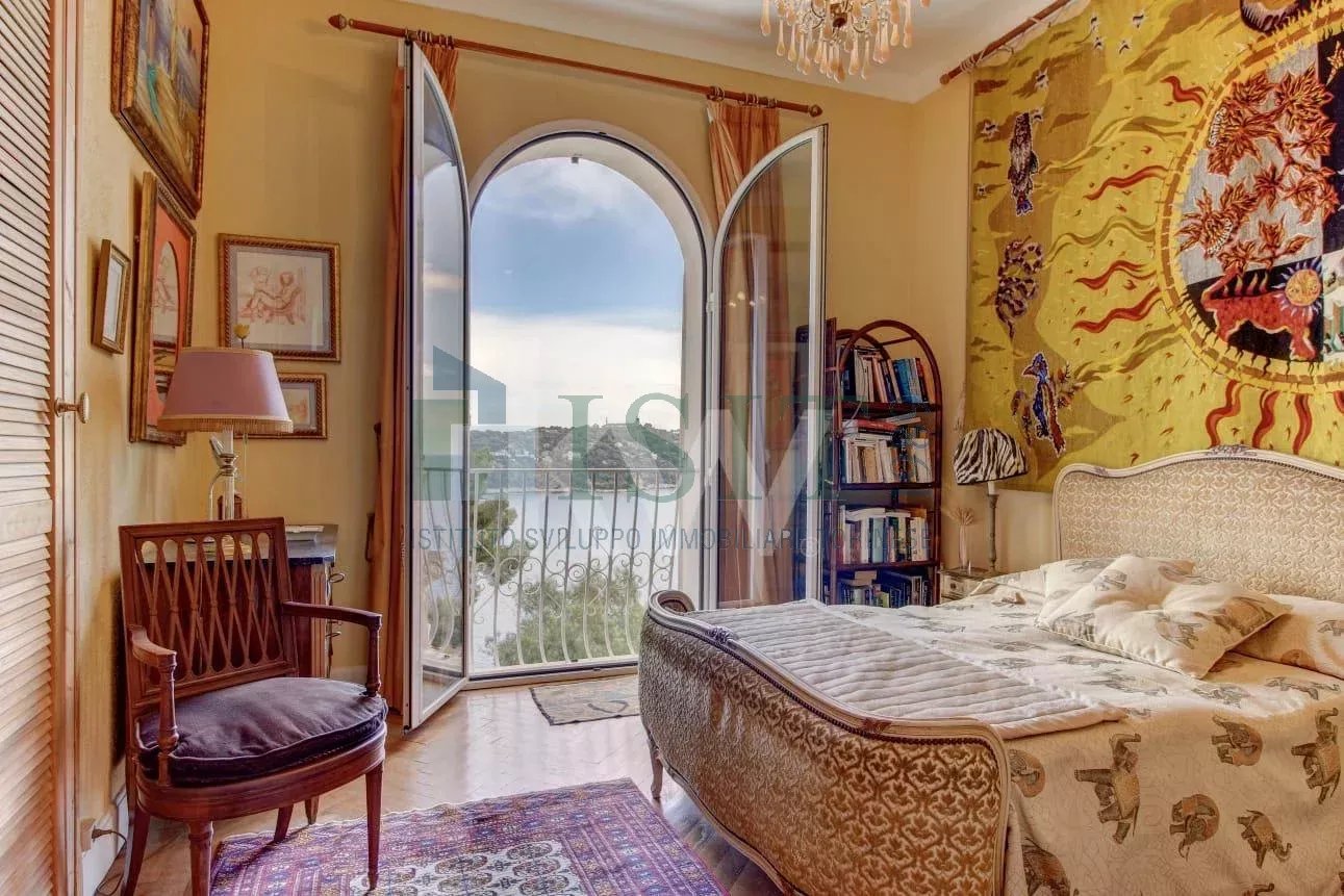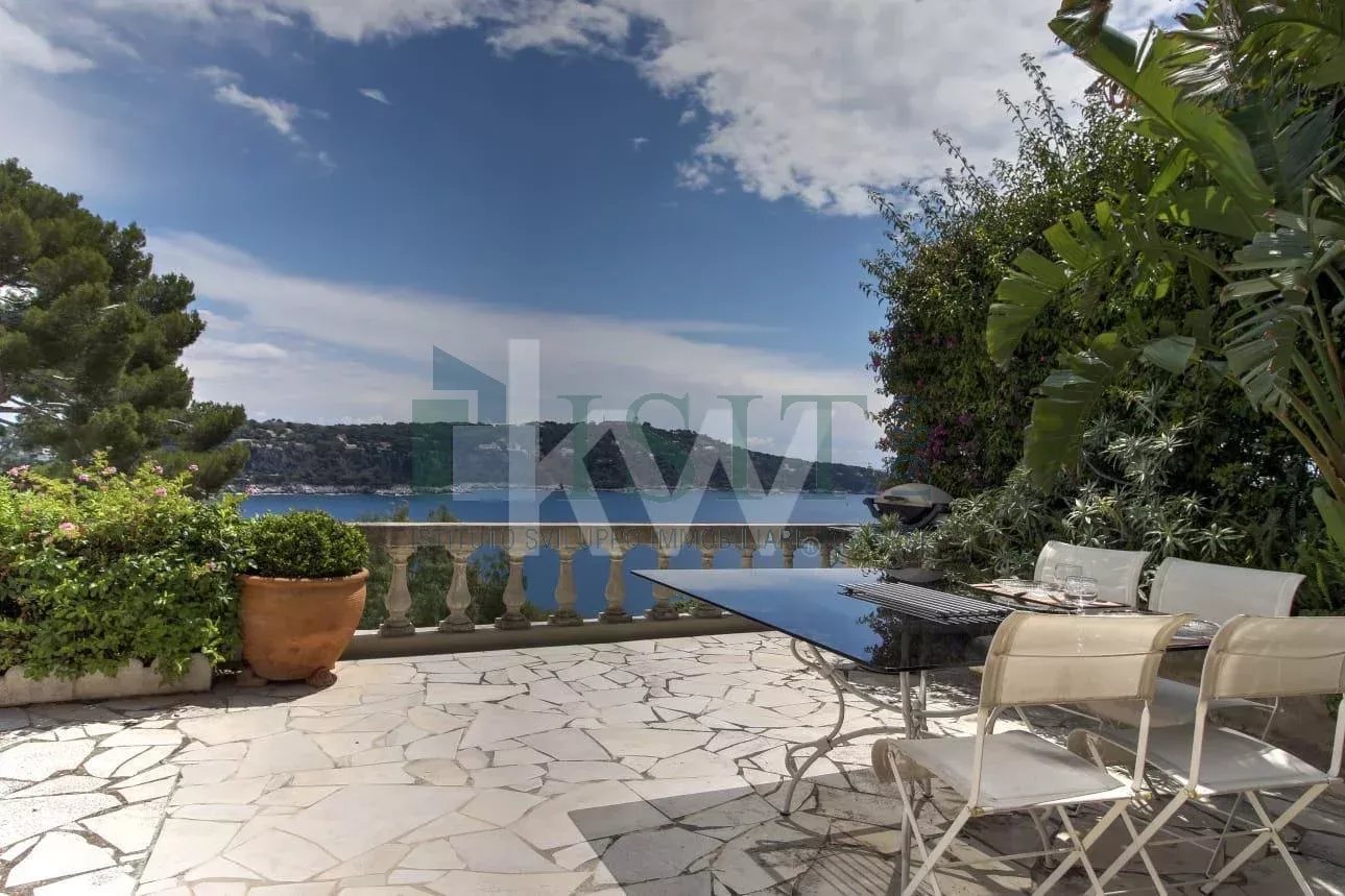 VILLEFRANCHE-SUR-MER – Cap de Nice – Hespérides – Élégante villa de 200 m² du début de siècle située dans une impasse privée avec grande terrasse et vue mer panoramique sur la baie de Villefranche et le Cap Ferrat. Dans le quartier très recherché du Cap de Nice / Mont Boron / Hespérides, cette villa bourgeoise de caractère bénéficie d’un emplacement exceptionnel en front de mer, en première ligne, offrant une vue mer panoramique imprenable. Développant environ 200 m² habitables sur un terrain de 315 m², la propriété se répartit sur deux niveaux et propose de beaux volumes. Un élégant escalier mène à une belle entrée, apportant immédiatement du cachet et du caractère dès l’arrivée dans la villa. Elle se compose d’un vaste séjour lumineux avec vue mer, d’une cuisine entièrement équipée avec accès direct à une terrasse, ainsi que de quatre chambres avec dressings. Toutes les pièces principales bénéficient d’un panorama spectaculaire sur la mer, renforçant le caractère unique du bien. La villa dispose également d’espaces extérieurs agréables avec balcons de style Belle Époque. Avec un restyling, elle pourra être remise au goût du jour pour en faire un véritable bijou. Deux dépendances et un garage viennent compléter l’ensemble. Idéalement située, la propriété offre un accès rapide aux plages, aux commerces et aux principales infrastructures, tout en garantissant un cadre verdoyant et privilégié. La propriété offre la possibilité de créer une piscine à débordement hors sol avec vue mer sur la terrasse, ainsi que de très beaux volumes intérieurs.