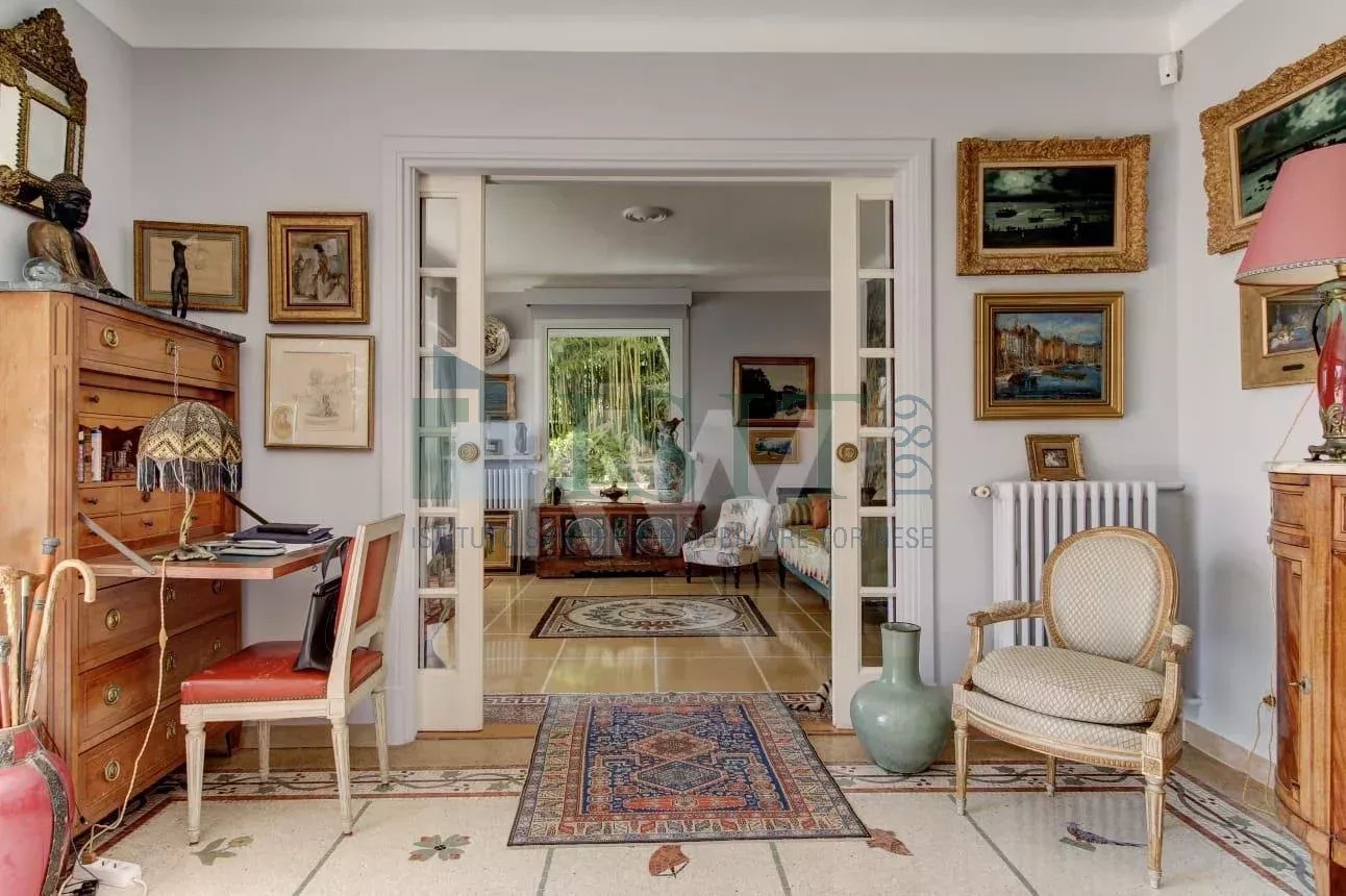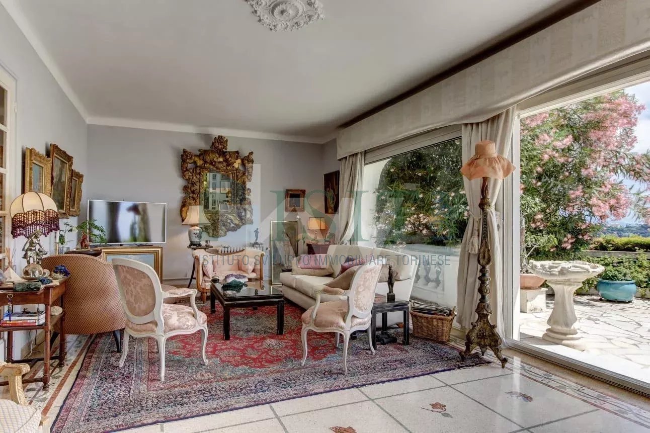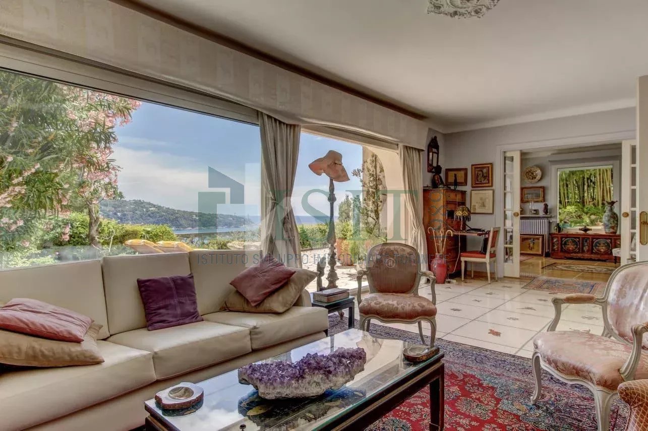 VILLEFRANCHE-SUR-MER – Cap de Nice – Hespérides – Élégante villa de 200 m² du début de siècle située dans une impasse privée avec grande terrasse et vue mer panoramique sur la baie de Villefranche et le Cap Ferrat. Dans le quartier très recherché du Cap de Nice / Mont Boron / Hespérides, cette villa bourgeoise de caractère bénéficie d’un emplacement exceptionnel en front de mer, en première ligne, offrant une vue mer panoramique imprenable. Développant environ 200 m² habitables sur un terrain de 315 m², la propriété se répartit sur deux niveaux et propose de beaux volumes. Un élégant escalier mène à une belle entrée, apportant immédiatement du cachet et du caractère dès l’arrivée dans la villa. Elle se compose d’un vaste séjour lumineux avec vue mer, d’une cuisine entièrement équipée avec accès direct à une terrasse, ainsi que de quatre chambres avec dressings. Toutes les pièces principales bénéficient d’un panorama spectaculaire sur la mer, renforçant le caractère unique du bien. La villa dispose également d’espaces extérieurs agréables avec balcons de style Belle Époque. Avec un restyling, elle pourra être remise au goût du jour pour en faire un véritable bijou. Deux dépendances et un garage viennent compléter l’ensemble. Idéalement située, la propriété offre un accès rapide aux plages, aux commerces et aux principales infrastructures, tout en garantissant un cadre verdoyant et privilégié. La propriété offre la possibilité de créer une piscine à débordement hors sol avec vue mer sur la terrasse, ainsi que de très beaux volumes intérieurs.