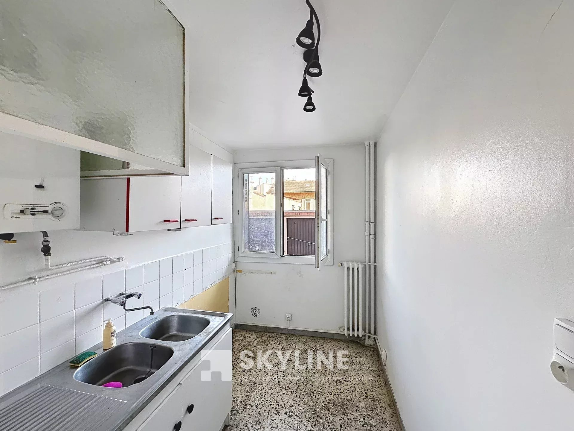 Skyline Real Estate vous propose à la vente cet appartement T2 en rez-de-chaussée de 44,04m2 avec une cave de 5m2 de plain-pied dans un immeuble en bon état de 1959, donnant sur une cour intérieure au calme. Appartement très lumineux avec de nombreuses fenêtres en PVC double vitrage, exposition Sud-Est, à rénover avec possibilité d’ouvrir la cuisine de 6,2 m2 sur le séjour de 21,62 m2, grande chambre de 12,37m2 avec deux grands placards, salle d’eau avec cabine de douche et WC de 3,85 m2. Accès au local à vélo de l’immeuble. Appartement vendu libre de toute occupation, parfait pour investisseur avec un potentiel locatif à 760€ CC. Bien situé à quelques mètres du métro, du parc, des commerces. Prix de vente : 130 000 FAI Charges mensuelles : 112€ (chauffage et eau froide) DPE : F (339kWh/m²/an) GES : F (75kgCO₂/m²/an) Taxe foncière : 1094 Honoraires à la charge exclusive du vendeur. Contactez notre agent Louis au 06 28 78 81 25 pour plus de renseignements ou pour organiser une visite. Les informations sur les risques auxquels ce bien est exposé sont disponibles sur le site Géorisques : www.georisques.gouv.fr La présente annonce immobilière a été rédigée sous la responsabilité de Louis Camacho Carrel, mandataire indépendant en immobilier (sans détention de fonds), agent commercial de la SAS SKYLINE REAL ESTATE, immatriculé au RSAC de Marseille sous le numéro 942 572 074, agissant pour le compte de la SAS SKYLINE REAL ESTATE, titulaire de la carte professionnelle de transaction immobilière délivrée par la CCI de Marseille-Provence.