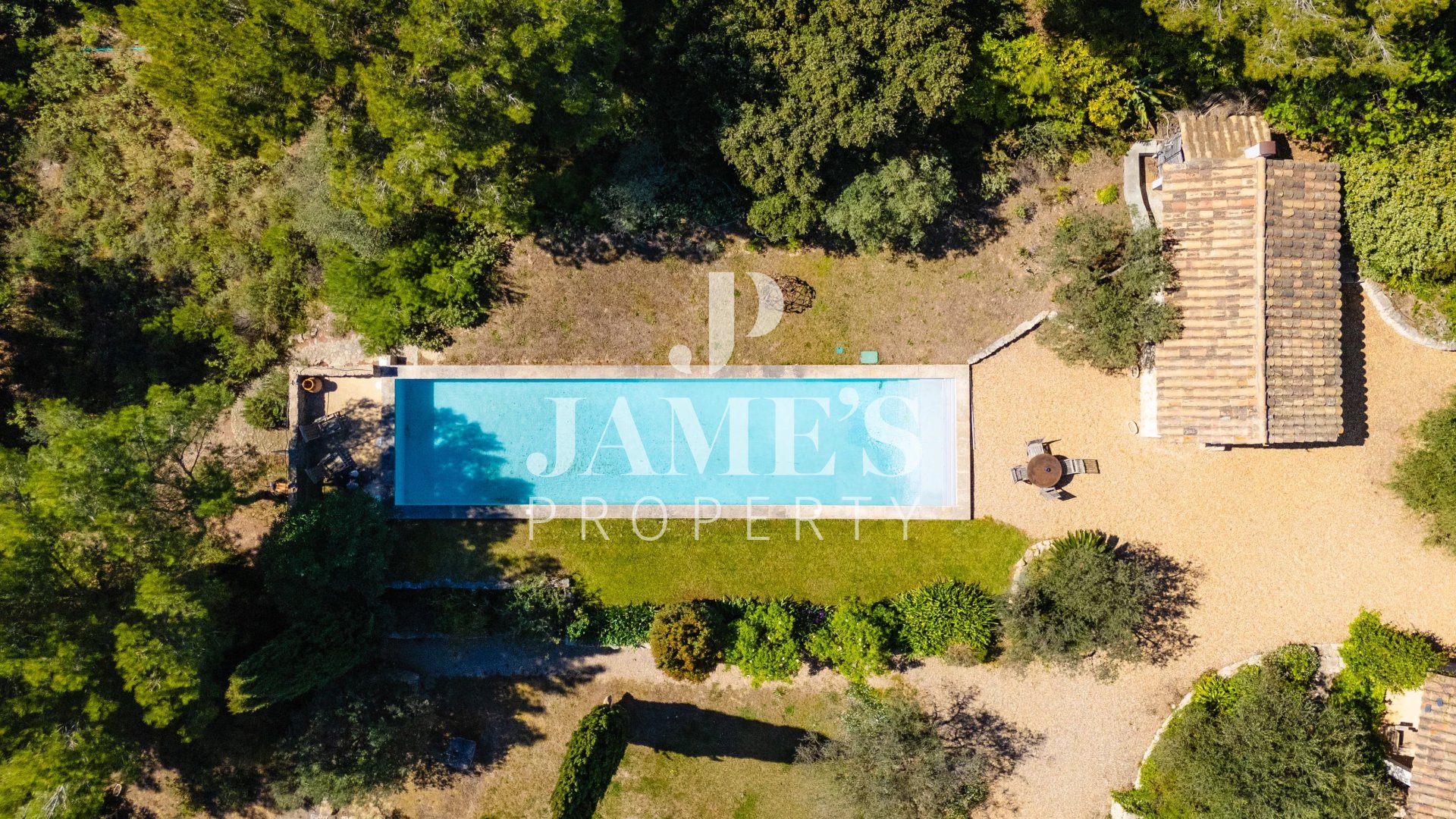 Les extérieurs ont été pensés pour profiter pleinement du climat méditerranéen, avec une superbe piscine chauffée de 18 x 4 mètres, idéale pour les longues journées d'été, ainsi qu'un charmant pool house en pierre, parfait pour recevoir en toute convivialité.