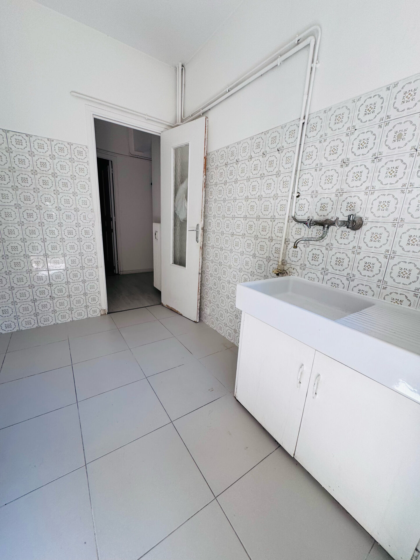 * d'une cuisine avec évier (à aménager) donnant sur balcon ensoleillé