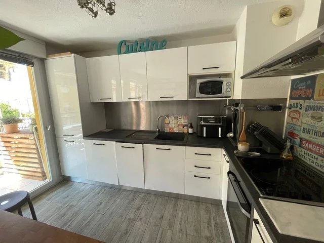 Rue des Orangers : Dans résidence standing de 2001, magnifique 2 pièces de 41m², terrasse sud de 10m², vue sur jardin de la copropriété et sur la place du marché St Roch, parfait état, cuisine américaine équipée, double vitrage, calme, lumineux, clim dans le séjour et chambre, double vitrage, faibles charges. Possibilité d’acquérir un garage de plain-pied avec borne de recharge pour voiture électrique au prix de 25000 €. Proche commodités et tram. Les informations sur les risques auxquels ce bien est exposé sont disponible sur le site Géorisques : géorisques.gouv.fr