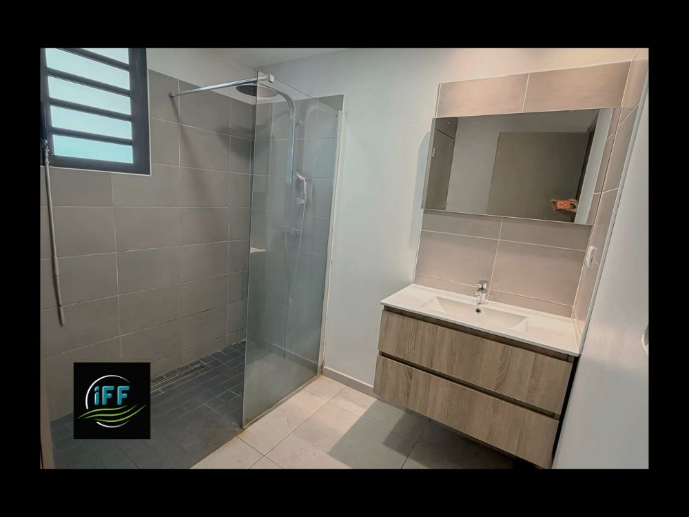 Il comprend une entrée, un beau séjour donnant sur une varangue de 18.97.m2, une cuisine aménagée et équipée (plaque de cuisson 4 feux et hotte), une chambre avec placard et une salle de bain avec douche, wc.