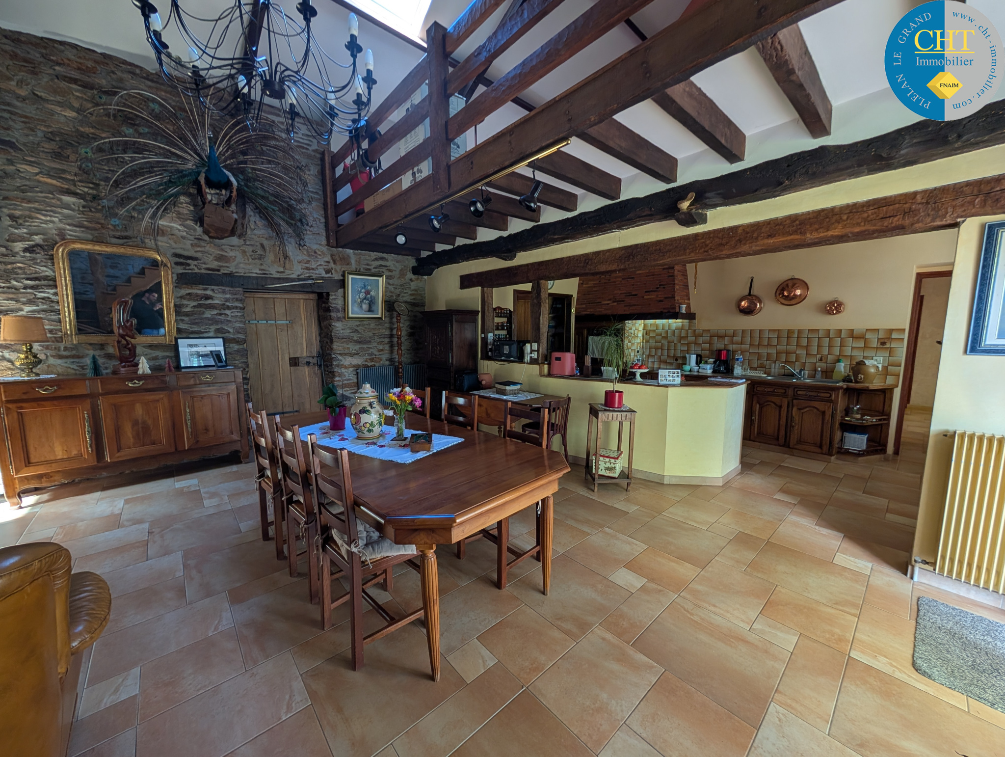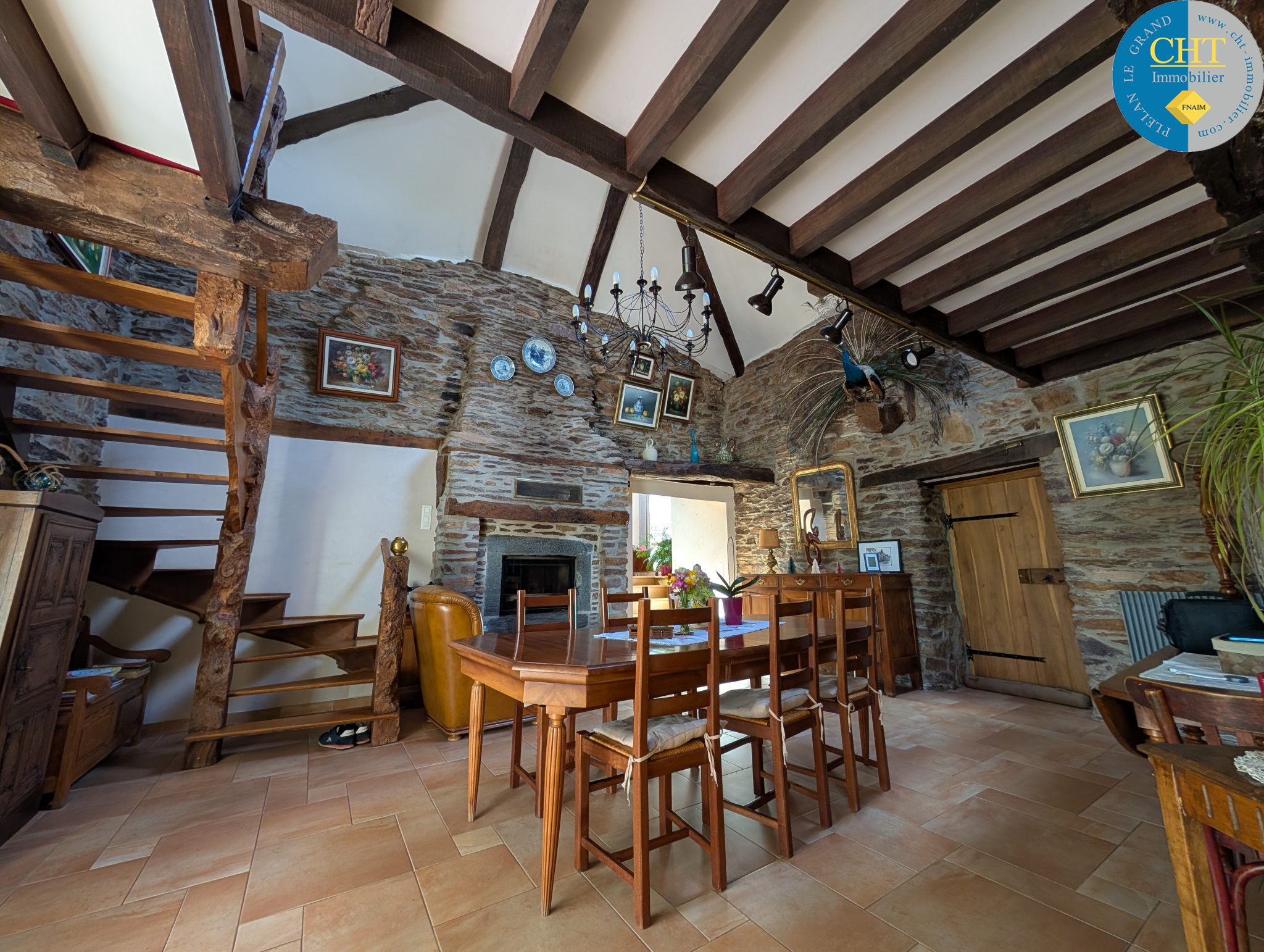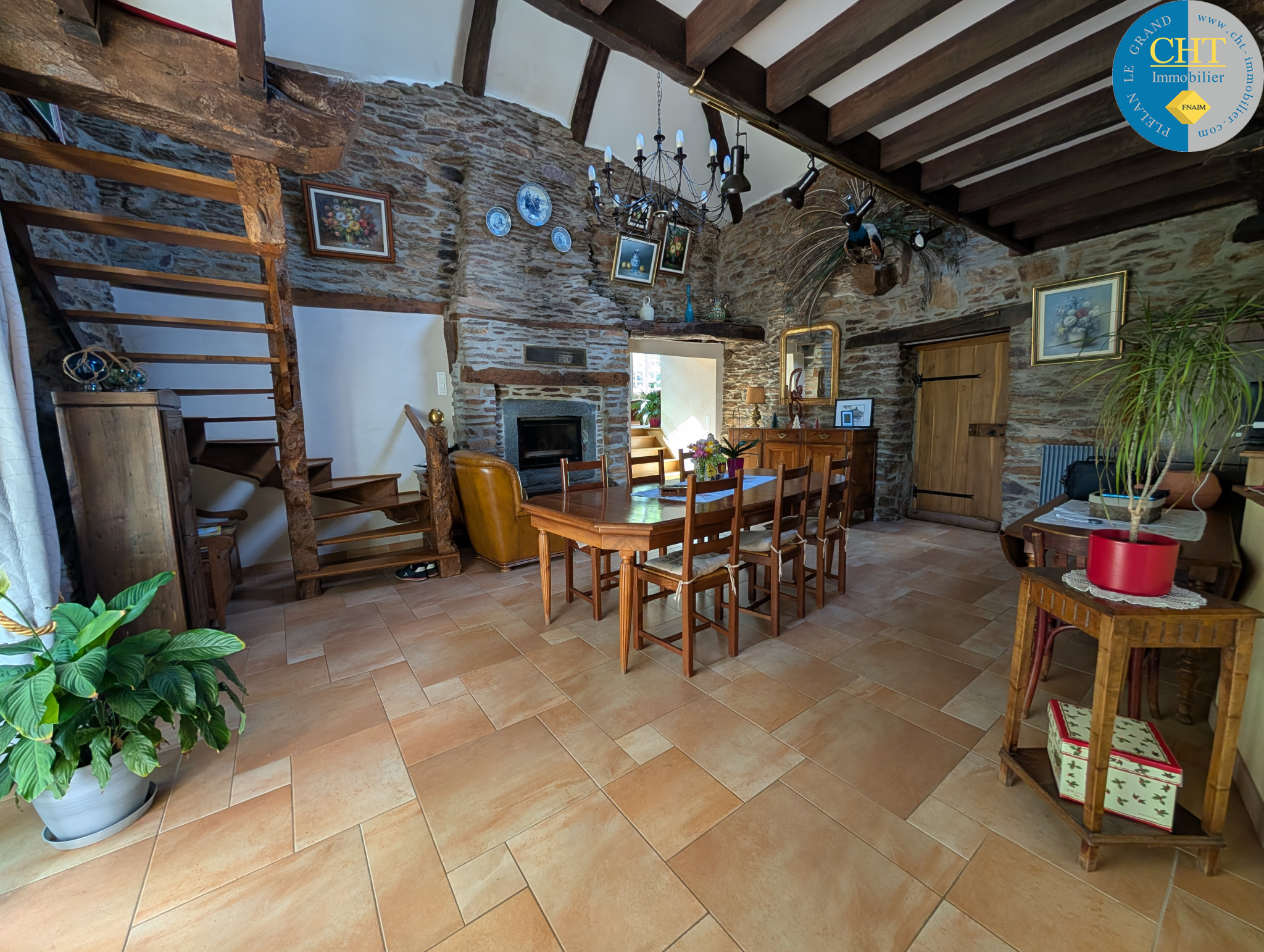 L'agence CHT IMMOBILIER est fière de vous présenter cette propriété de caractère, située au calme de la campagne de Guer, idéalement positionnée entre le centre-bourg et le secteur de Bellevue. Cette longère en pierre, véritable havre de paix, séduira les amoureux de grands espaces, de vieilles pierres et les projets en quête de nombreuses dépendances.