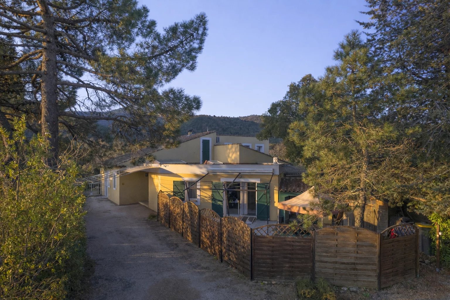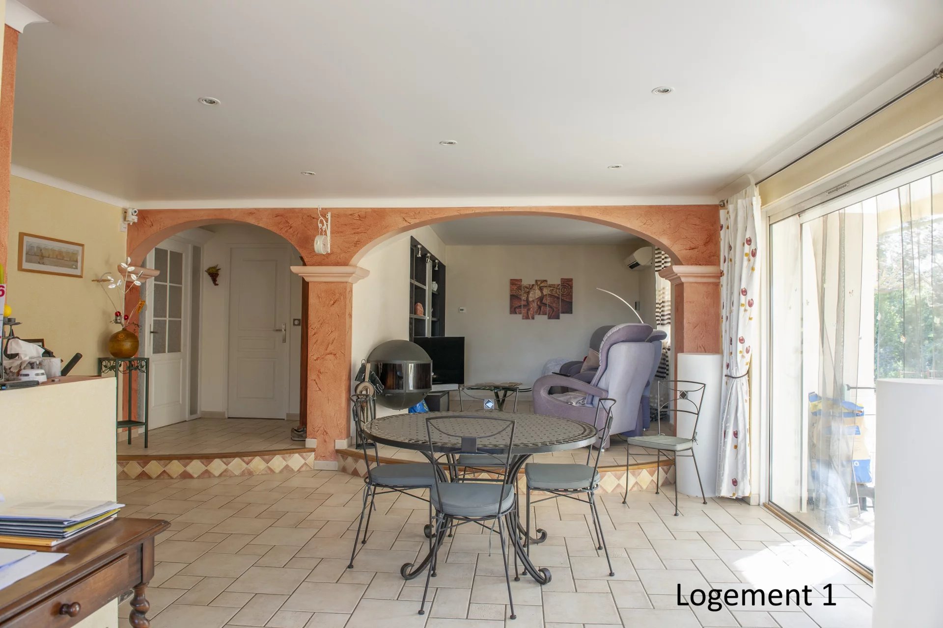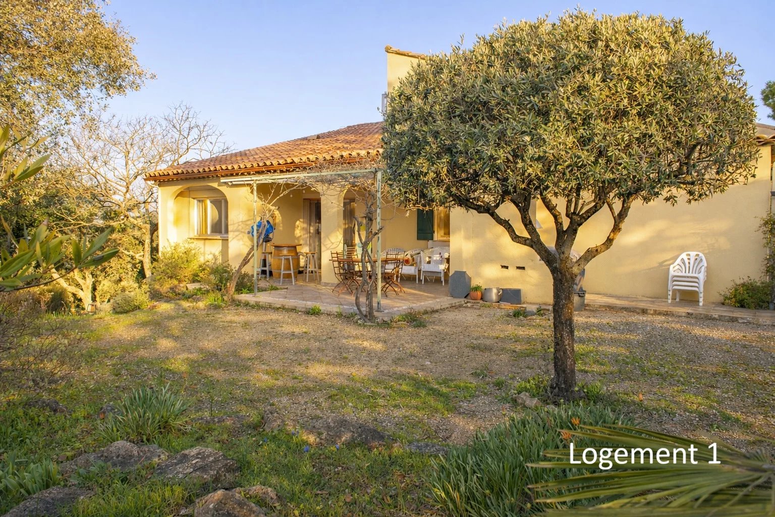Gonfaron – Propriété de caractère en hameau forestier privé Situé dans un environnement naturel préservé, le bien bénéficie d’un cadre résidentiel calme et sécurisé, avec accès à des équipements communs de qualité : deux piscines, un boulodrome et un espace de jeux. Implantée sur une parcelle privative d’environ 4 300 m², cette propriété développe une surface habitable totale d’environ 229 m², organisée en trois espaces distincts, offrant une grande polyvalence d’usage. La maison principale, d’une surface d’environ 146 m², se compose d’un espace de vie comprenant un salon/séjour et une cuisine indépendante, de trois chambres, d’un bureau, d’un dressing, d’une salle d’eau, d’une salle de bains et de deux WC. Un garage attenant d’environ 52 m² complète cet ensemble. Un logement indépendant de type T2, d’environ 38 m² avec extérieur privatif, permet d’envisager un usage locatif ou l’accueil d’un proche en toute autonomie. Une troisième unité d’environ 45 m², incluant une véranda et deux chambres, offre un potentiel complémentaire, pouvant être destinée à de l’hébergement ou à une exploitation locative. L’ensemble présente un fort potentiel pour un projet familial, une résidence principale avec dépendances ou un investissement locatif, dans un environnement naturel recherché sur la commune de Gonfaron. Bien rare à la vente, offrant volumes, indépendance des espaces et qualité de cadre de vie. La configuration des lieux permet également d’envisager des projets variés tels que l’activité de location saisonnière, l’accueil de plusieurs générations ou encore l’installation d’une activité professionnelle indépendante. Chaque espace ayant sa propre identité, il est possible de concilier vie personnelle et projet professionnel sans compromis sur le confort. Le terrain, généreux et arboré, offre un cadre propice à la détente et à la déconnexion, tout en laissant la place à de futurs aménagements selon vos envies. À quelques minutes des commodités, cette propriété allie parfaitement tranquillité, accessibilité et qualité de vie, dans un secteur particulièrement apprécié pour son environnement naturel. Un bien aux multiples possibilités, à découvrir sans tarder.