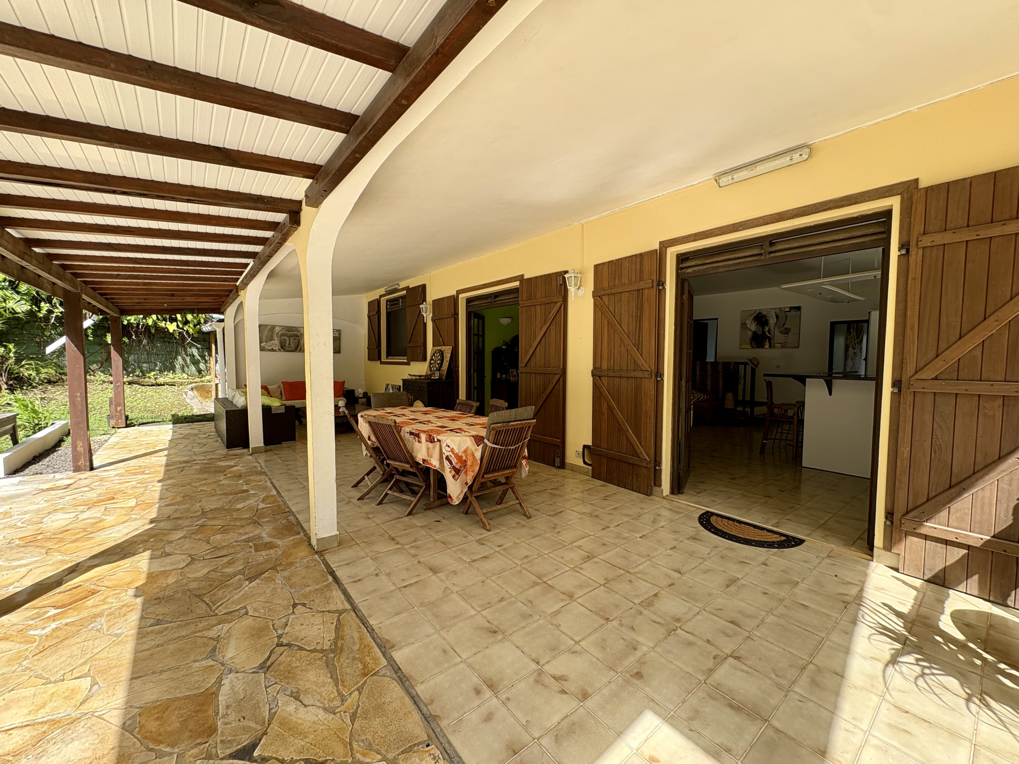 Située dans une propriété sécurisée avec portail automatique, venez découvrir cette villa T5 meublée de 241m2 de surface totale sur le secteur de Vernou à Petit-Bourg, à quelque minutes des rivières, de la zone industrielle de Jarry et Colin.