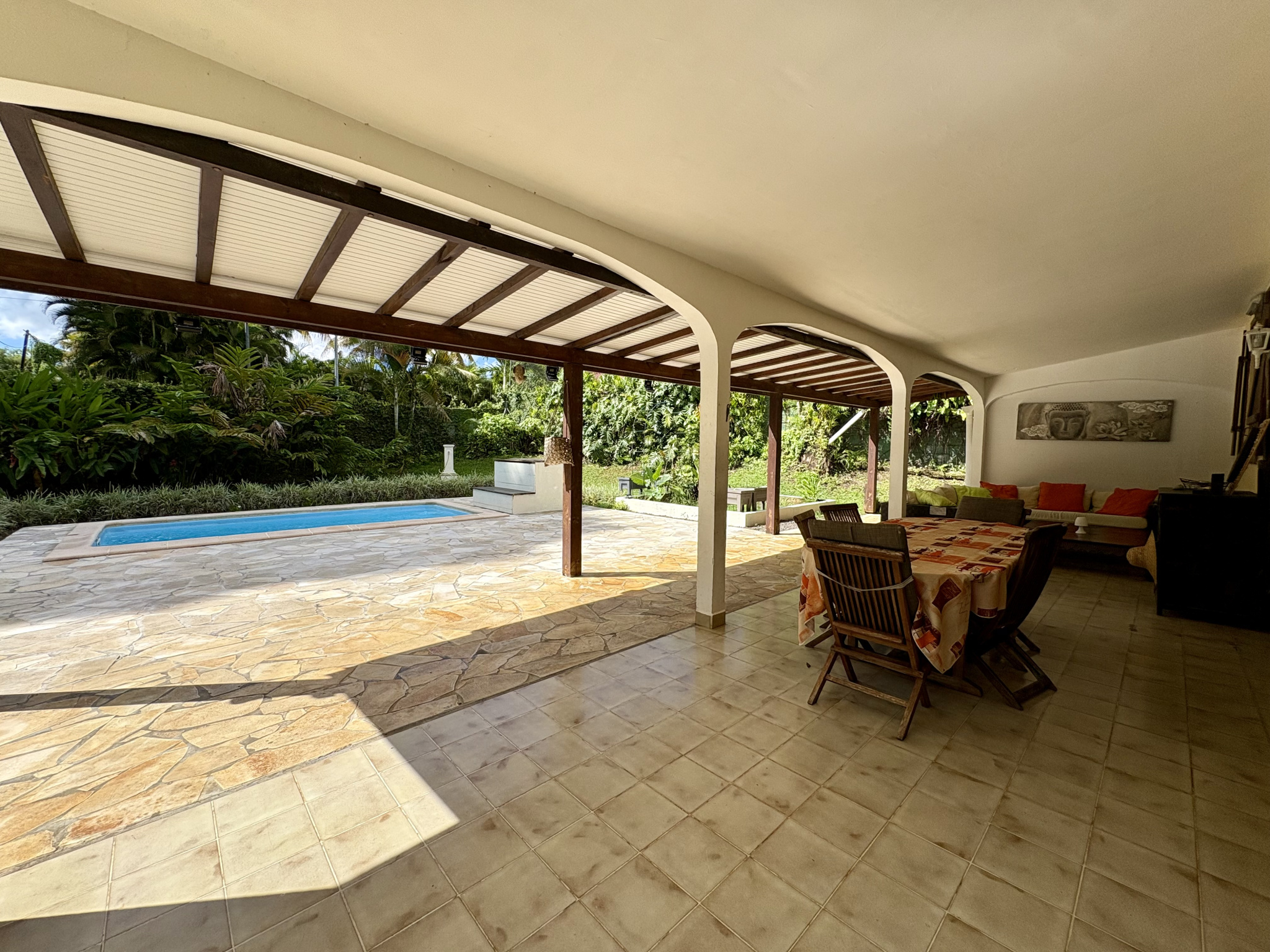 La terrasse de 55m2 avec vue sur la piscine et le jardin vous permettra d'apprécier le calme du quartier.