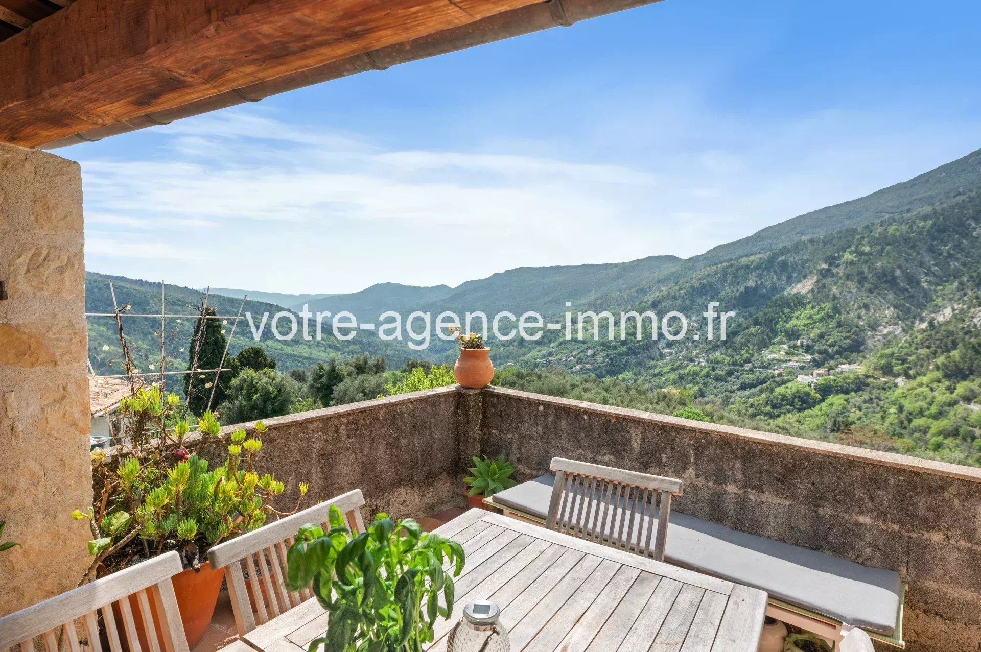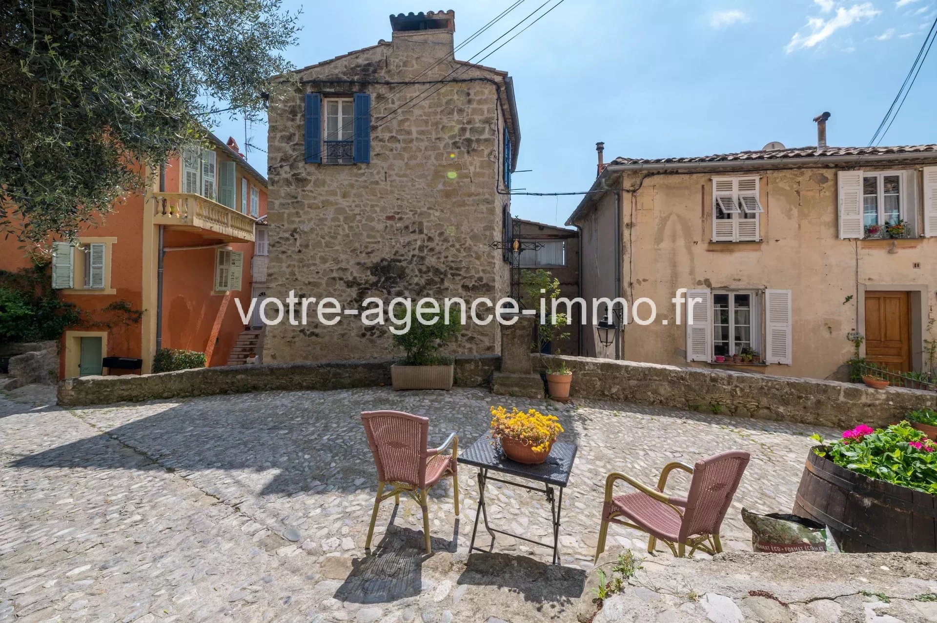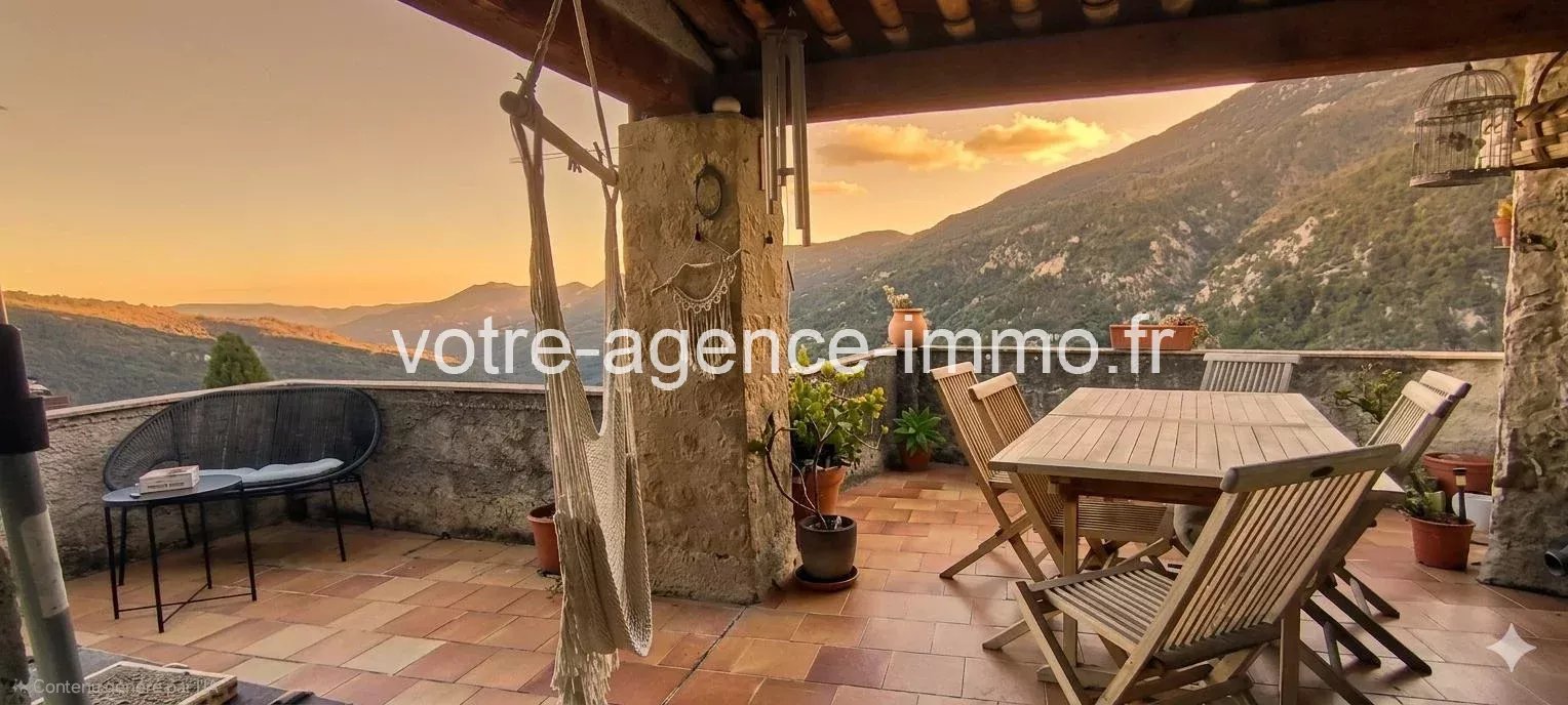Maison de village + Terrain et caves - COARAZE Construction au charme authentique de 1860 en pierres de taille, située au cœur d'un village classé des 100 plus beaux de France, dénommé le village du soleil à seulement 35 minutes de Nice ! Maison individuelle de 5/6 pièces composée par deux entrées distinctes sur une placette de pavés, au calme : - Un 2 pièces de plain pied entièrement rénové de façon moderne avec des matériaux de qualité, donnant accès à un balcon privatif. - Un somptueux 3 pièces et un espace bureau sur 3 niveaux au caractère de l'ancien avec tomettes au sol, pierres et poutres apparentes ; bénéficiant par la cuisine d'une terrasse dominante avec vue exceptionnelle sur les montagnes de la vallée. Vous disposerez d'un terrain plat attenant à la maison sur lequel cultiver, se relaxer ou prendre bon soin de votre poulailler sera presque un privilège unique (si rare) !! Le bien compte une triple exposition et peu de vis à vis pour le secteur. Facilement accessible pour décharger ses courses en voiture. 4 caves et un placard clos complètent les prestations de cet ensemble. La configuration actuelle peut servir à un besoin d'hébergement saisonnier (forte sollicitation et bonne rentabilité), ou un besoin d'indépendance tout en restant proche (ascendants/descendants) ou encore simplement réintégrée dans sa totalité. Toiture en bon état, seule une salle de bain + douche de 11m2 reste à être rénovée (photos sur demande). Sont assurés les services de crèche et d'enseignement de la maternelle jusqu'à la primaire ; bureau de poste, centre du patrimoine, maison médicale et navette pour le collège de contes répondent aux besoins quotidiens ; sans oublier les activités conviviales (nombreux évènements, associations, bar, restaurants, épicerie, future boulangerie…) Idéal inconditionnels de la nature et d'authenticité ! Les informations sur les risques auxquels ce bien est exposé sont disponibles sur le site Géorisques : georisques.gouv.fr