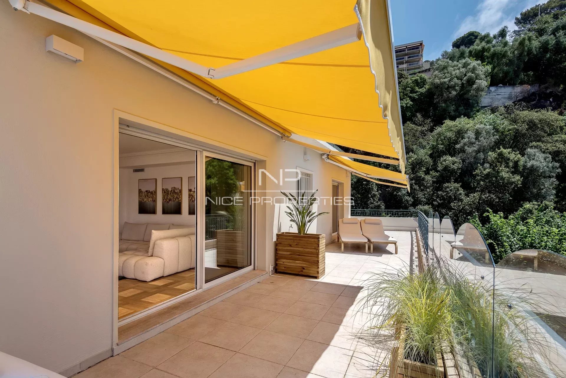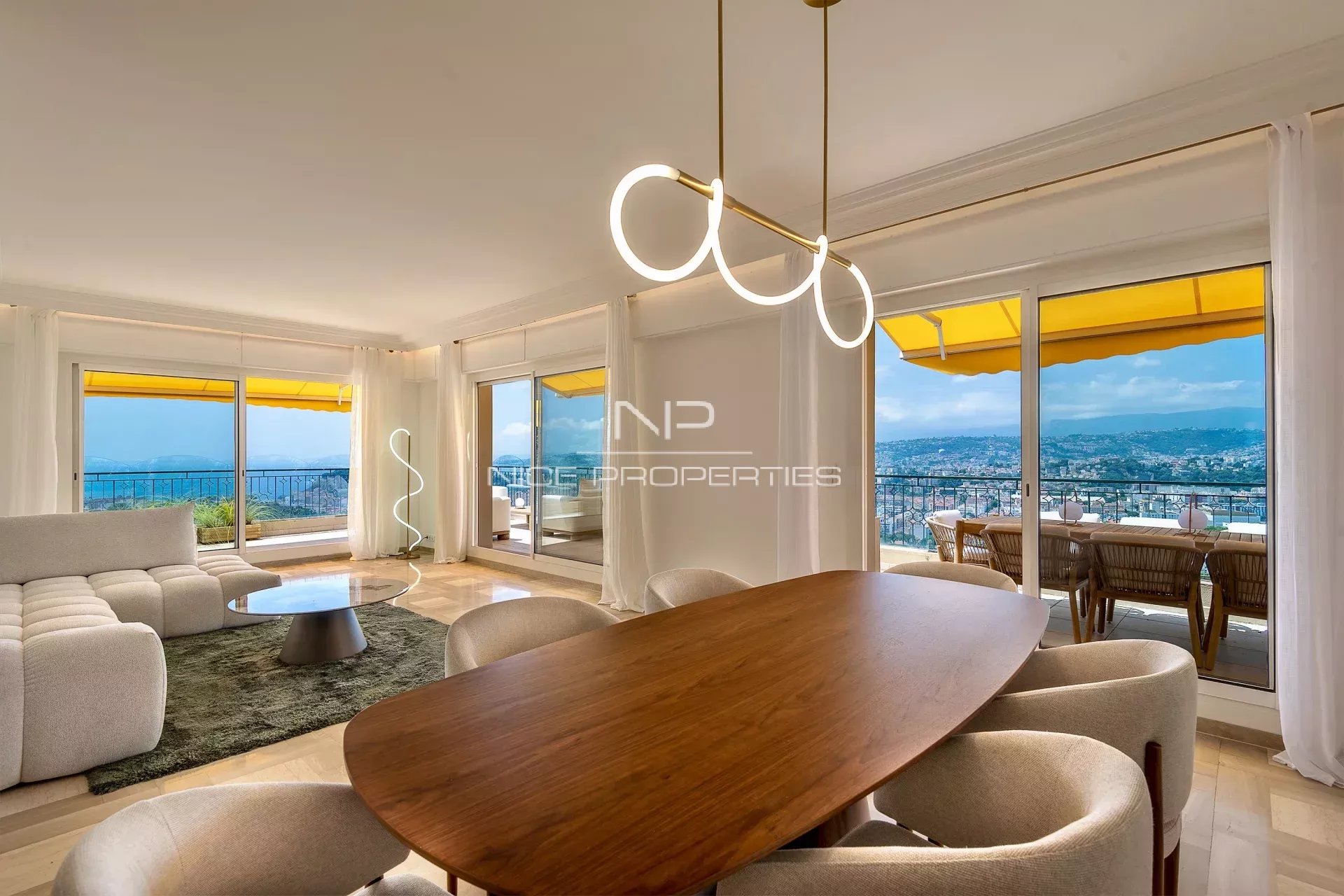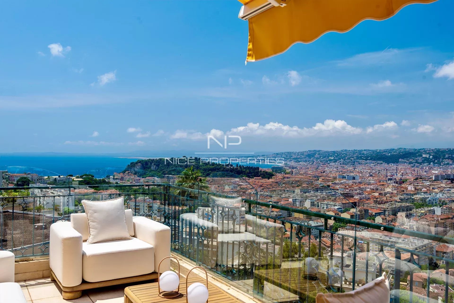 NIZZA MONT BORON: Scoprite questo superbo appartamento di 167 m² all'ultimo piano, che offre un ambiente di vita unico grazie alla sua terrazza sul tetto di 126 m² esposta a sud-ovest da cui si gode di una vista ininterrotta sul mare, sulla città e sulle colline circostanti. L'ingresso conduce a un soggiorno angolare di 49 m² inondato di luce, una cucina separata completamente attrezzata che si apre su una veranda, quattro camere da letto di cui due suite, un bagno raffinato e una toilette per gli ospiti. L'accesso diretto con l'ascensore garantisce la privacy. Godetevi l'esperienza di un appartamento in cui modernità ed eleganza si fondono grazie a una ristrutturazione con caratteristiche di alta gamma. Un garage e un posto auto nell'edificio completano questa oasi di pace a due passi dal Col de Villefranche e dai suoi negozi locali. Spese di agenzia incluse e a carico del venditore. I rischi a cui è esposta questa proprietà sono disponibili sul sito web di Géorisques: georisques.gouv.fr