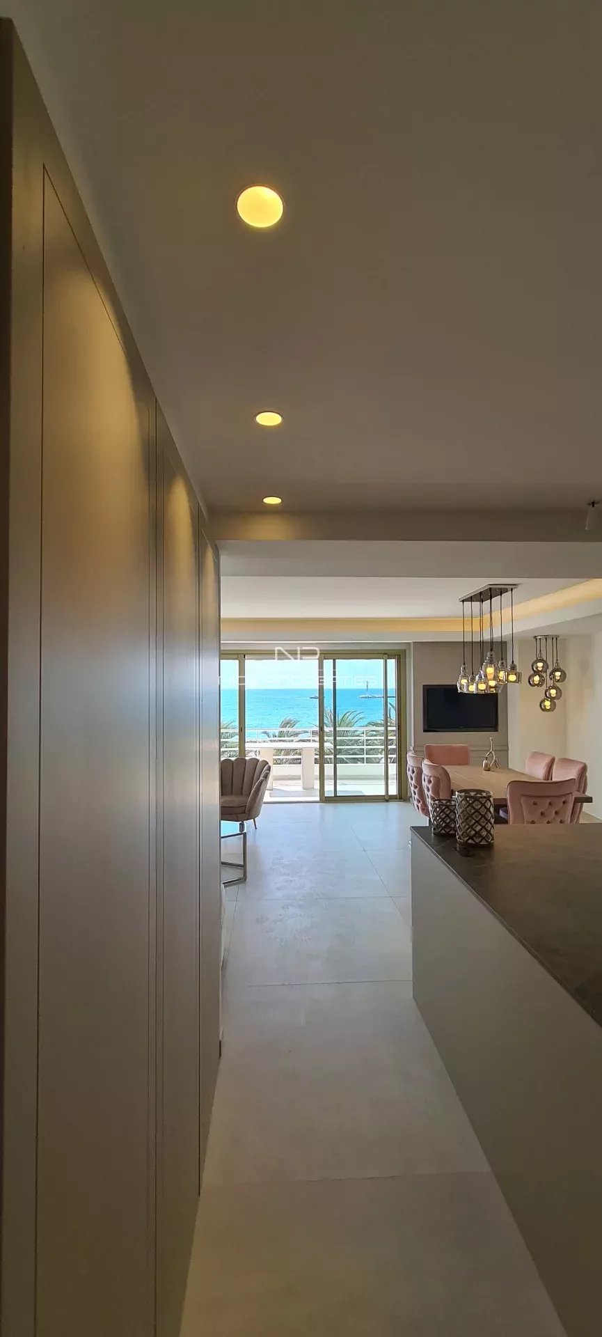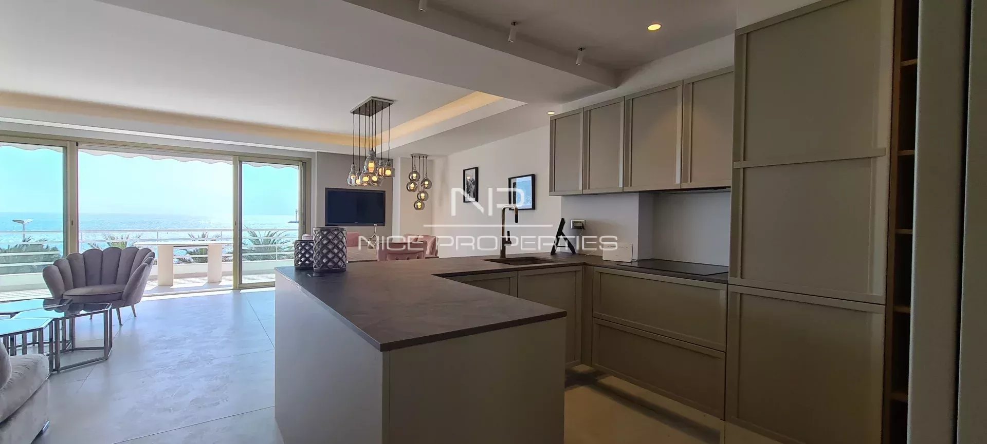 CANNES CROISETTE: vicino al Palais des Festival, splendido trilocale di 75 m² con terrazza e vista panoramica sul mare. Interamente ristrutturato ad alto livello, è composto da un ingresso, un soggiorno con cucina a vista arredata che si apre su una bella terrazza esposta a sud, 2 camere da letto, 2 bagni con doccia e toilette per gli ospiti. Spese di agenzia 6% incluse, a carico del venditore.