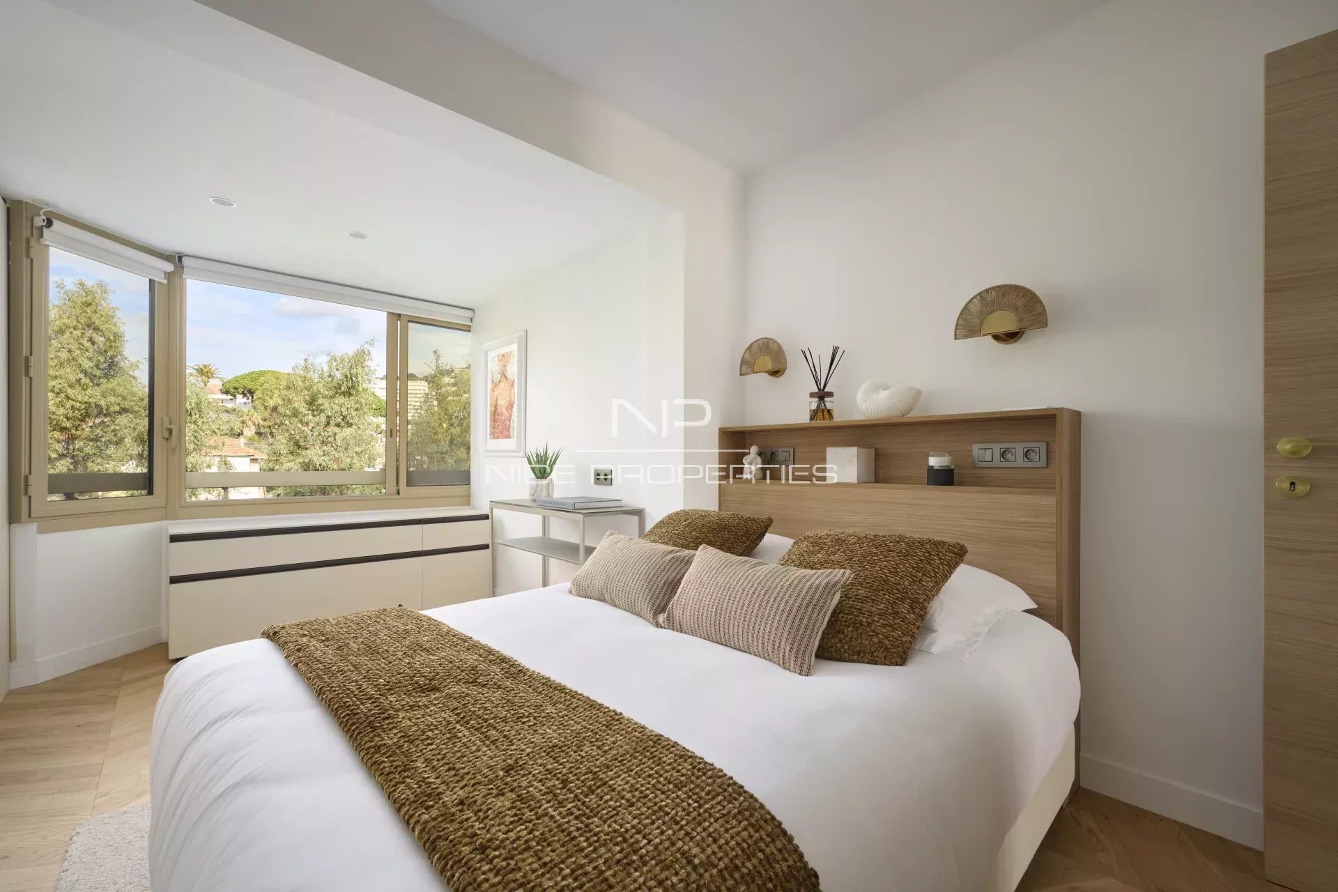 CANNES / PALM BEACH: Moderno e spazioso appartamento di 4 locali con 100 m2 di superficie abitabile, situato in un residence con piscina nel cuore del ricercato quartiere di Palm Beach. L'appartamento è composto da un ampio soggiorno, una cucina completamente attrezzata e tre camere da letto con bagno privato, ognuna con il proprio bagno. Sarete deliziati dalla splendida terrazza di 21 m2, che offre una vista ininterrotta sul mare. L'appartamento è dotato di una cantina e di un posto auto. È disponibile anche un secondo posto auto.