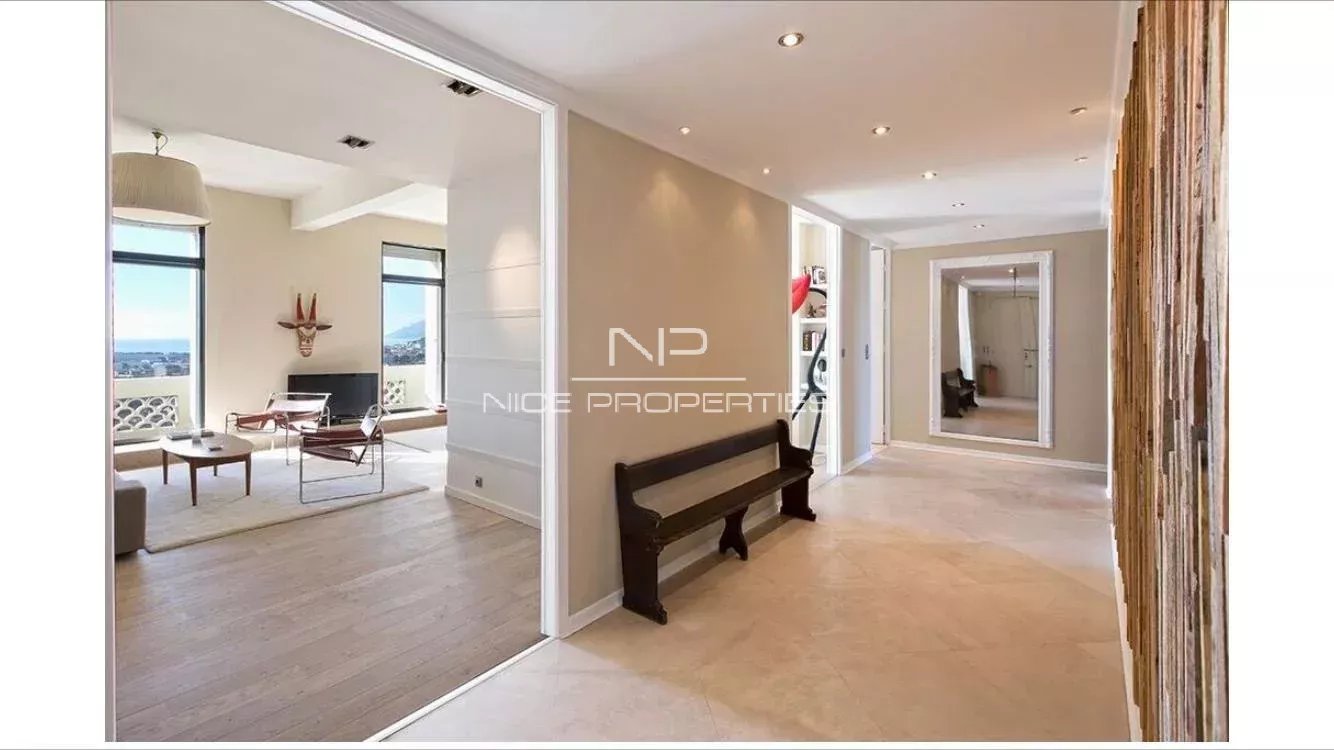 CANNES / MONTROSE: Situato in una residenza prestigiosa, storica e sicura, questo superbo appartamento di 4 stanze vanta una splendida vista sul mare e diversi balconi di quasi 15 m². È composto da un ingresso, una cucina completamente attrezzata, un ampio soggiorno doppio che si apre su un balcone e una suite padronale con bagno, spogliatoio e accesso a un balcone. Altre due camere da letto, ciascuna con bagno privato con doccia, si aprono anch'esse su balconi con vista ininterrotta sulle colline. Una cantina e un garage completano questa eccezionale proprietà.
