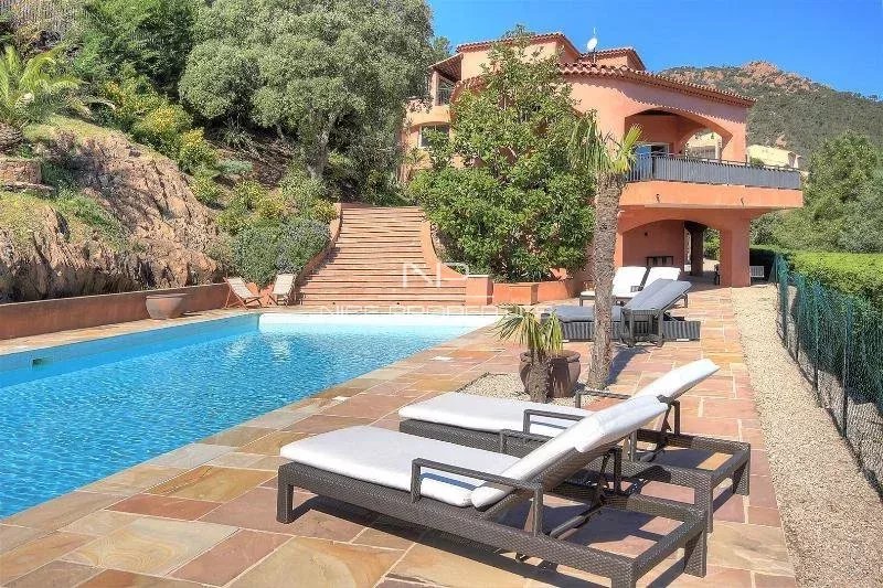 THEOULE-SUR-MER: Situata sulla collina, questa lussuosa proprietà di circa 680 m² con finiture di alta gamma gode di una vista panoramica sul mare, edificata su un giardino paesaggistico di 4500 m2 con piscina riscaldata. Su 3 livelli serviti da un ascensore, si compone di un doppio soggiorno, sala da pranzo, cucina spaziosa e attrezzata, 6 camere da letto, 5 bagni, ufficio, una biblioteca, sala da biliardo, home cinema e una cantina vinicola. Un appartamento per il custode e un doppio garage completano questa splendida proprietà.