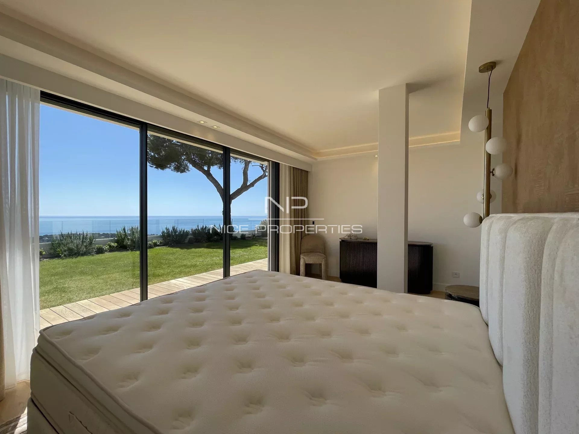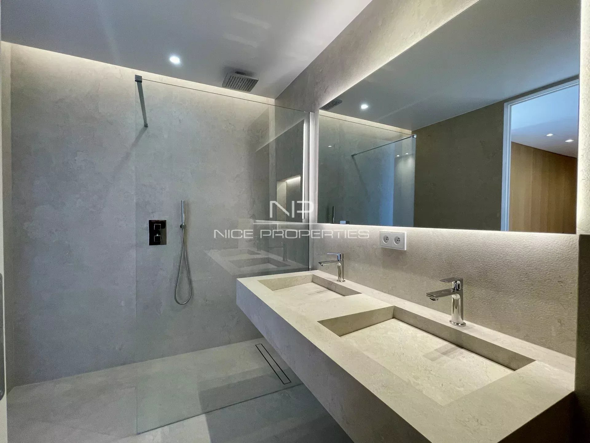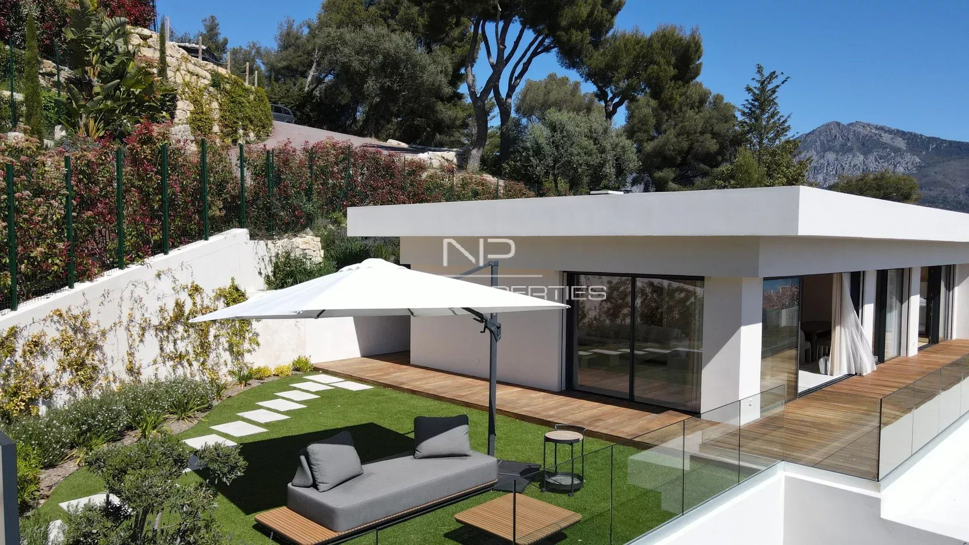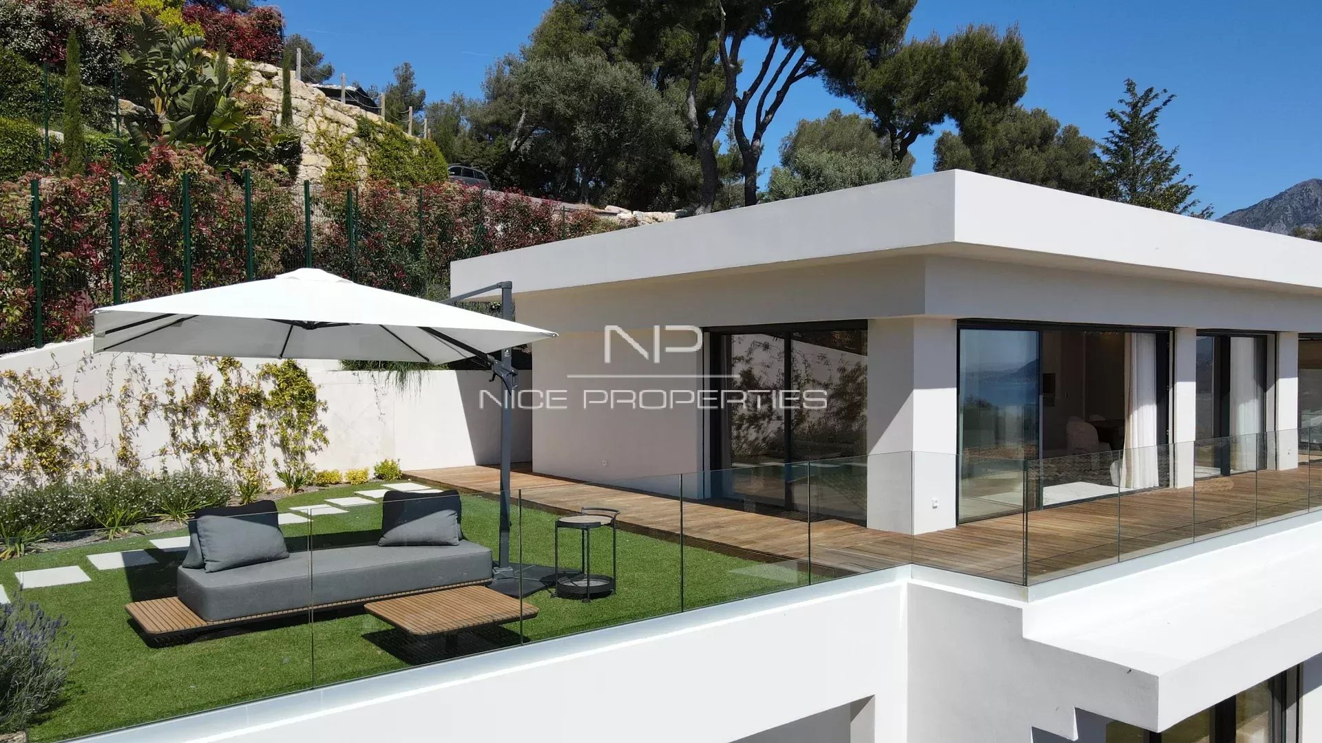 Roquebrune-Cap-Martin, in un piccolo dominio privato, una magnifica villa con vista mare panoramica. Su un terreno di 2.000m2, la villa si compone così: Ingresso, soggiorno di 100m2 con cucina semi-aperta, quattro camere en suite con guardaroba, bagno o doccia e toilettes, lavanderia, ripostiglio, grande garage di 40m2, diversi posti auto e una piccola cucina estiva vicino alla piscina. Diversie terrazze completano questo luogo molto rilassante.