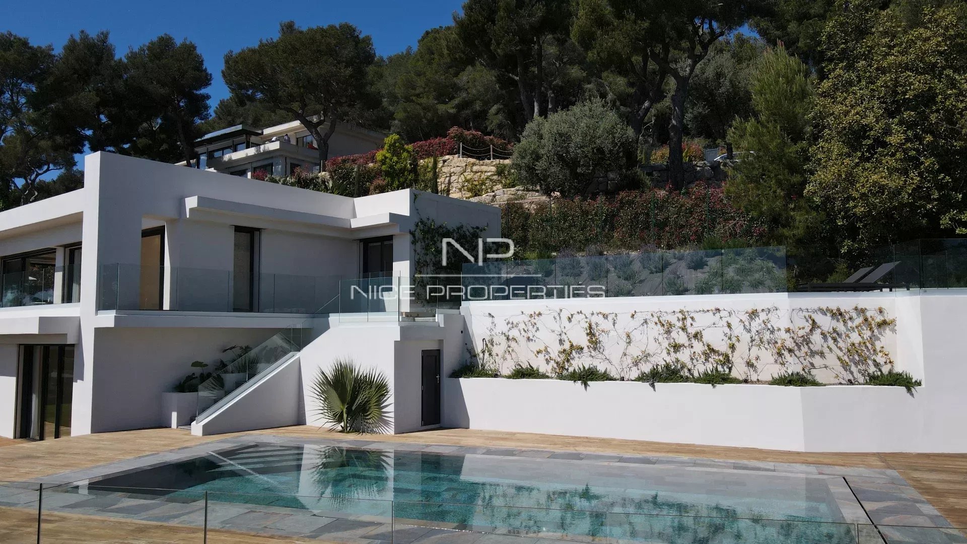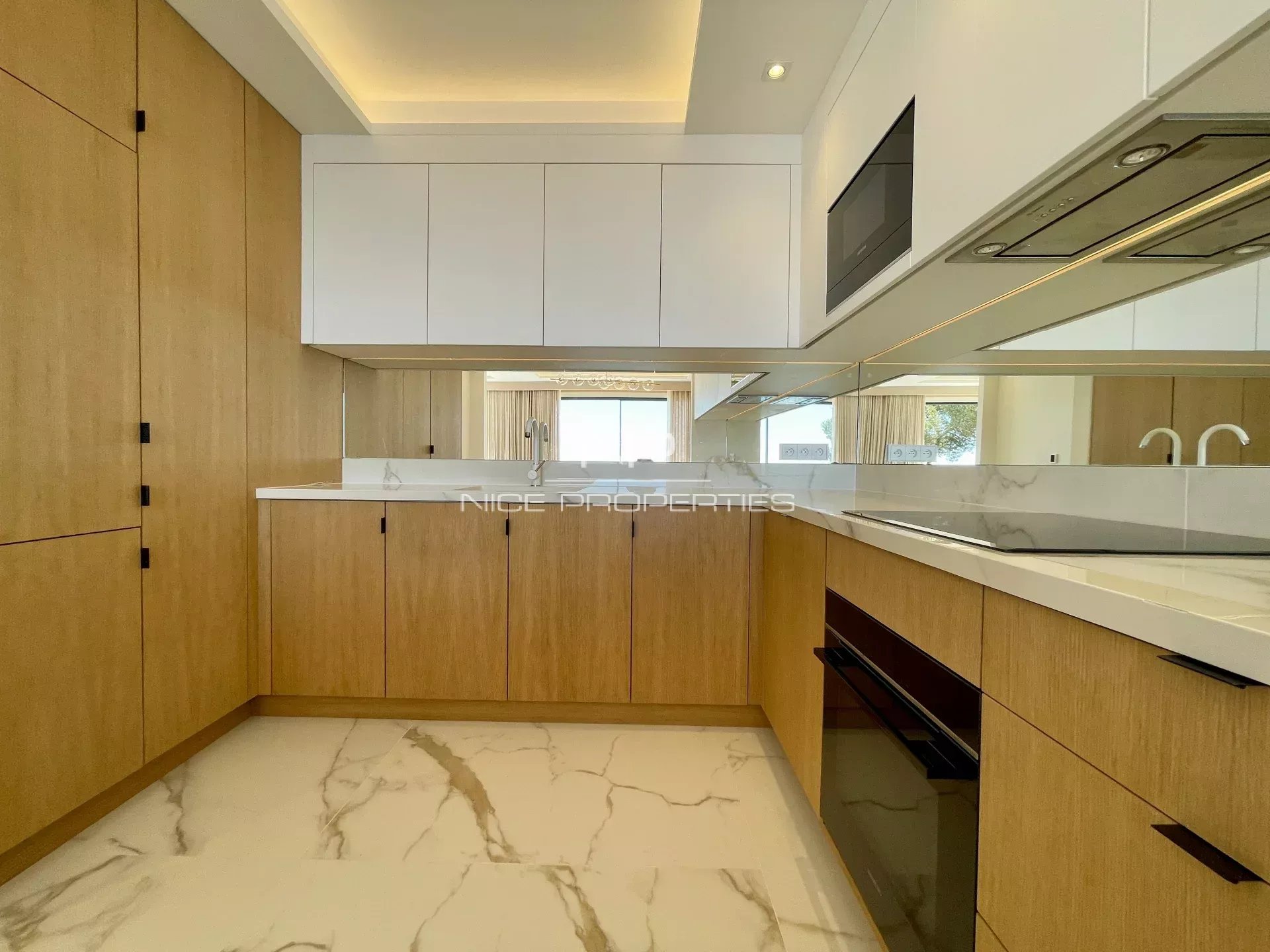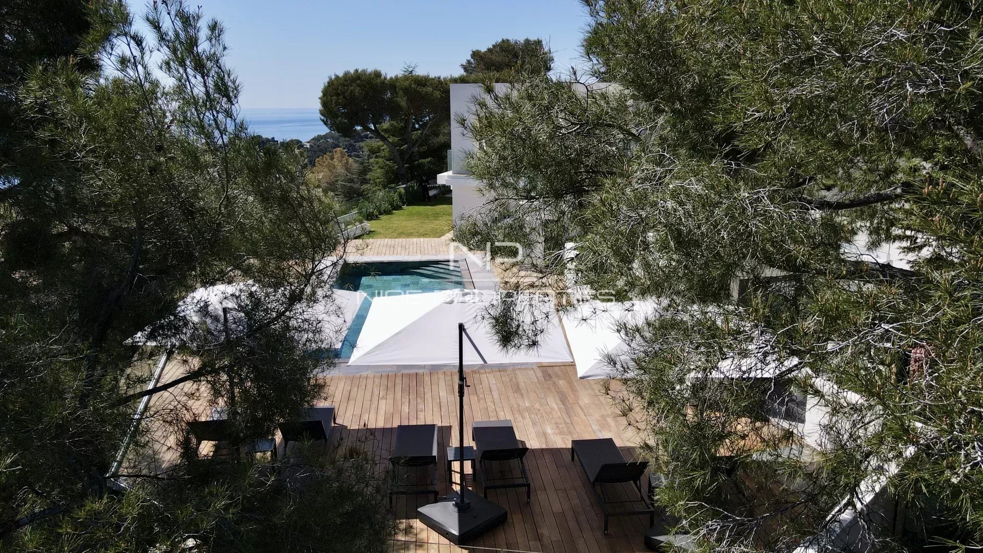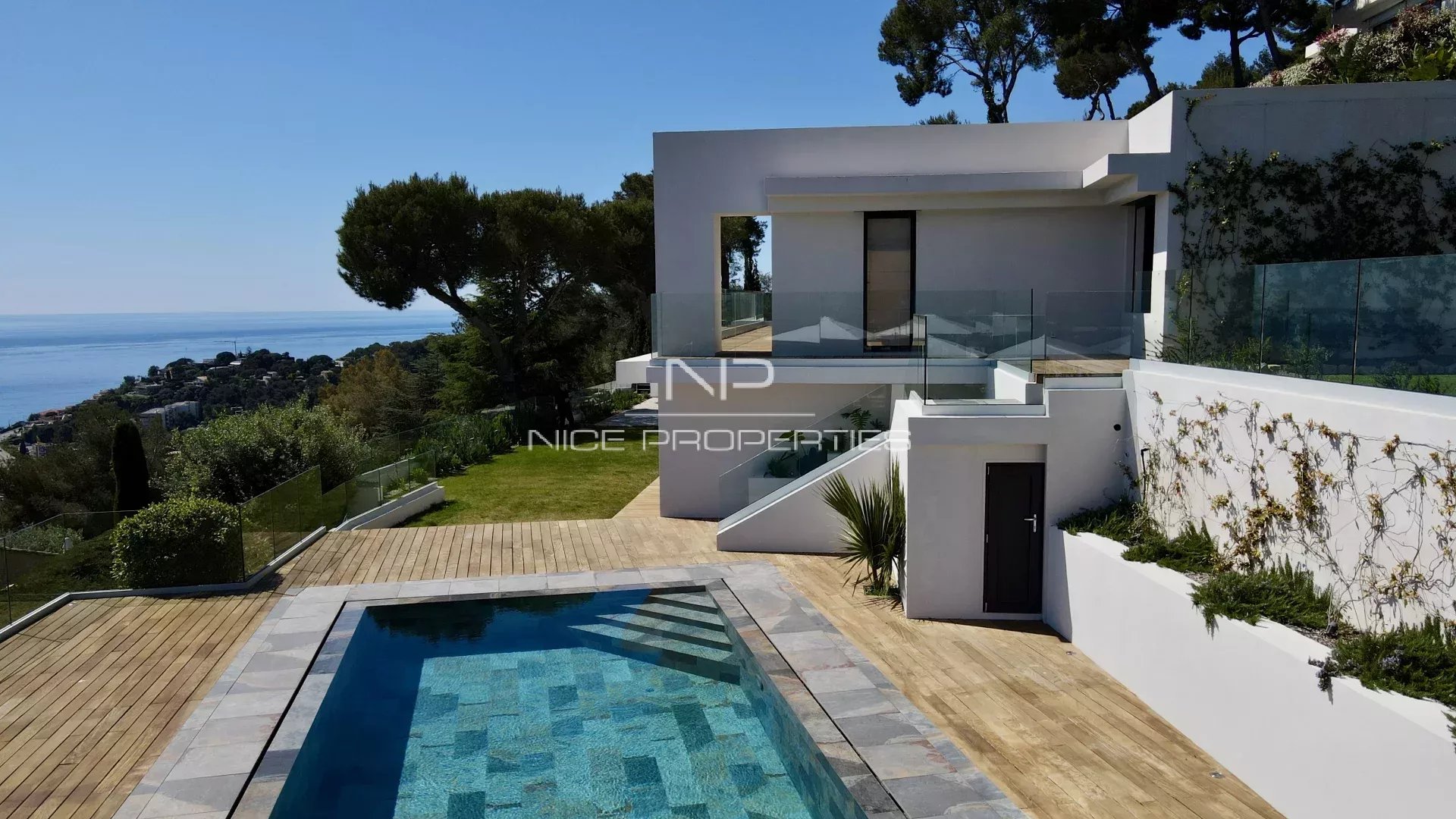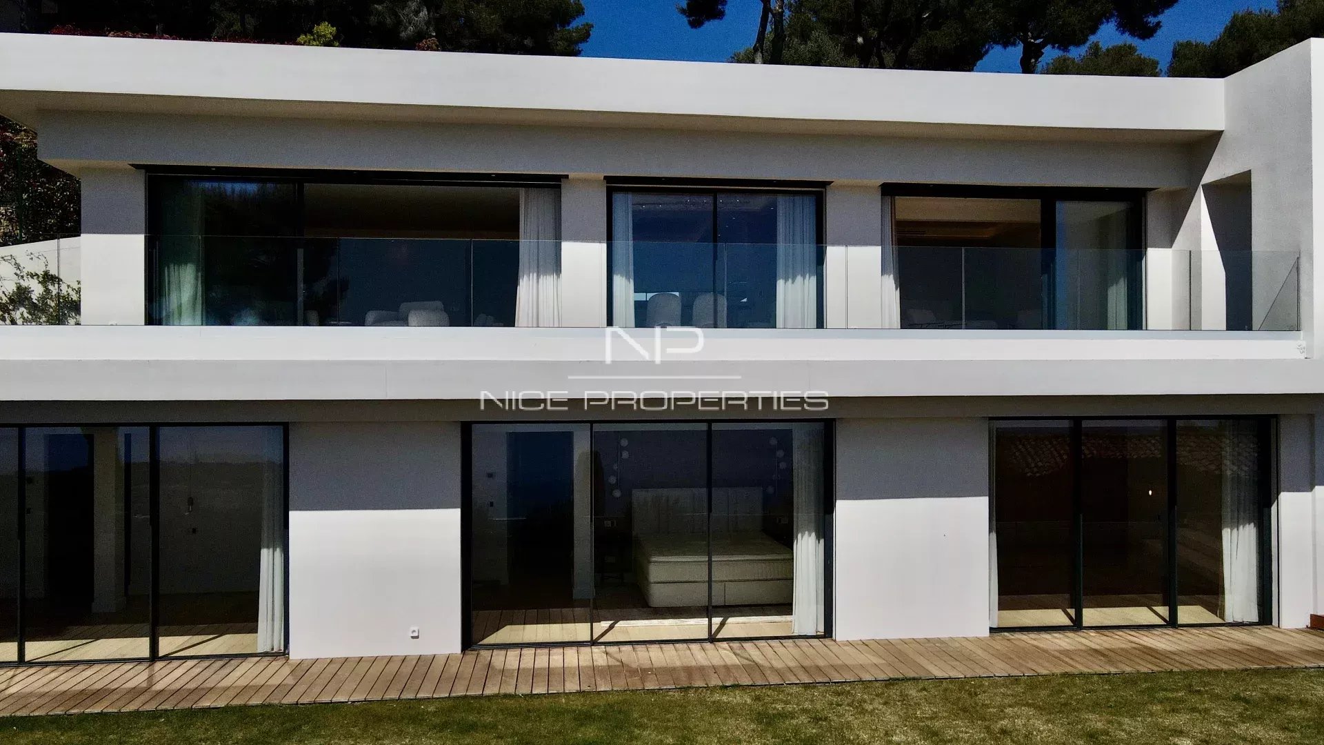 Roquebrune-Cap-Martin, in un piccolo dominio privato, una magnifica villa con vista mare panoramica. Su un terreno di 2.000m2, la villa si compone così: Ingresso, soggiorno di 100m2 con cucina semi-aperta, quattro camere en suite con guardaroba, bagno o doccia e toilettes, lavanderia, ripostiglio, grande garage di 40m2, diversi posti auto e una piccola cucina estiva vicino alla piscina. Diversie terrazze completano questo luogo molto rilassante.