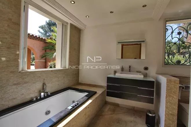 MOUGINS: In una zona tranquilla, questa magnifica proprietà con piscina, di circa 780 m2 su un parco alberato di 6.800 m2, gode di una vista panoramica sul mare e sulle montagne. Si compone di un doppio soggiorno, sala da pranzo, una cucina professionale, servizi igienici per gli ospiti, 6 camere da letto con suite e terrazze, armadi, bagni e servizi igienici privati, hammam, sala massaggi, sala cinema, palestra e discoteca, ascensore interno, adattamenti per persone con mobilità ridotta, una jacuzzi, una piazza giochi per bambini, poolhouse con cucina, salone, sala da pranzo, barbecue, forno per pizza, doccia e servizi igienici. La proprietà comprende una casa per il custode su 2 livelli: 2x 60m². Un doppio garage e parcheggi privati (fino a 12 posti) completano questa proprietà eccezionale.