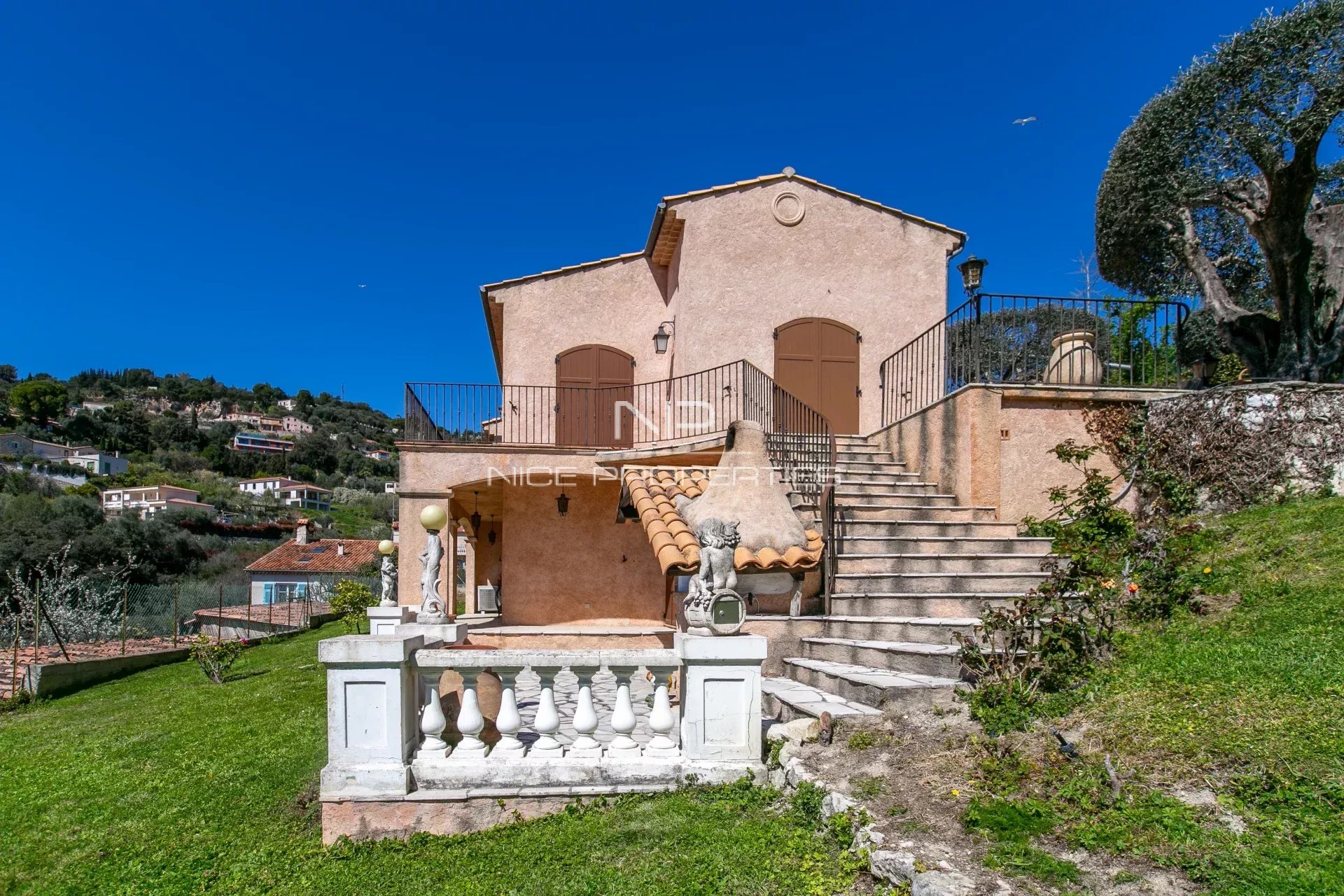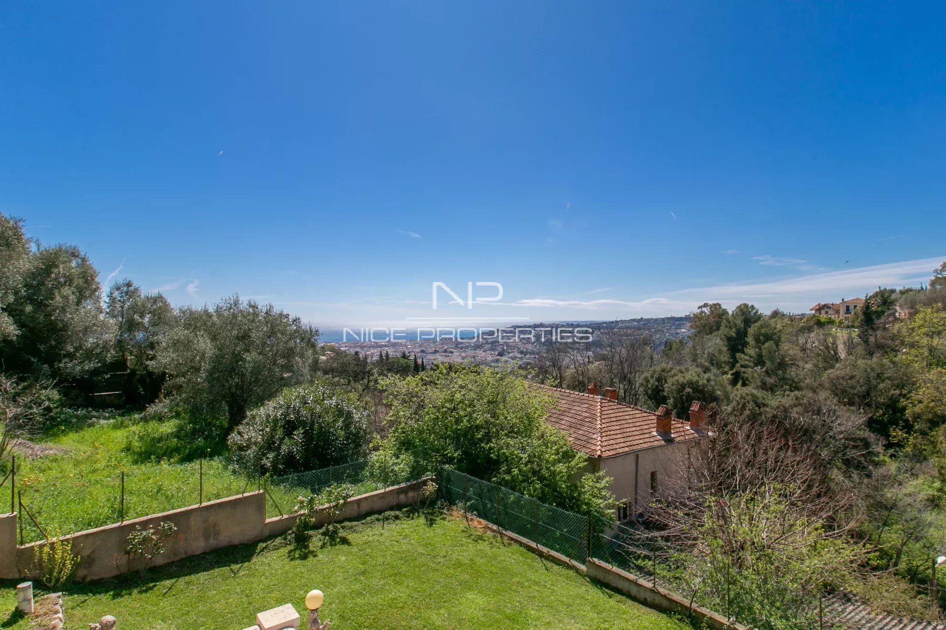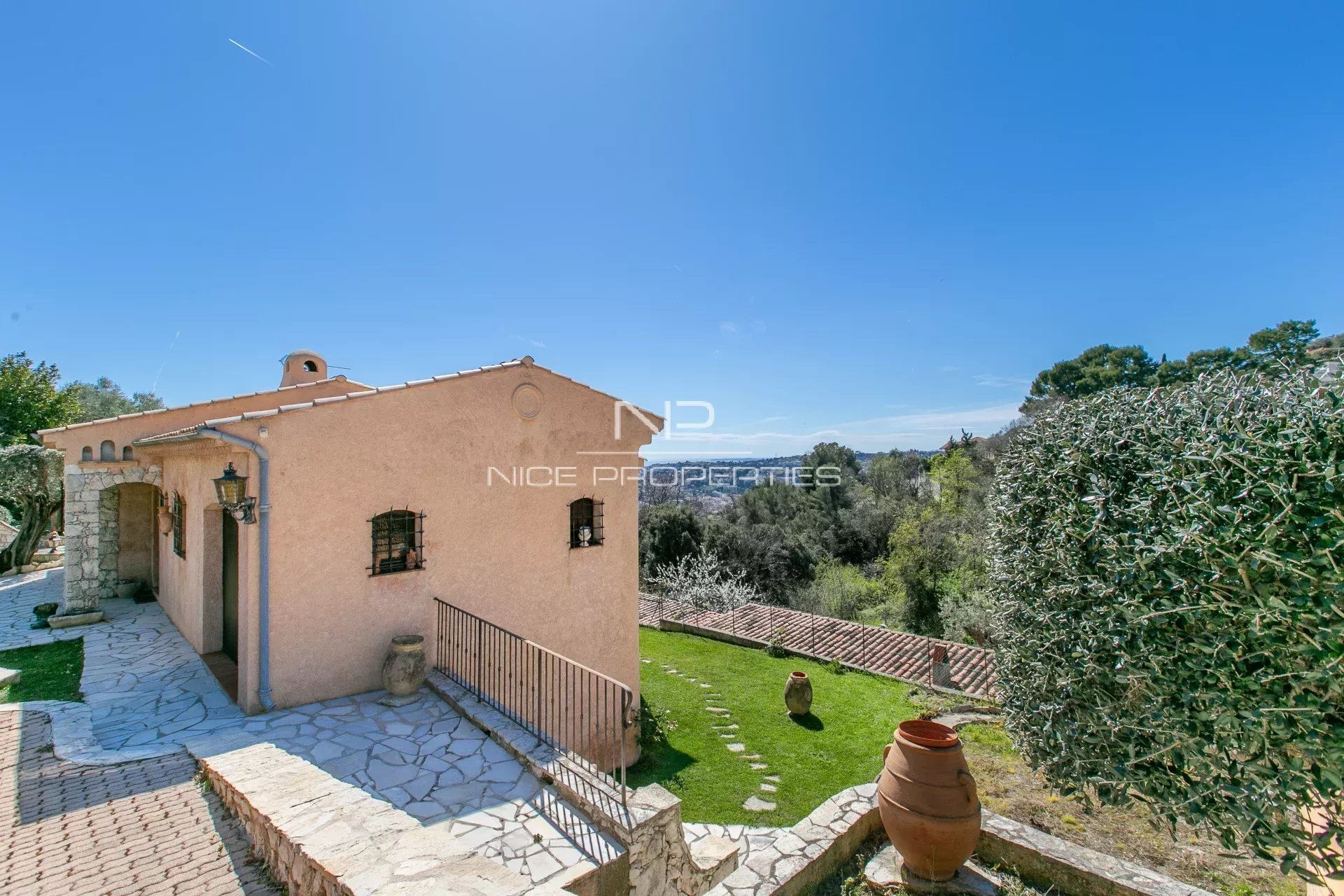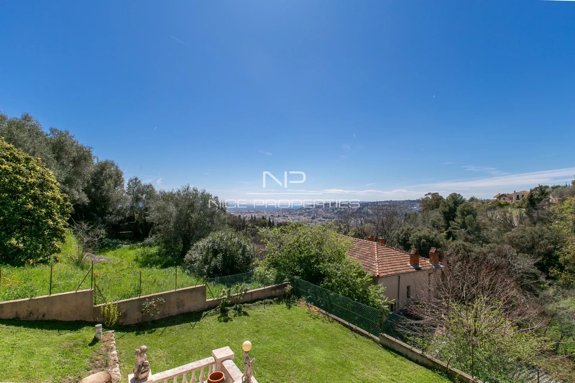 NICE COLLINES / GAIRAUT : A proximité du Vieux Chemin de Gairaut, au calme d'une impasse, beaucoup de charme pour cette villa provençale sur 2 niveaux offrant une très belle vue panoramique sur la ville de Nice, la Baie des Anges et les collines avoisinantes. Environnement résidentiel au milieu des oliviers, de grandes terrasses, séjour avec cheminée et poutres, cuisine indépendante, 3 chambres et un bureau, nombreux rangements, cuisine d'été avec barbecue et four, 2 parkings sous abri. En bon état général et très saine, cette villa orientée Sud-Ouest mérite une modernisation. Honoraires de 6% inclus à la charge du vendeur. Les informations sur les risques auxquels ce bien est exposé sont disponibles sur le site Géorisques : georisques.gouv.fr