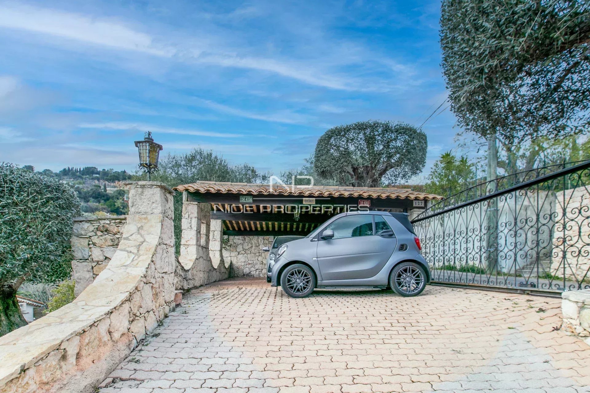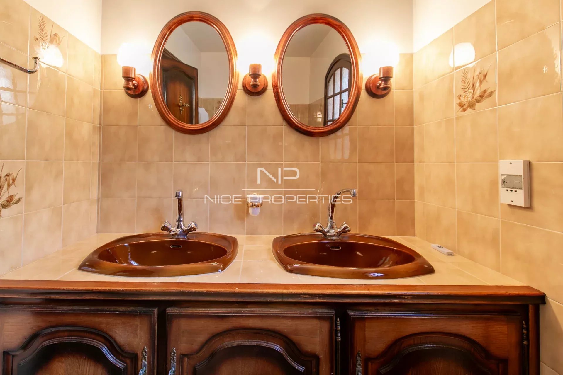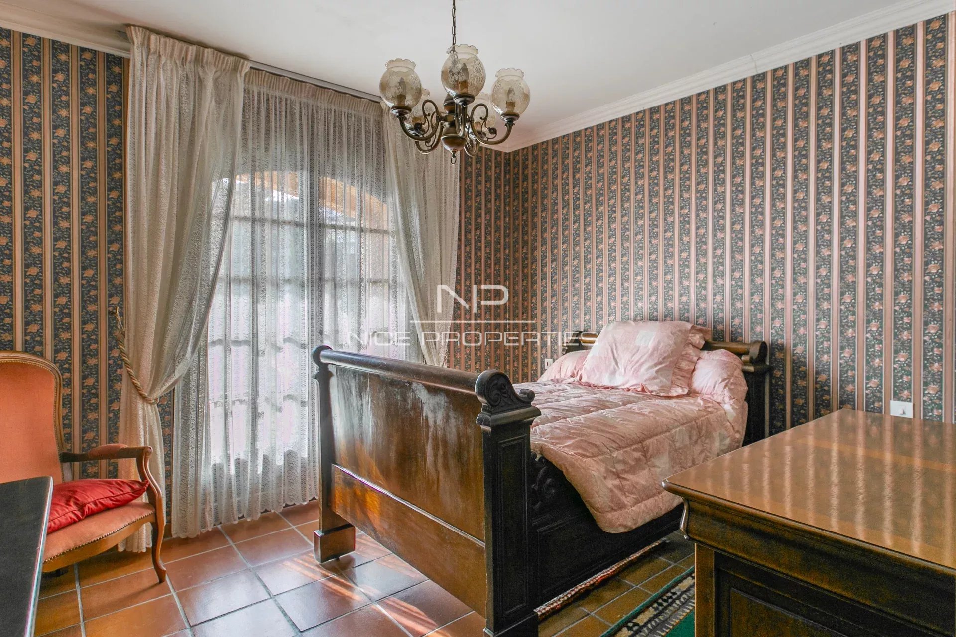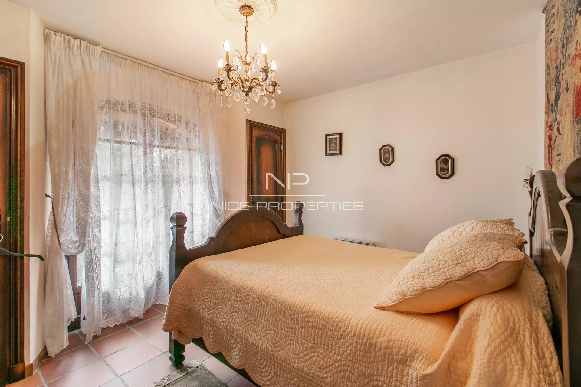 NICE COLLINES / GAIRAUT : A proximité du Vieux Chemin de Gairaut, au calme d'une impasse, beaucoup de charme pour cette villa provençale sur 2 niveaux offrant une très belle vue panoramique sur la ville de Nice, la Baie des Anges et les collines avoisinantes. Environnement résidentiel au milieu des oliviers, de grandes terrasses, séjour avec cheminée et poutres, cuisine indépendante, 3 chambres et un bureau, nombreux rangements, cuisine d'été avec barbecue et four, 2 parkings sous abri. En bon état général et très saine, cette villa orientée Sud-Ouest mérite une modernisation. Honoraires de 6% inclus à la charge du vendeur. Les informations sur les risques auxquels ce bien est exposé sont disponibles sur le site Géorisques : georisques.gouv.fr