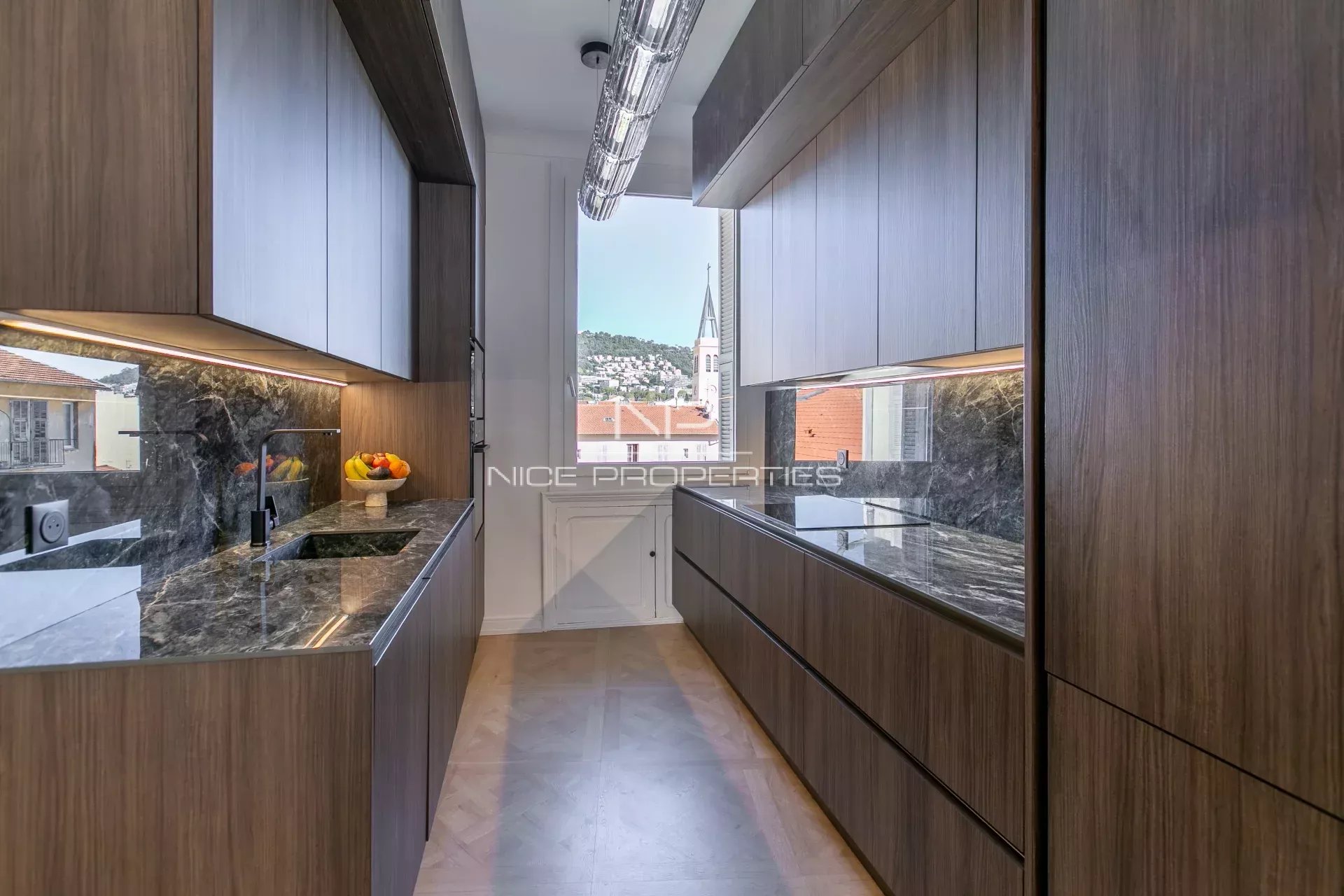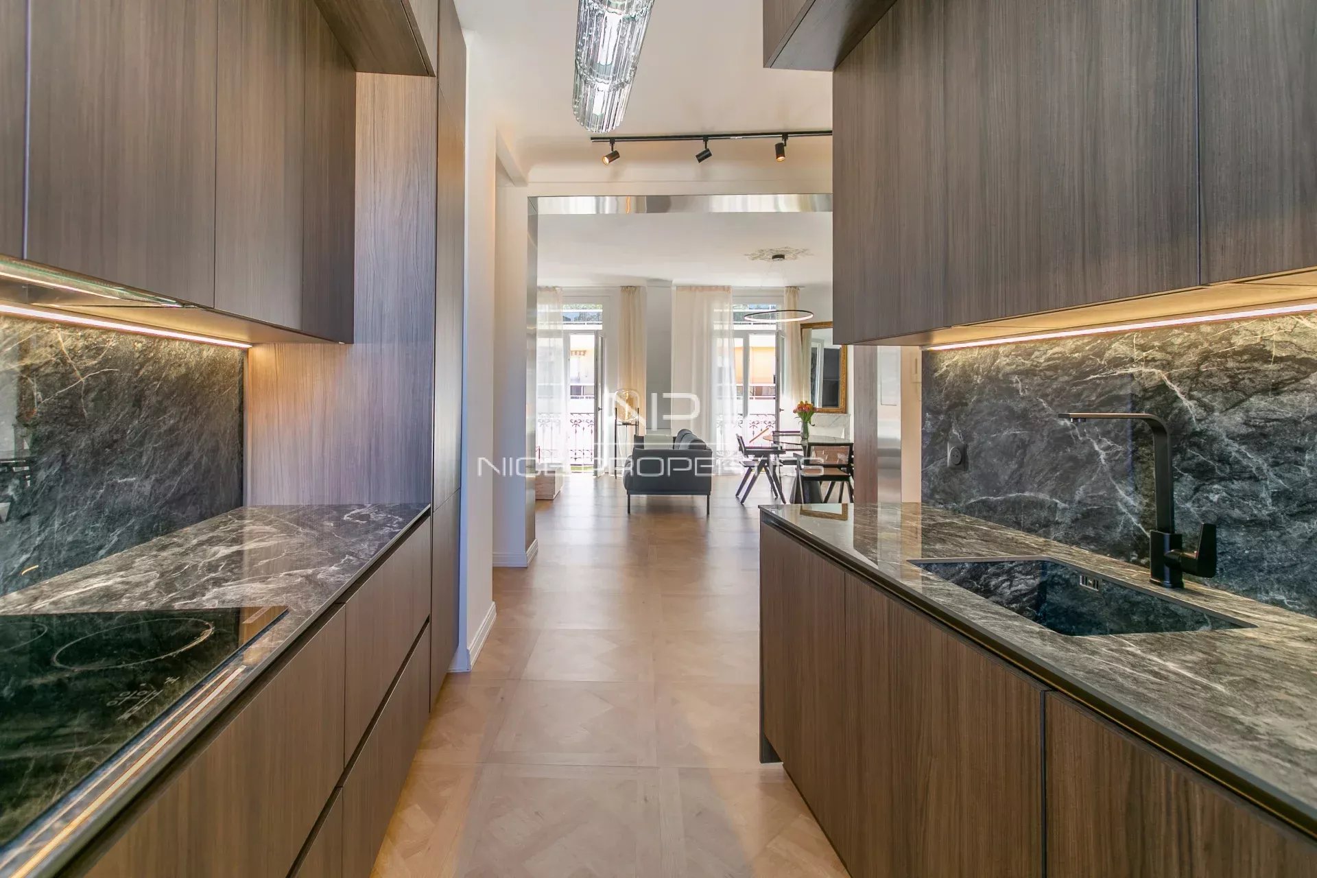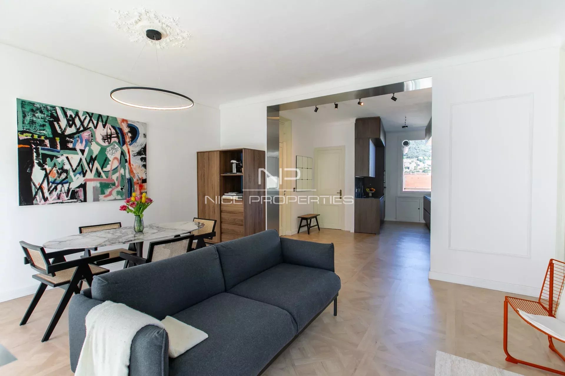 NICE CENTRE / RÉPUBLIQUE : Situé à quelques minutes à pied de la place Garibaldi, du Tramway et des jardins de la nouvelle Coulée Verte, avec toutes les commodités à proximité immédiate (notamment le centre commercial TNL), cet appartement en dernier étage d’un bel immeuble niçois ravalé avec ascenseur, traversant EST-OUEST, a fait l’objet d’une rénovation particulièrement soignée, avec un superbe parquet massif au motif Versailles, de nombreux points lumineux, du double vitrage avec sécurité enfants. La qualité des matériaux utilisés, la décoration stylée, les grandes fenêtres et la hauteur sous plafond de plus de trois mètres sont des atouts indéniables qui rendent cet appartement extrêmement agréable à vivre. La belle entrée dessert l’ensemble des pièces : un grand séjour / salle à manger ouvert sur le balcon exposé Ouest, une cuisine haut de gamme entièrement équipée avec fenêtre, les deux grandes chambres, la splendide salle de douche à l’italienne et le WC indépendant avec lave-mains. Climatisé côté Ouest, très lumineux, il ravira ses futurs propriétaires par sa fonctionnalité et ses nombreux rangements. En outre, l’appartement dispose d’une belle cave de 7 m² avec éclairage et prise de courant. Honoraires de 5% inclus à la charge du vendeur. Les informations sur les risques auxquels ce bien est exposé sont disponibles sur le site Géorisques : georisques.gouv.fr
