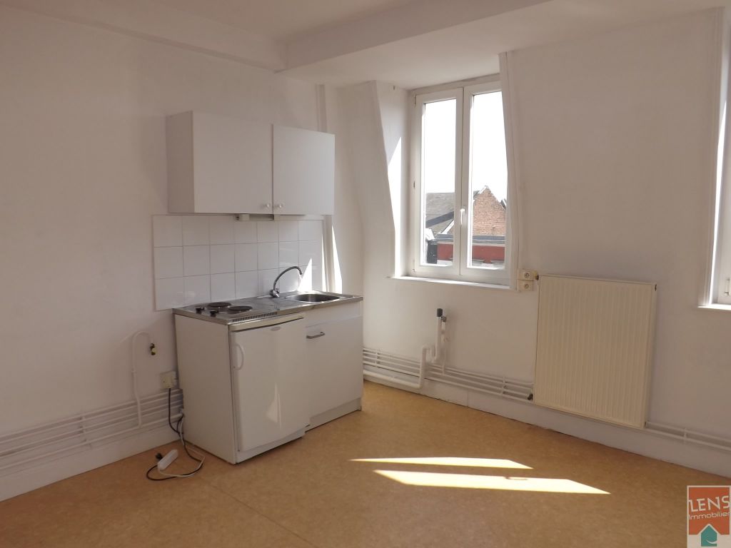 LENS - Hypercentre, appartement de type 2 comprenant entrée, séjour, kitchenette séparée et équipée, chambre, salle d'eau et WC. Au pied des commerces !! A visiter ! Charges: 30 euros /mois avec régularisation annuelle. Dépôt de garantie : 452 euros Honoraires charge locataire: 355.03 euros Etat des lieux locataire: 133.13 euros Réf: 1056