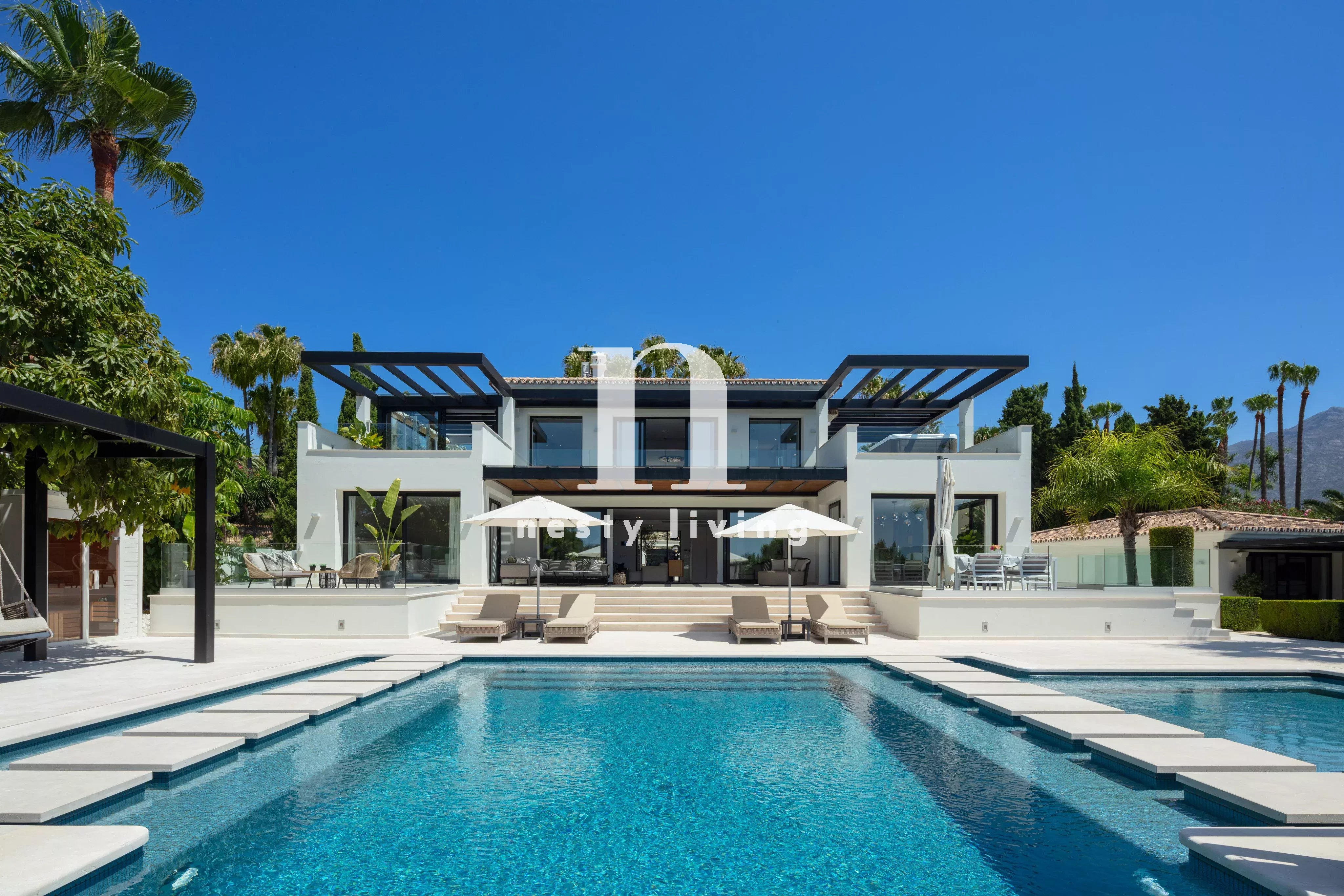 Voici la Villa Sophia, une villa exquise à l'architecture moderne et symétrique, aux intérieurs raffinés et à l'emplacement de choix dans le quartier convoité de La Cerquilla à Nueva Andalucia. Tout en adoptant un design contemporain, cette pr